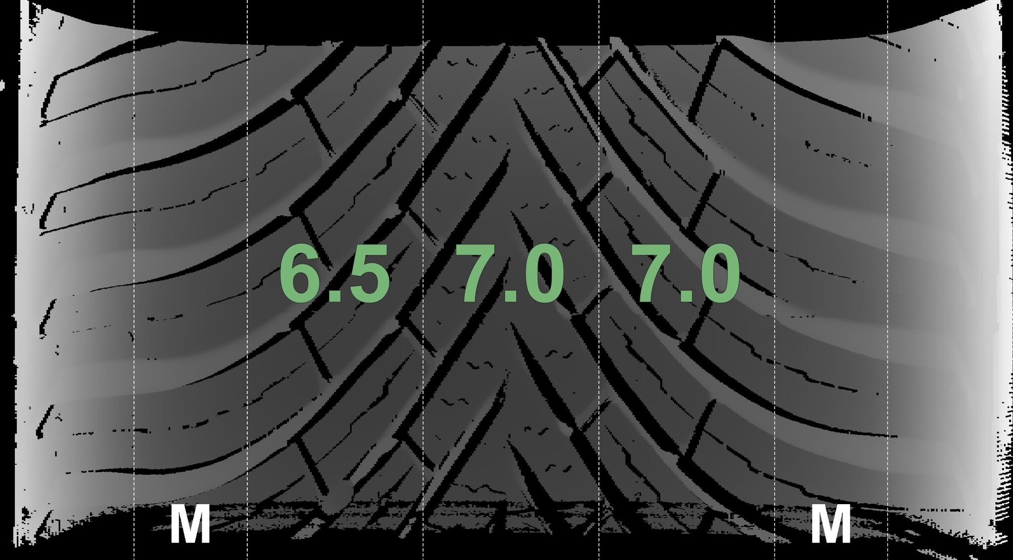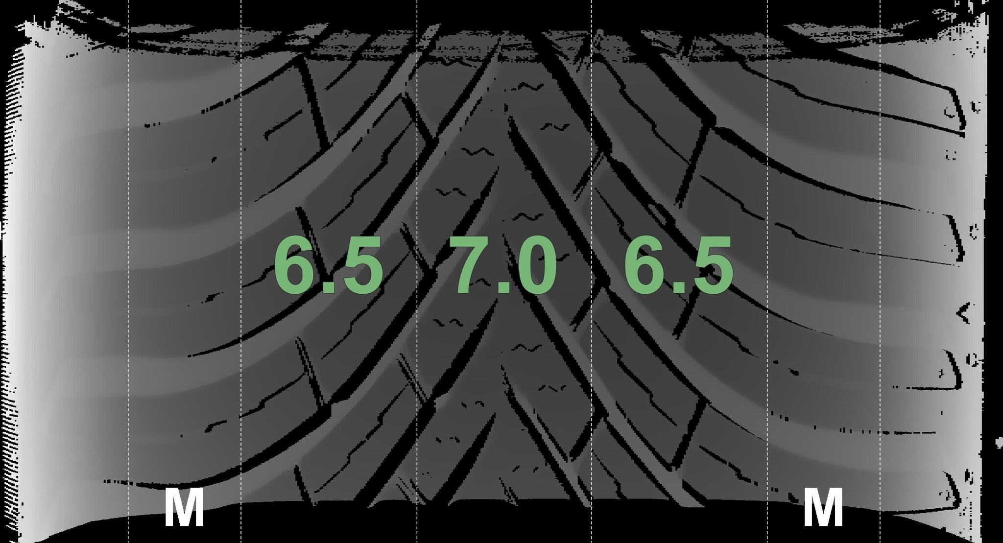 Die gemessenen Profiltiefen und die Details der Felgen sind hierboven weergegeven.