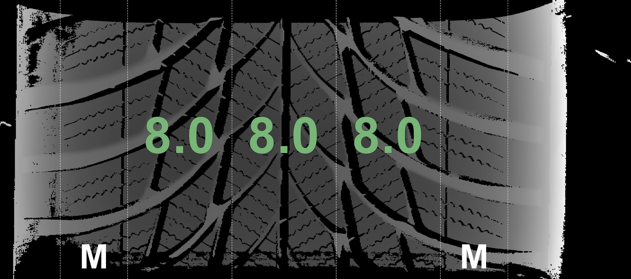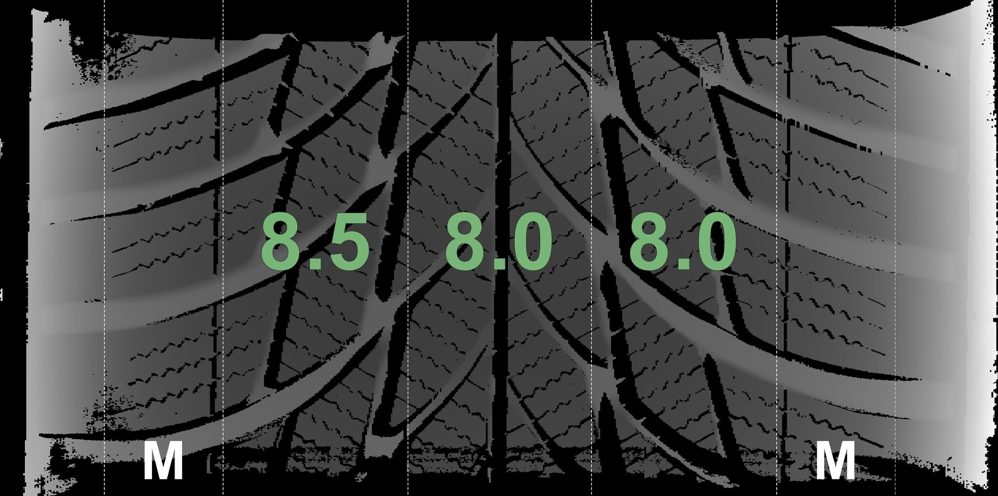 | Zustand | Profiltiefe | DOT | Hinterachse Links | Neu | 8.0 mm | 0325 |