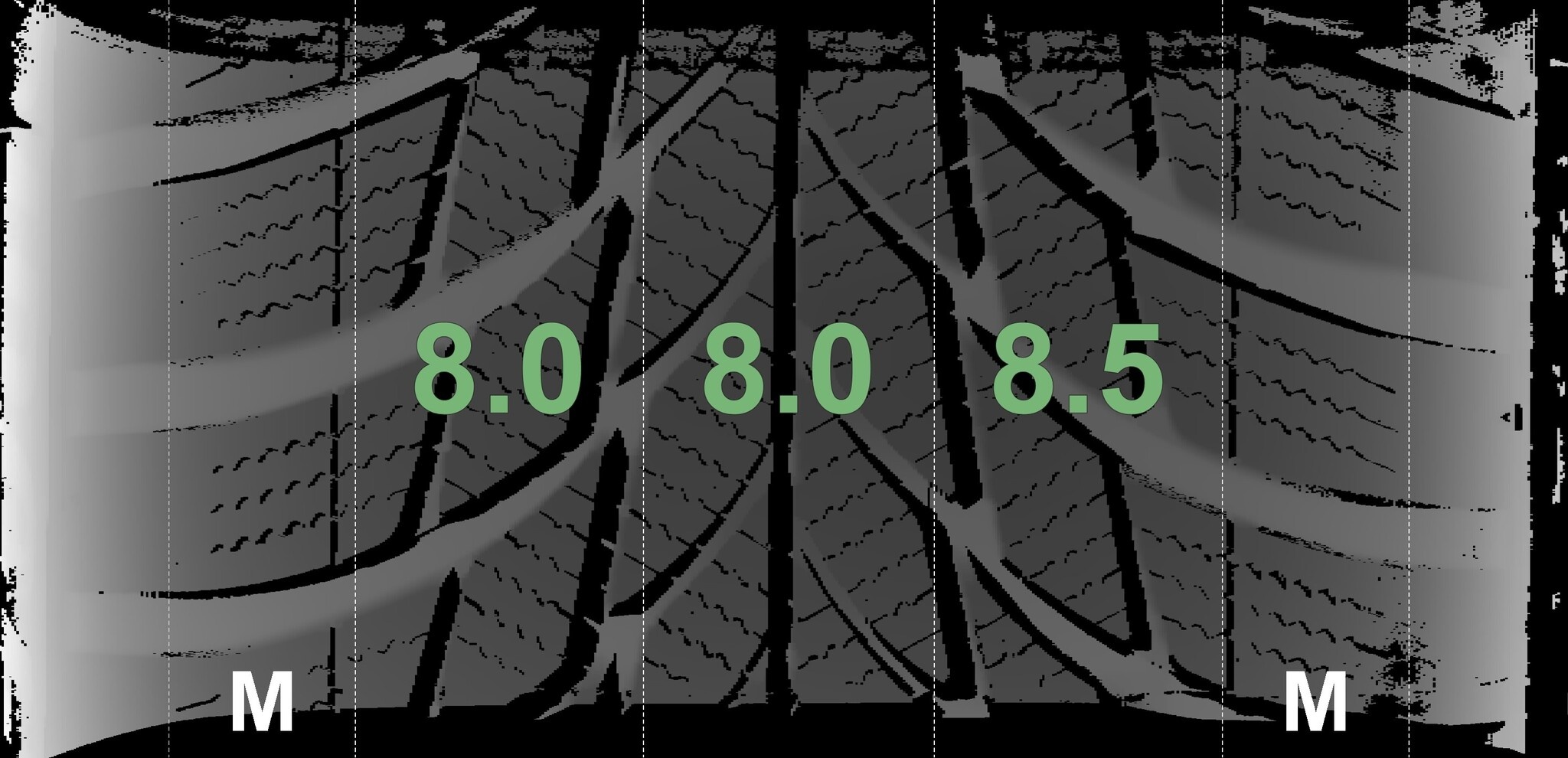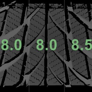 Die gemessenen Profiltiefen und die Details der Felgen sind oben angegeben.
