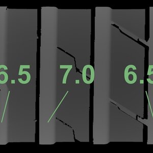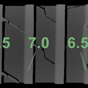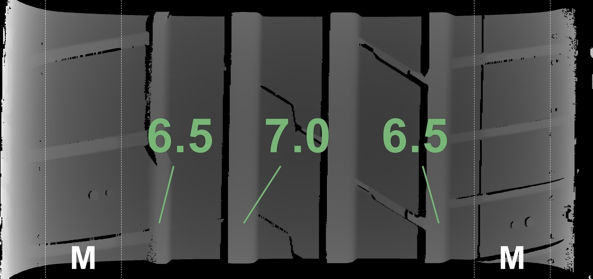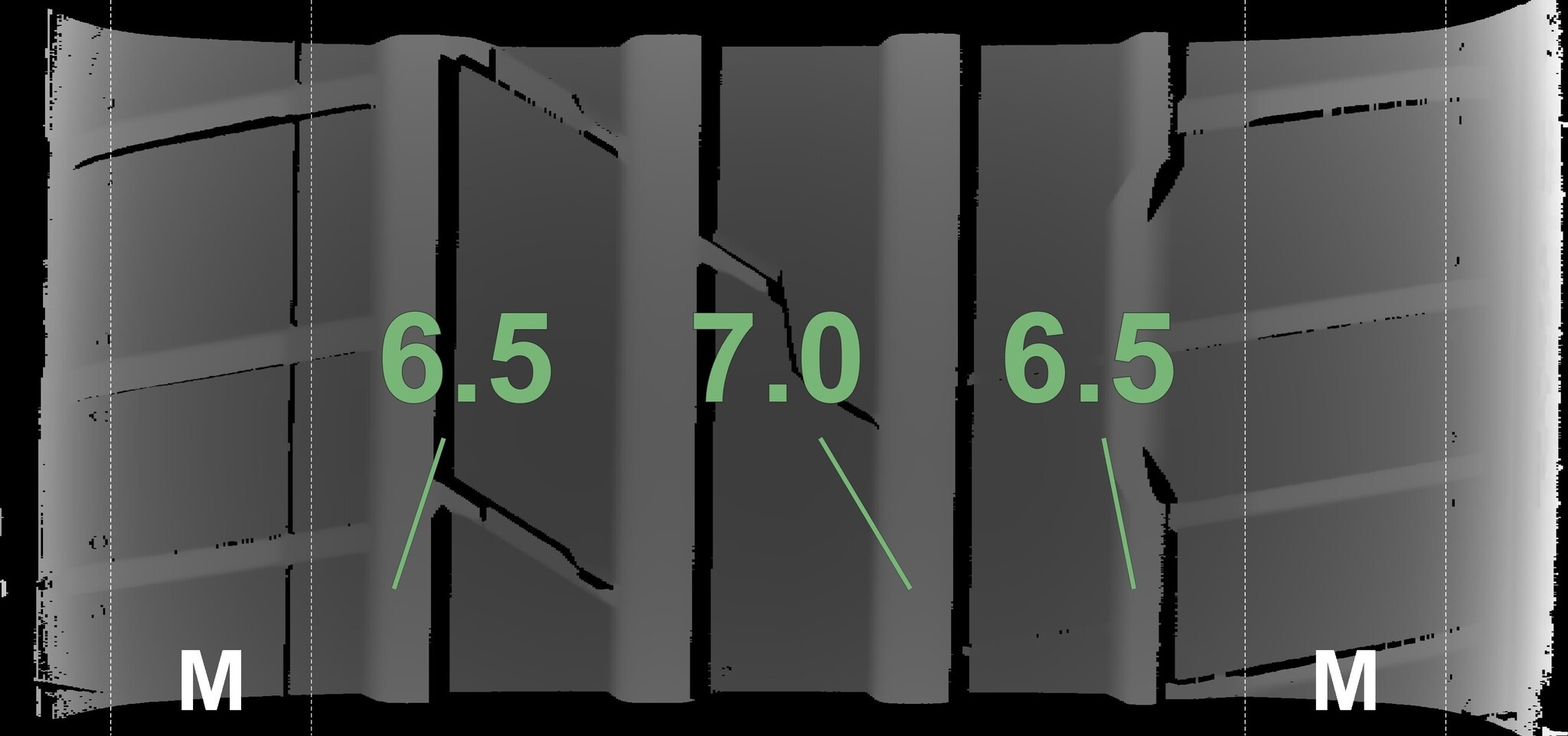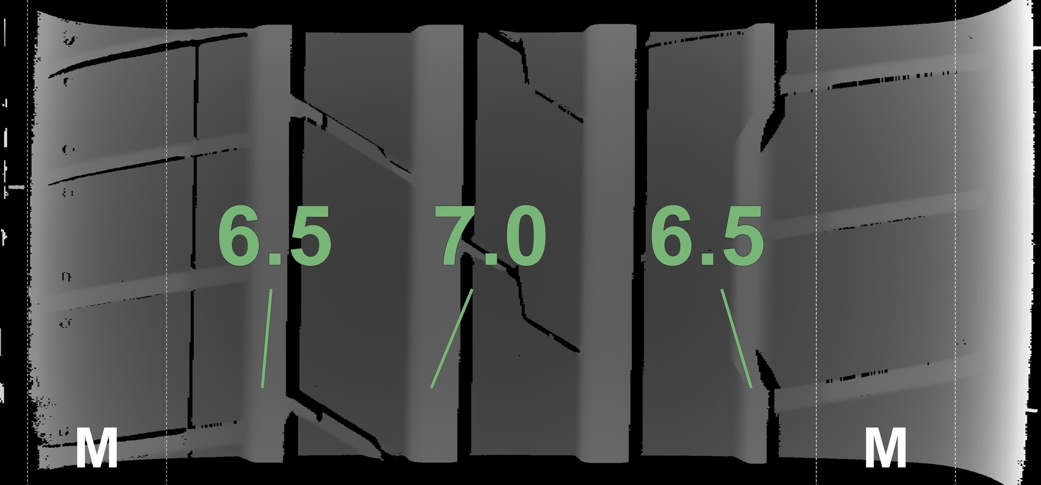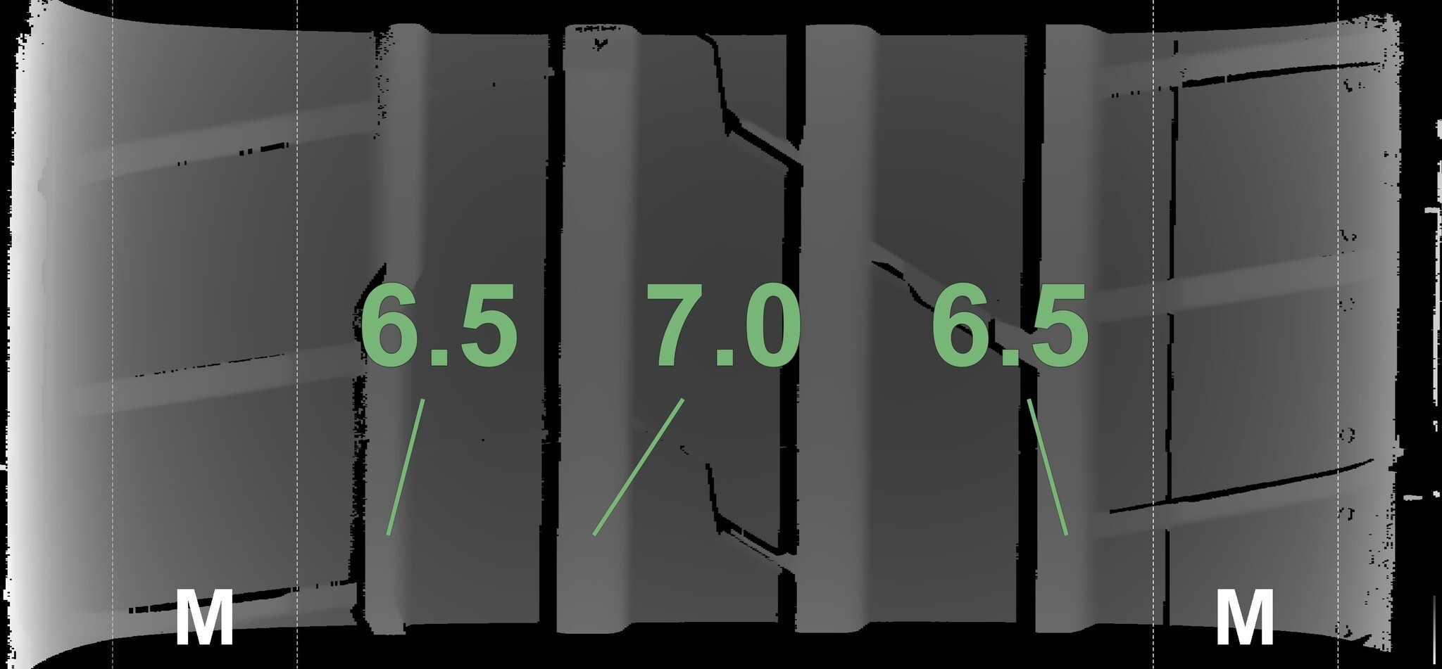 Die gemessenen Profiltiefen und die Details der Felgen sind oben dargestellt.