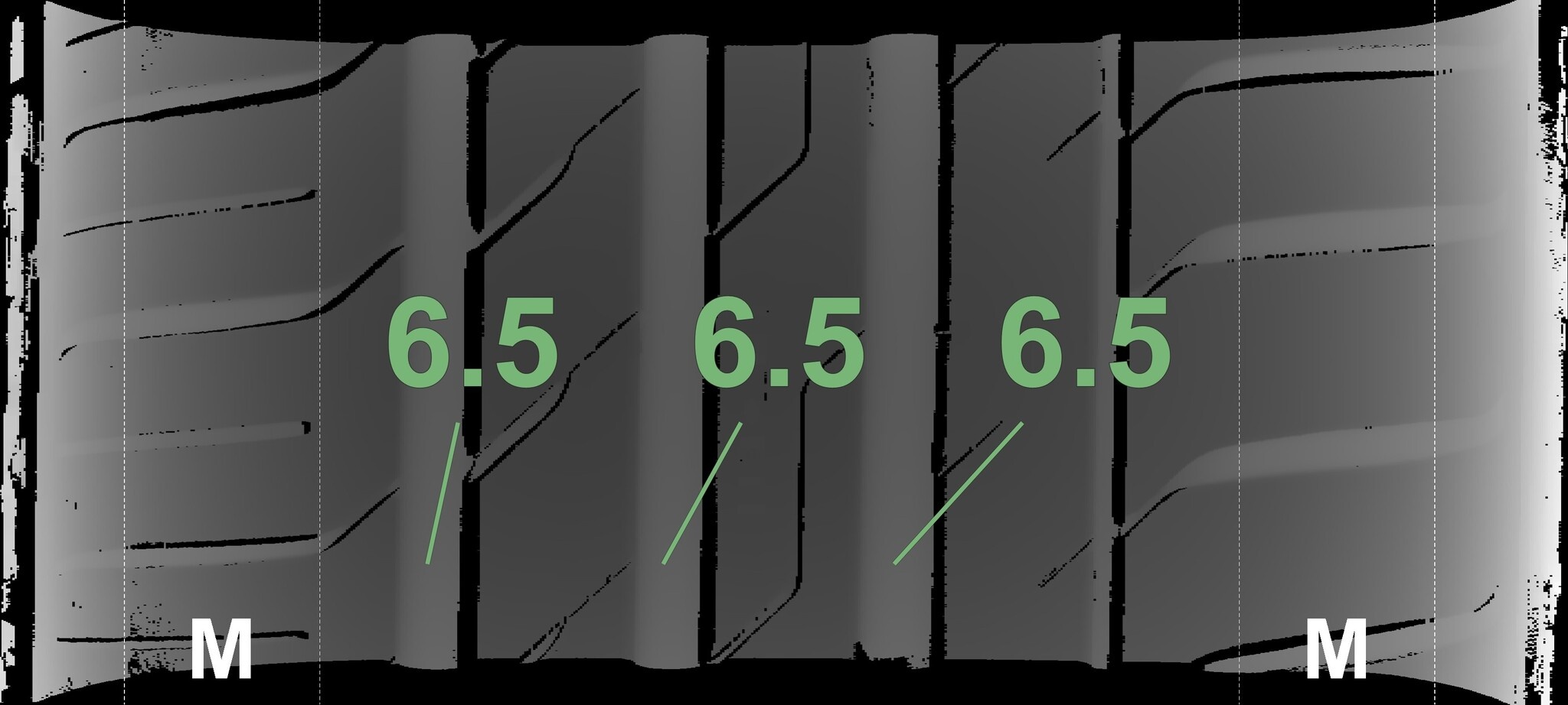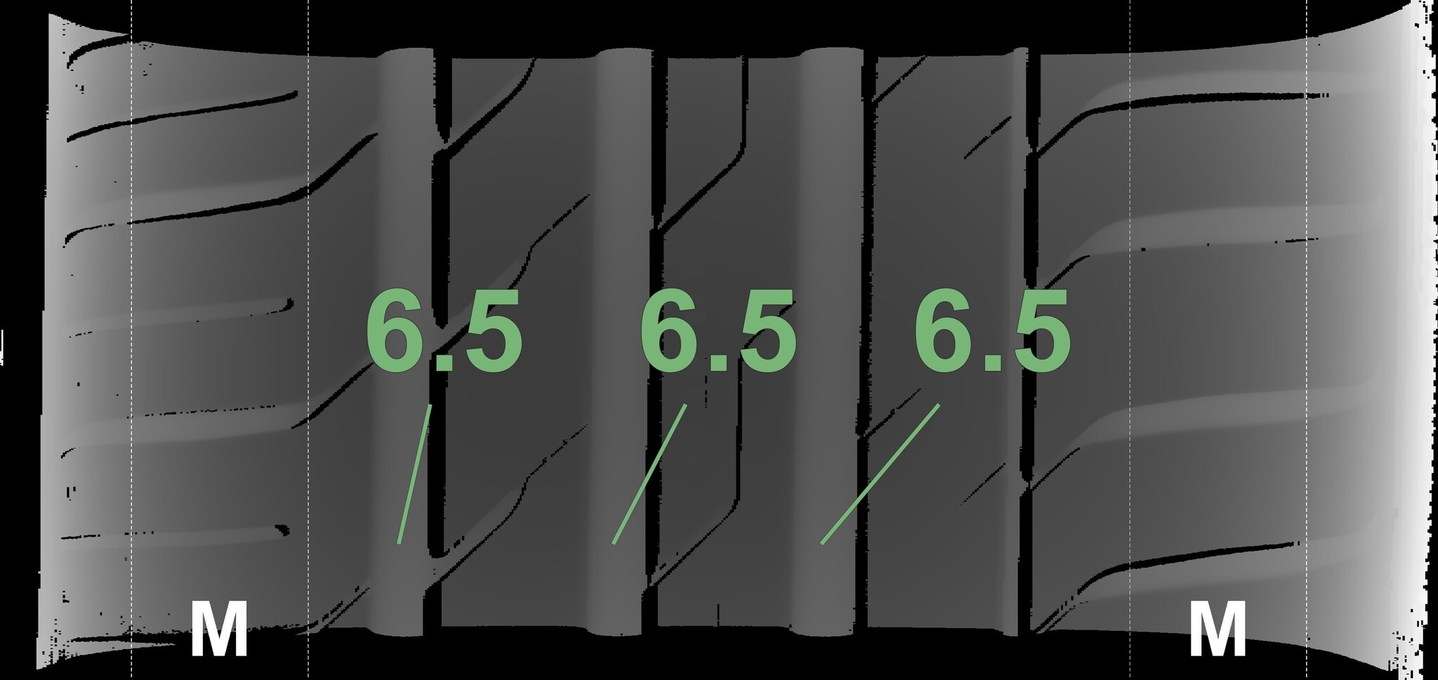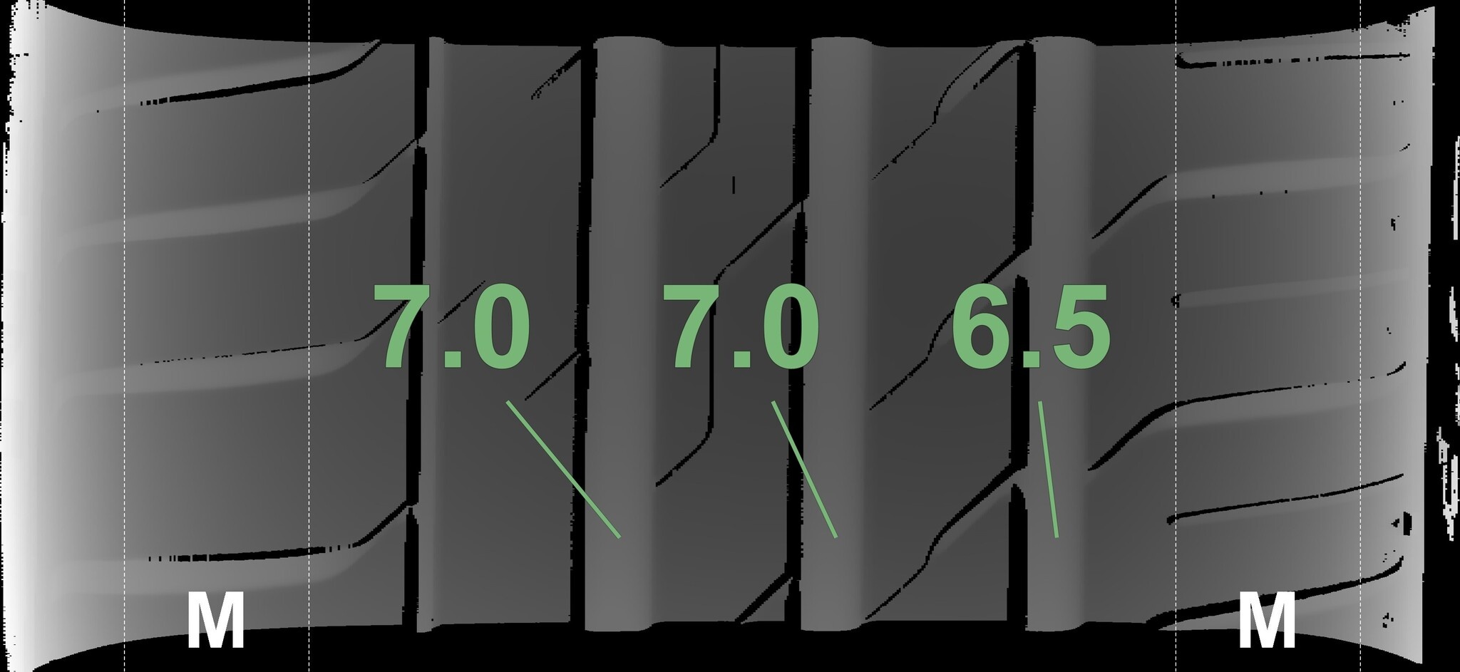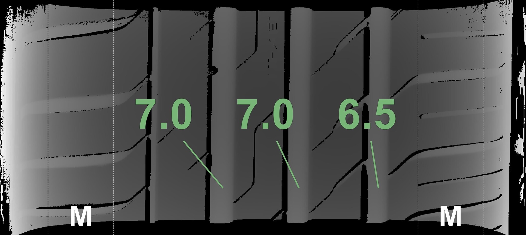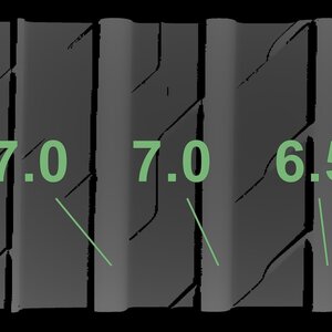 Die gemessenen Profiltiefen und die Details der Felgen sind oben angegeben.