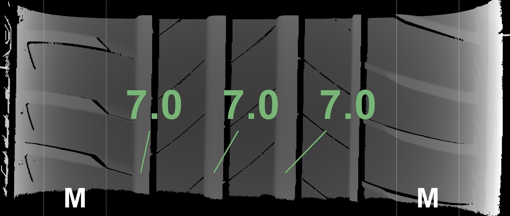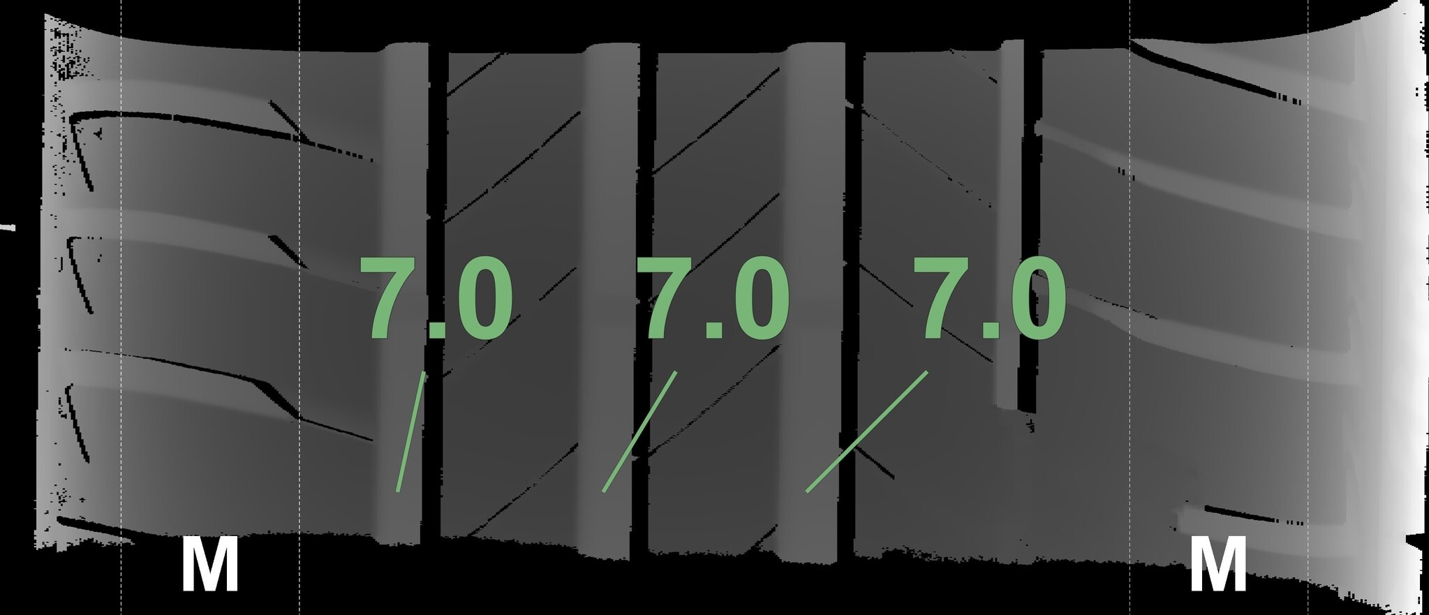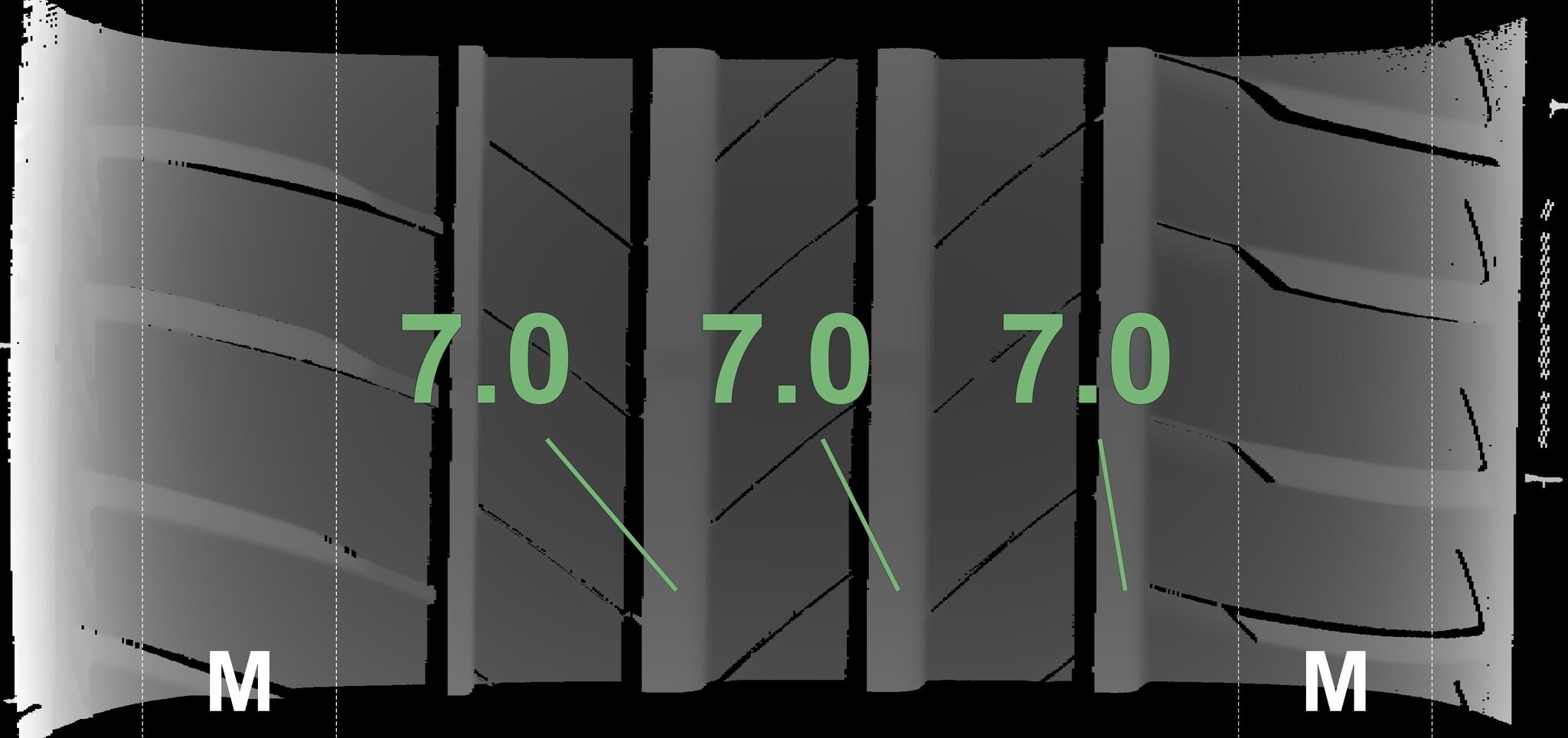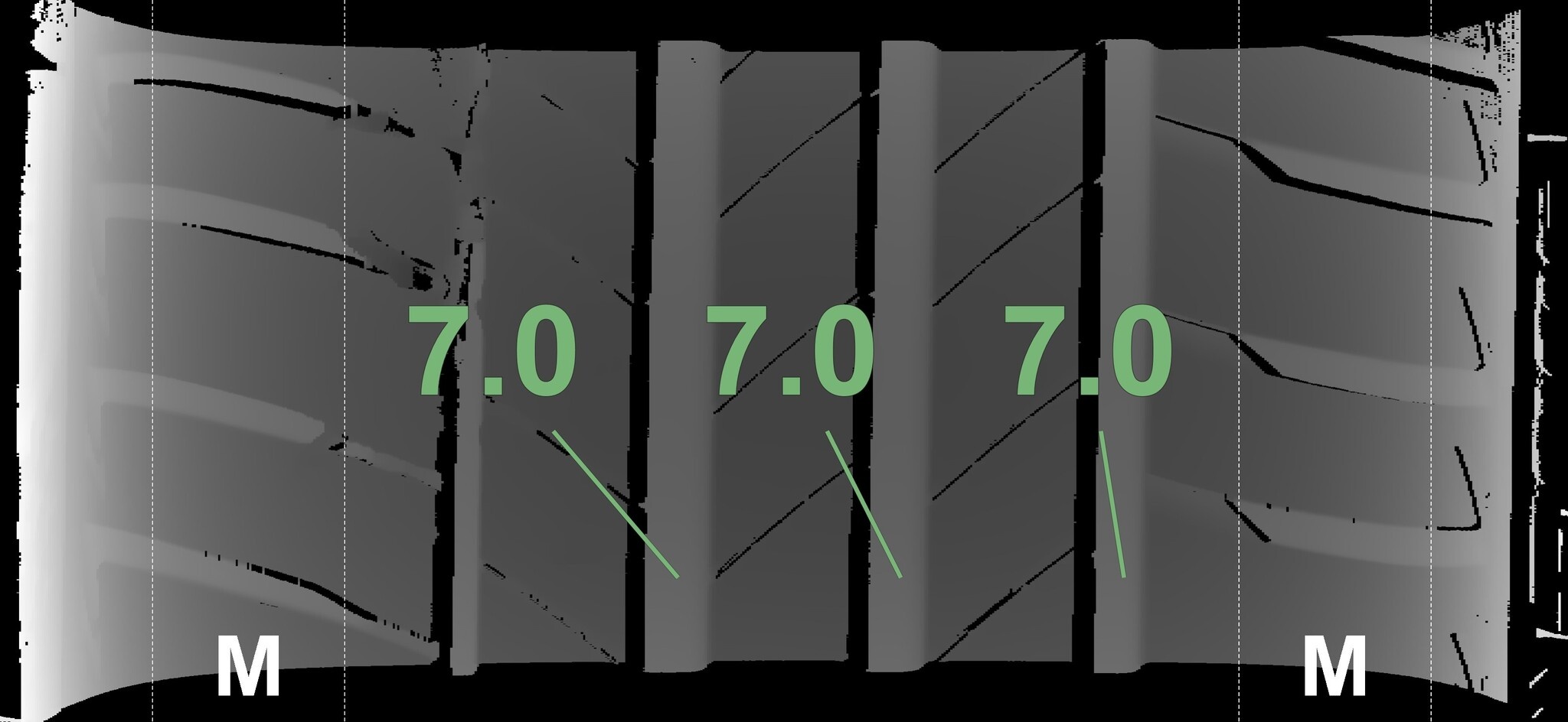 Die gemessenen Profiltiefen und die Details der Felgen sind oben aufgeführt.