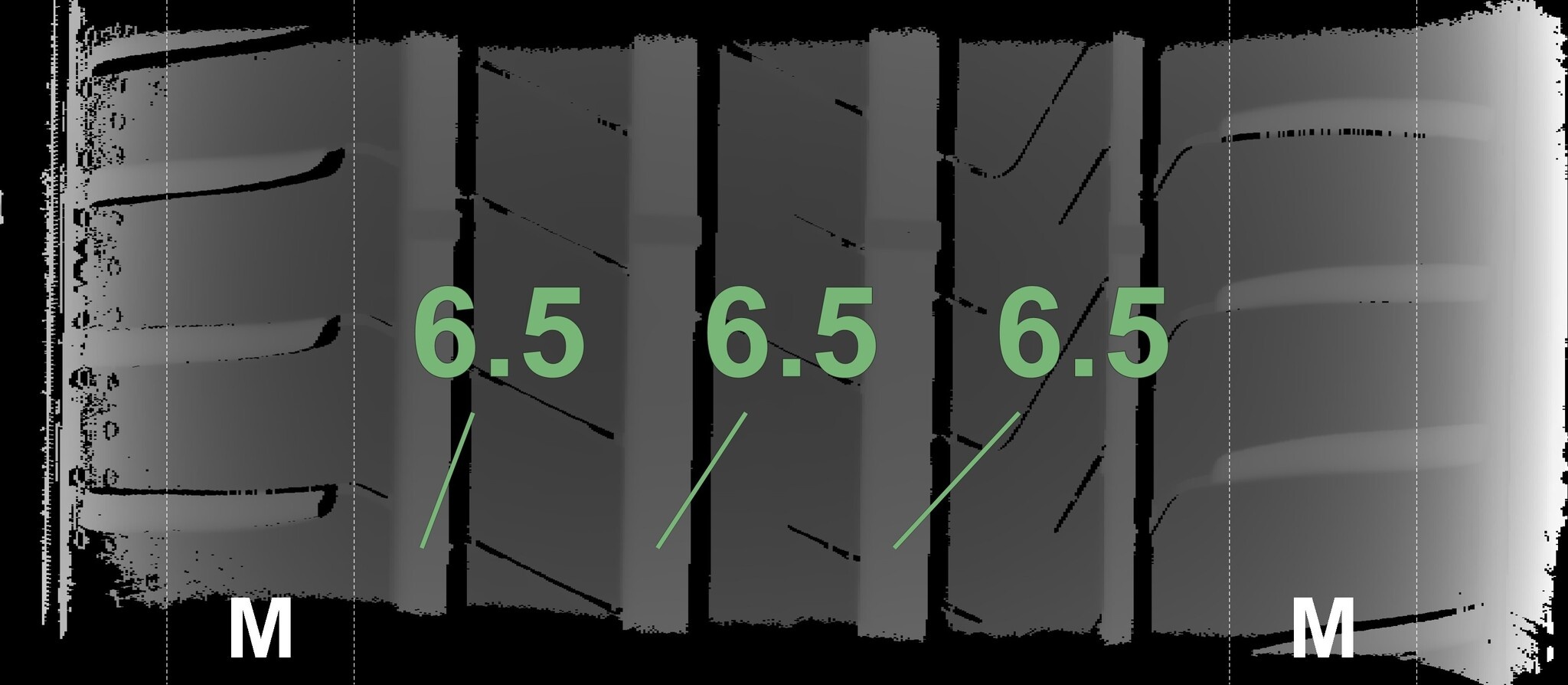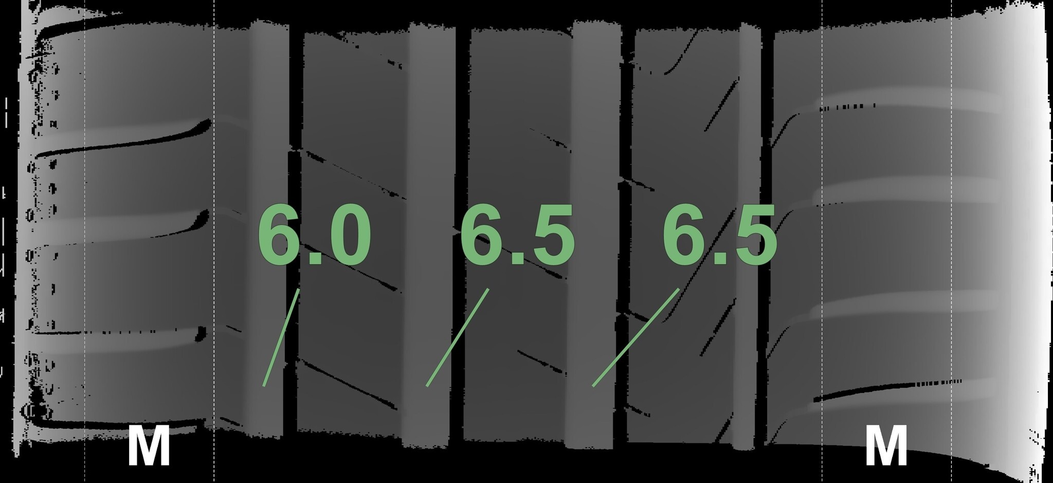 Die gemessenen Profiltiefen und die Details der Felgen sind oben angegeben.