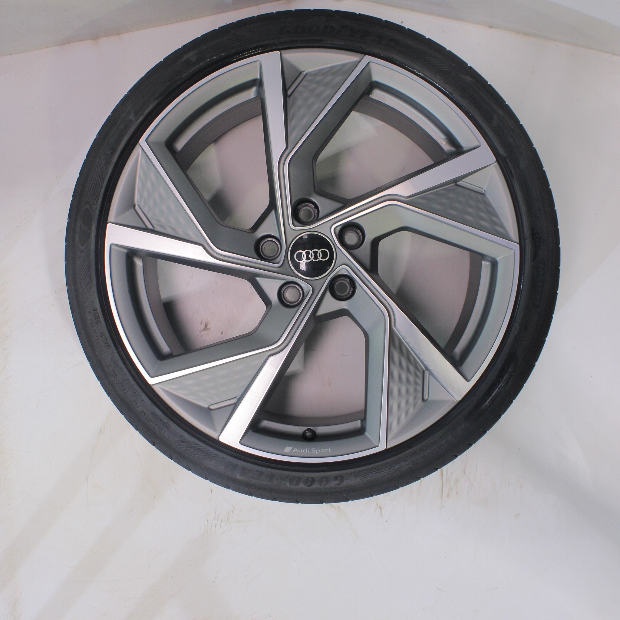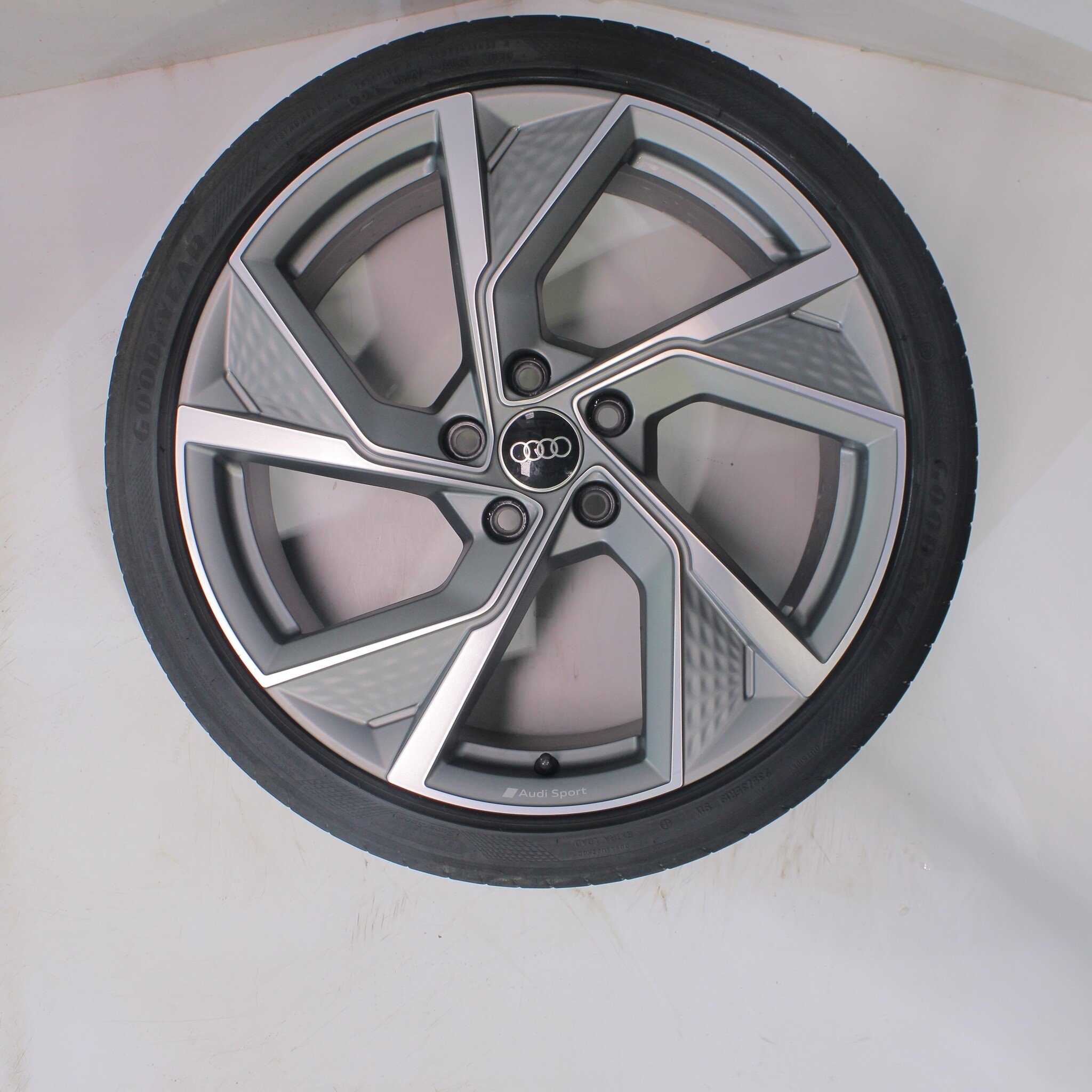 Originaler Radsatz von Audi, 19 Zoll Felgen mit Goodyear Eagle F1 SuperSport Sommerkompletträder. Diese Felgen sind Original-Felgen der Marke Audi und geeignet für: Audi A3 S3 8Y 8V.