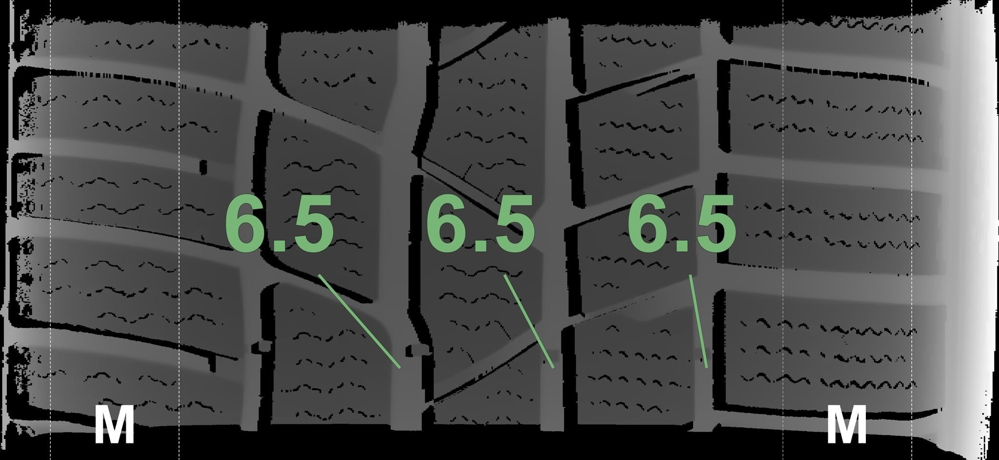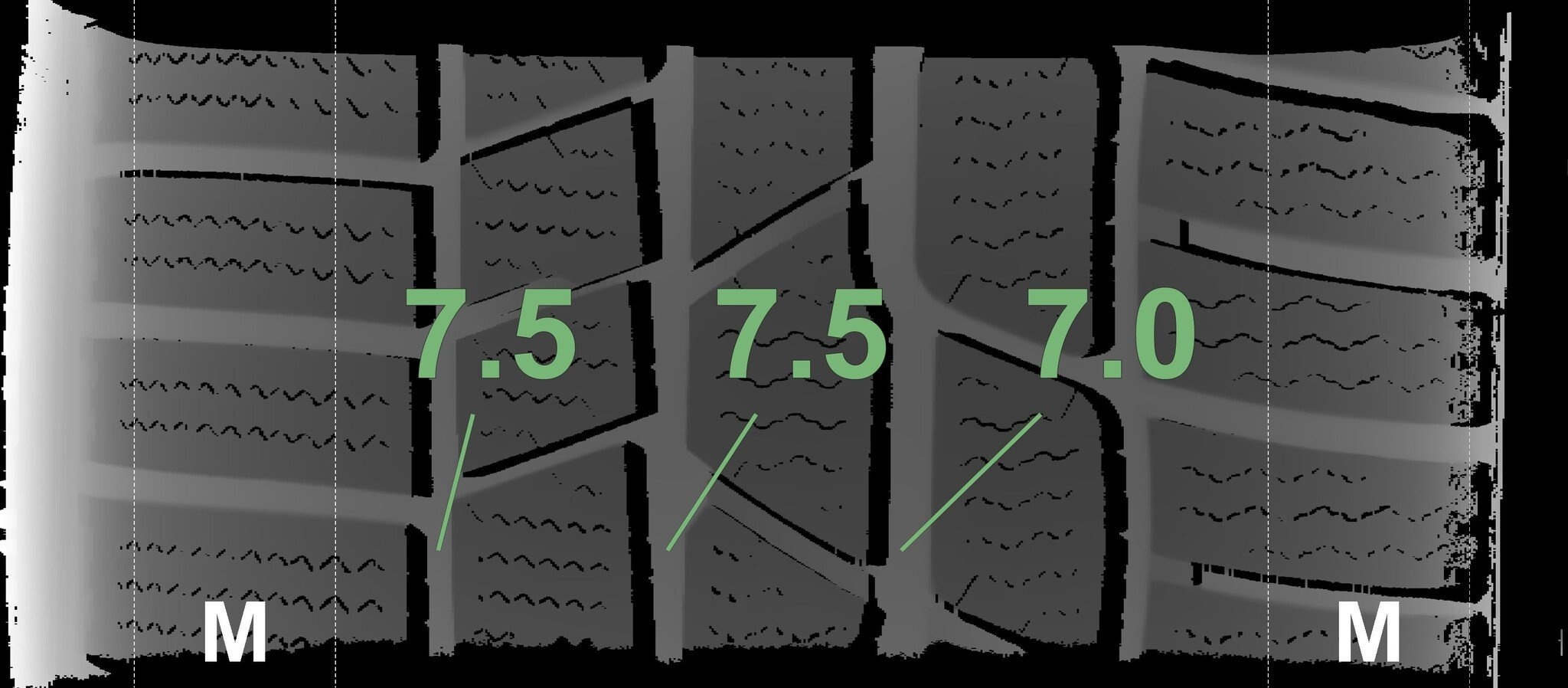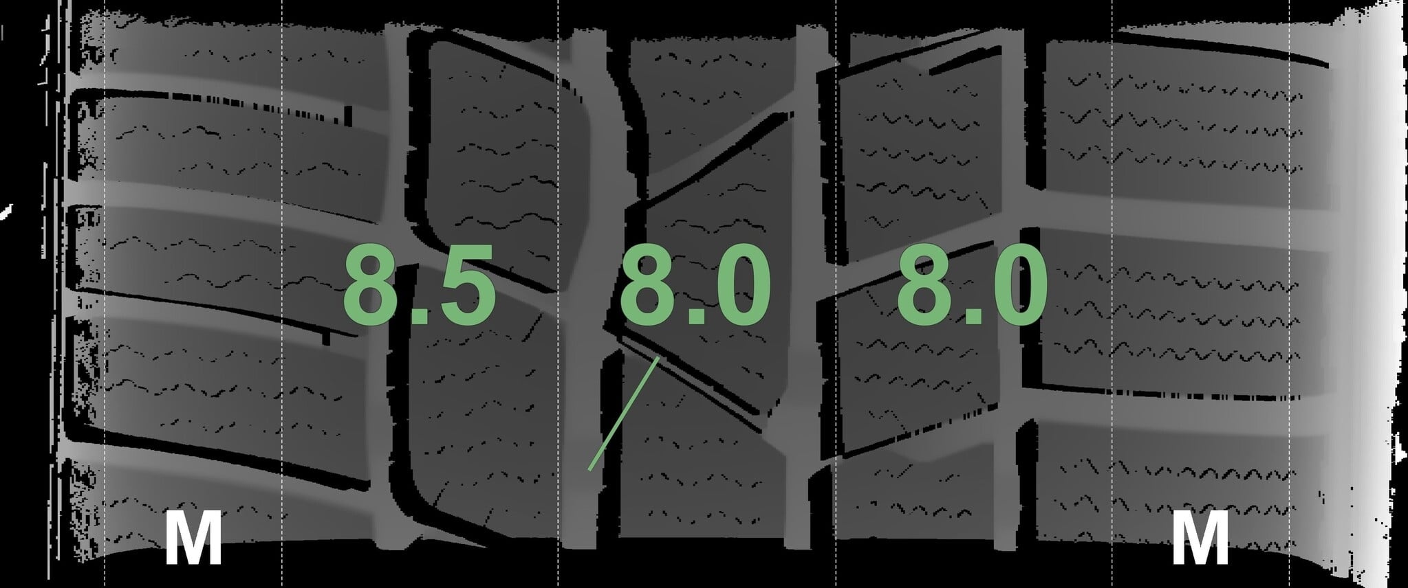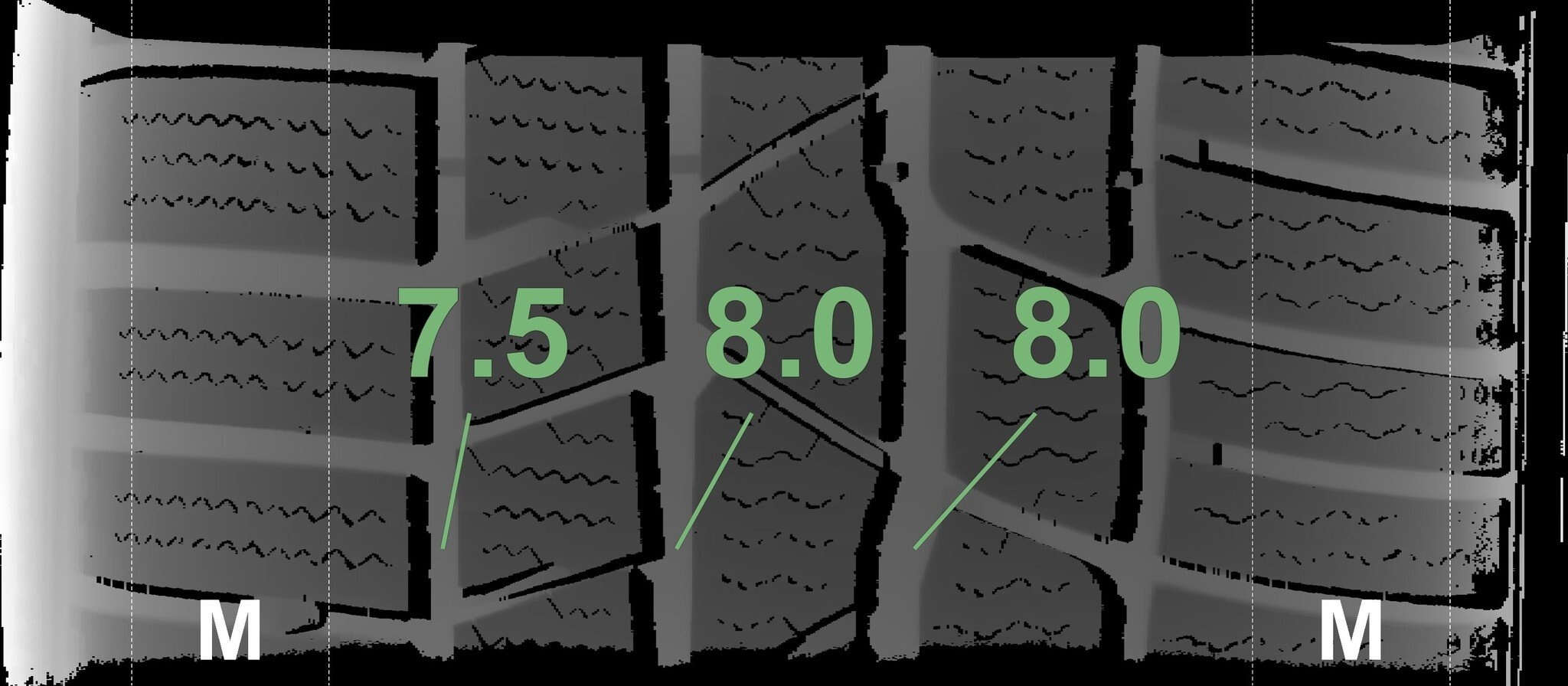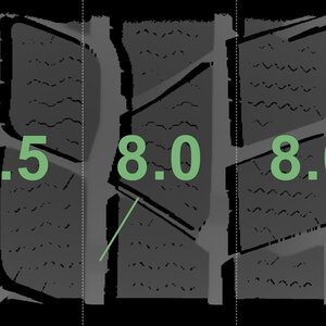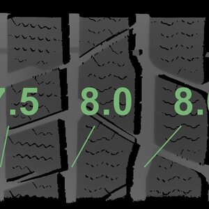 Die gemessenen Profiltiefen und die Details der Felgen sind oben angegeben.