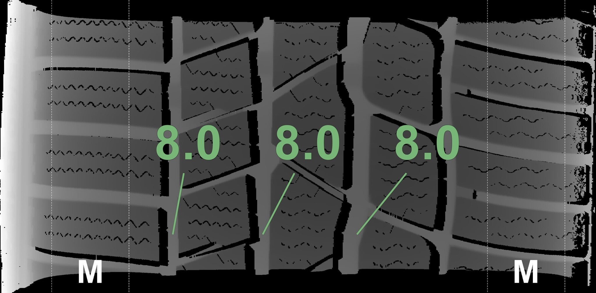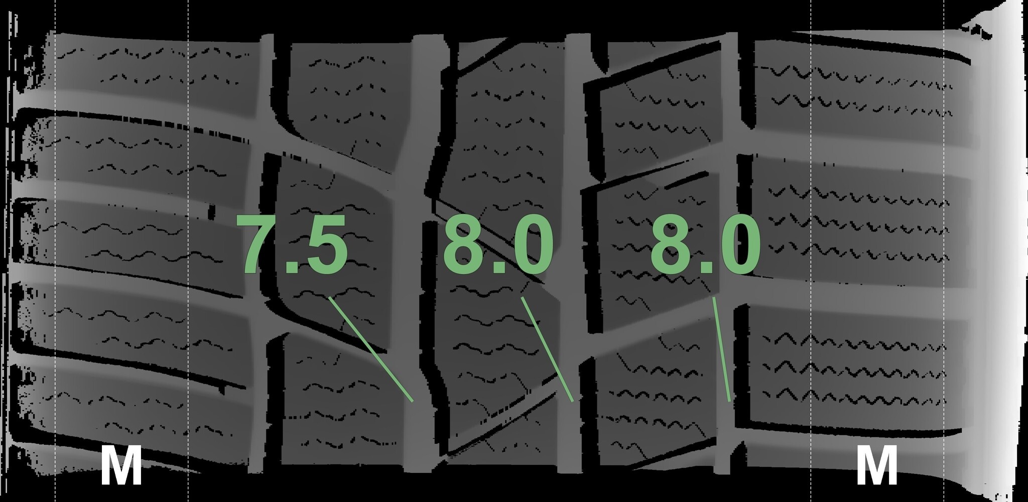 | Zustand | Profiltiefe | DOT | Vorderachse Rechts | Neu | 8.7 mm | 3025 |