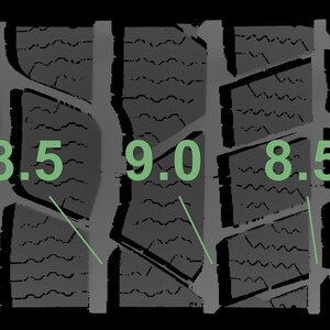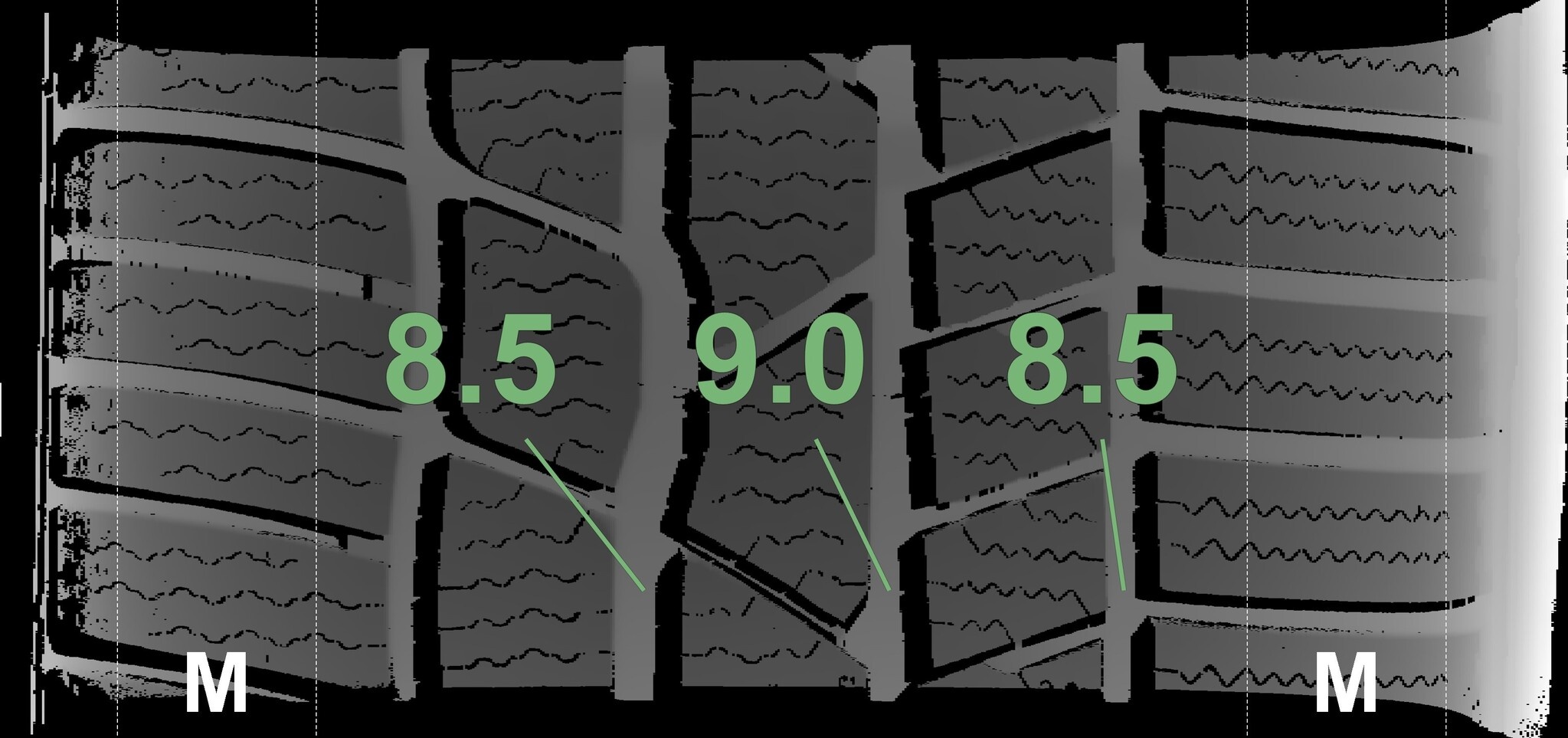 | Zustand | Profiltiefe | DOT | Vorderachse Links | Neu | 9.0 mm | 3025 |