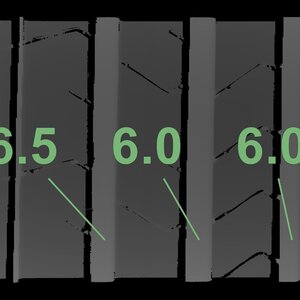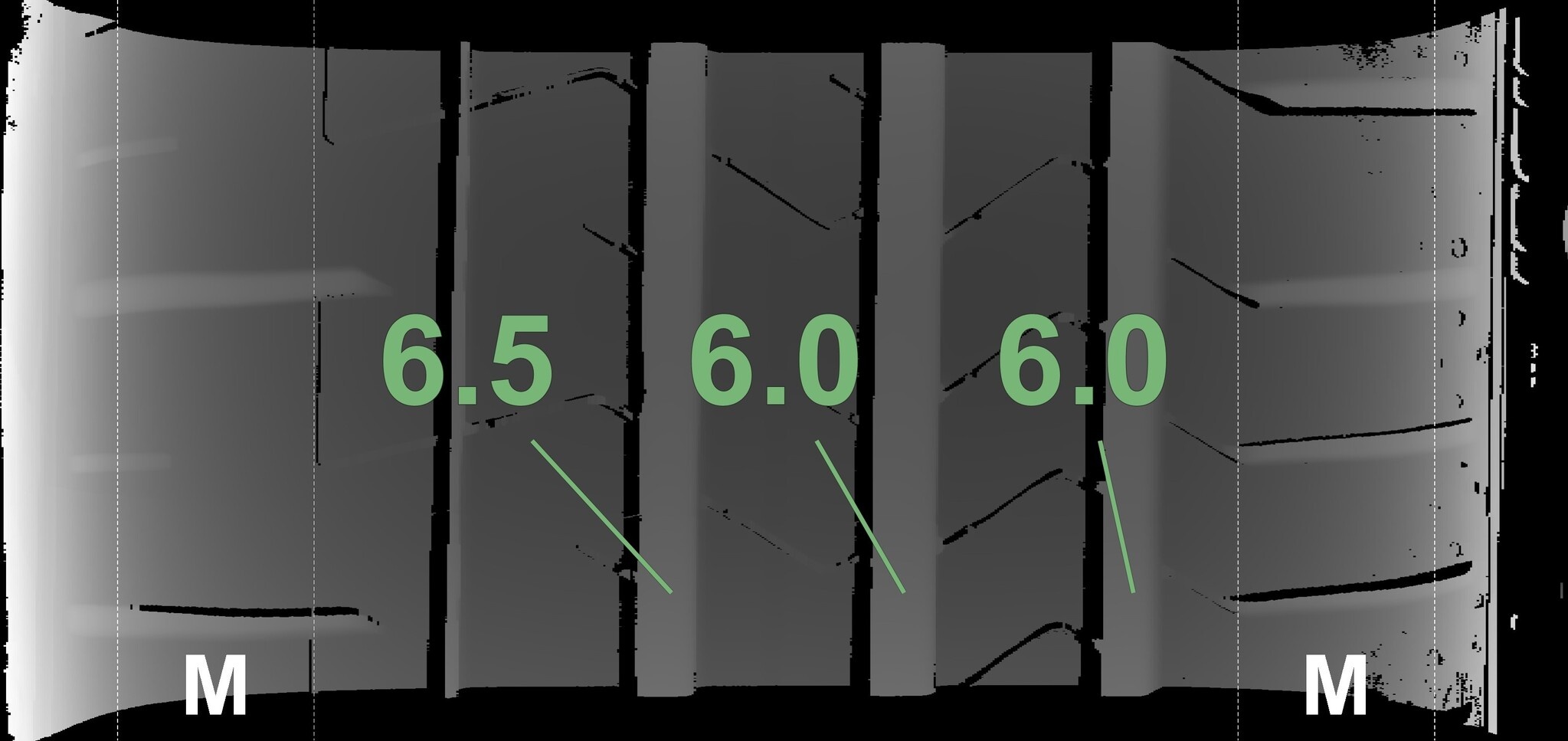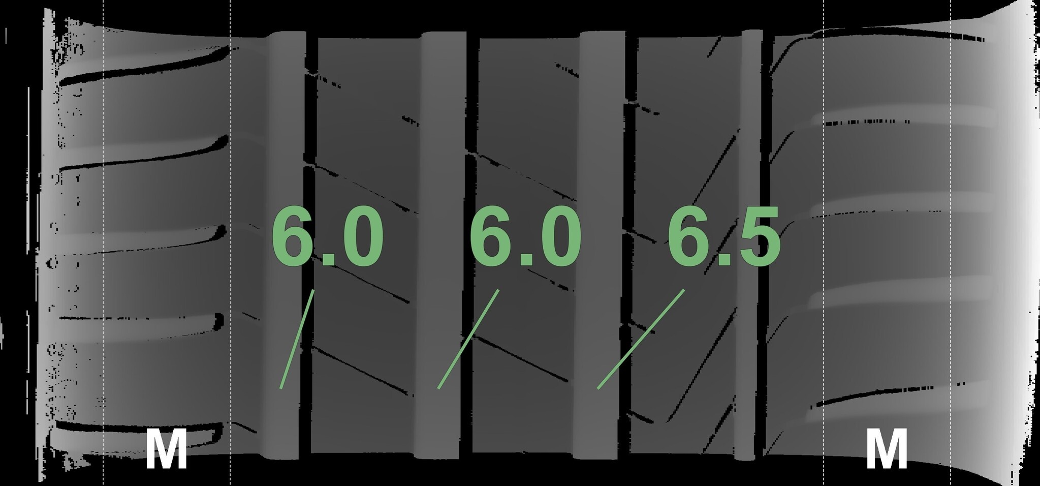 Die gemessenen Profiltiefen und die Details der Felgen sind oben aufgeführt.
