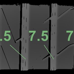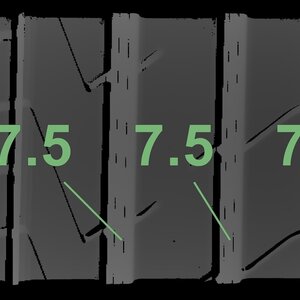 Die gemessenen Profiltiefen und die Details der Felgen sind oben dargestellt.