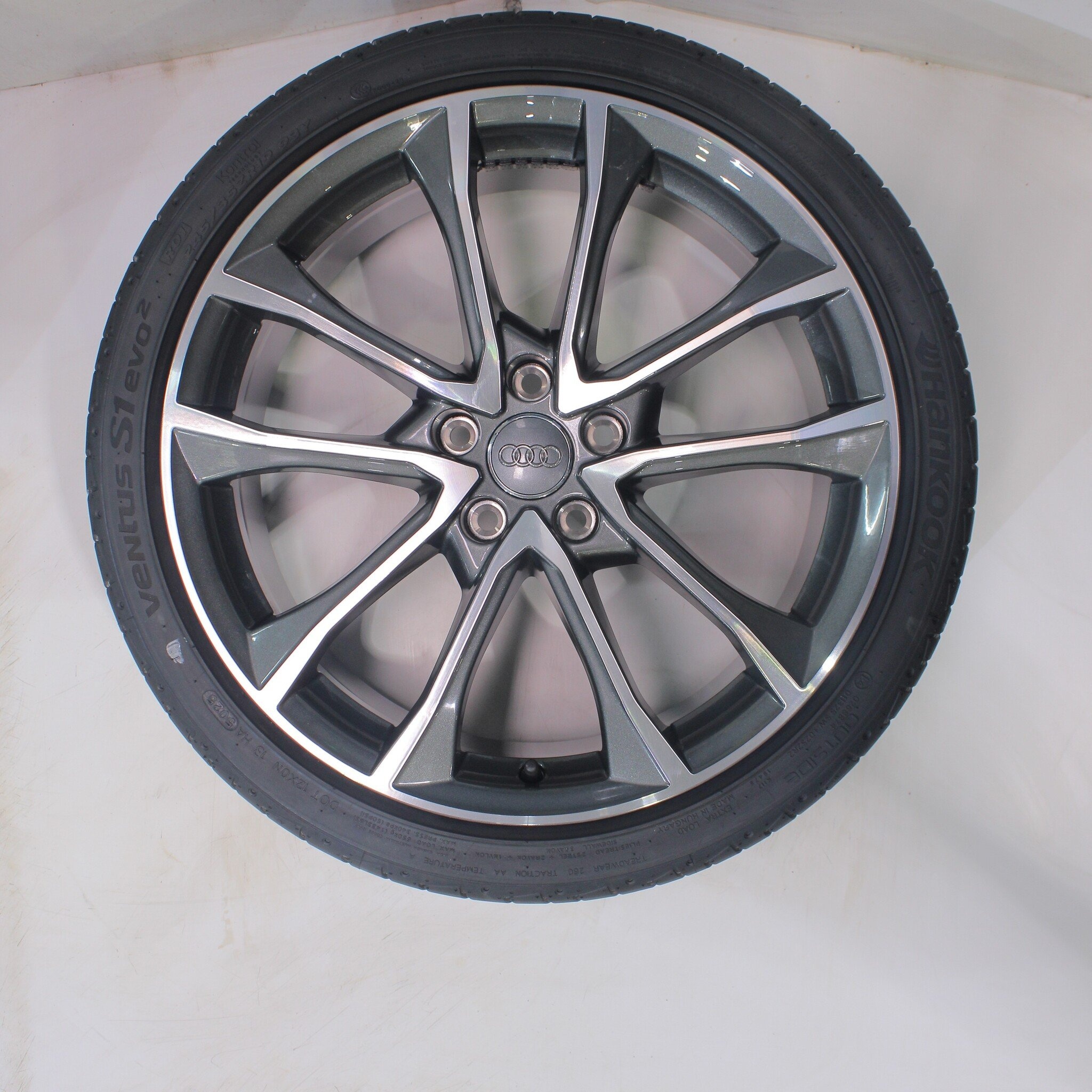 Original Radsatz von Audi, 19 Zoll Felgen mit Hankook Ventus S1 evo 2 Sommerkompletträder. Diese Felgen sind Original Felgen von der Marke Audi und geeignet für: Audi A4 S4 B9 8W.