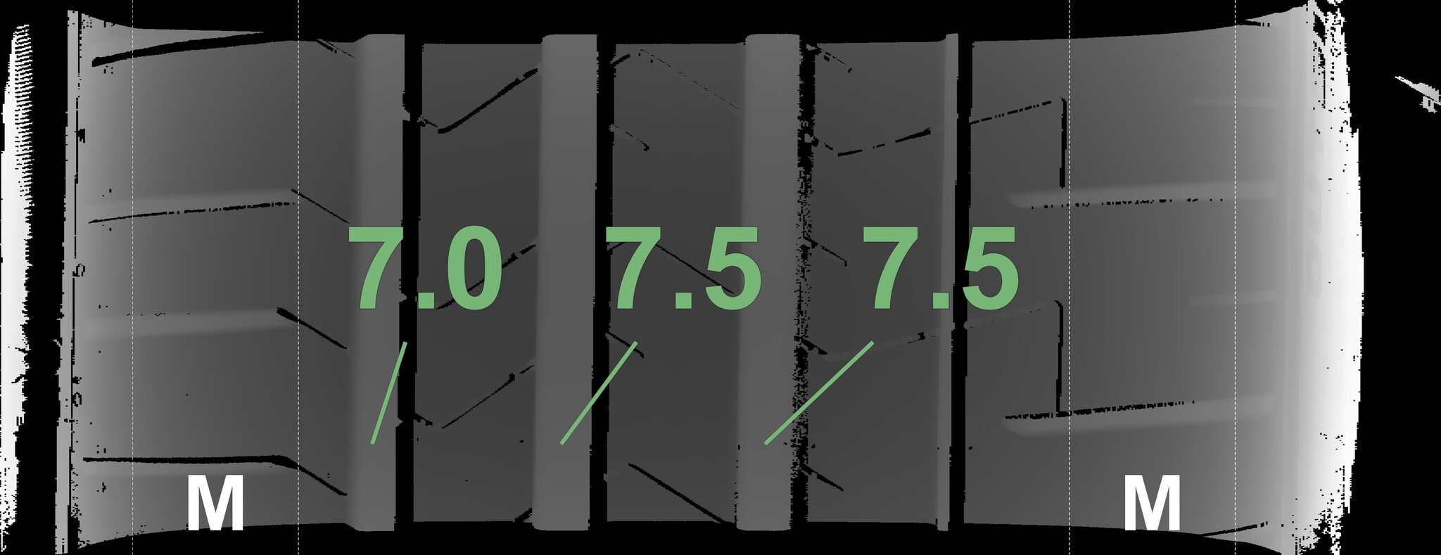 Die gemessenen Profiltiefen und die Details der Felgen sind oben aufgeführt.
