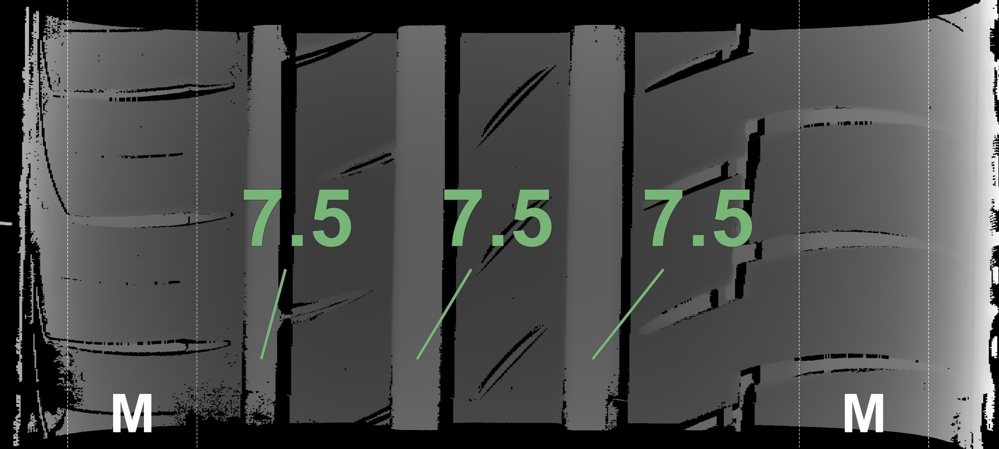 | Zustand | Profiltiefe | DOT | Hinterachse Rechts | Neu | 7.5 mm | 0225 |