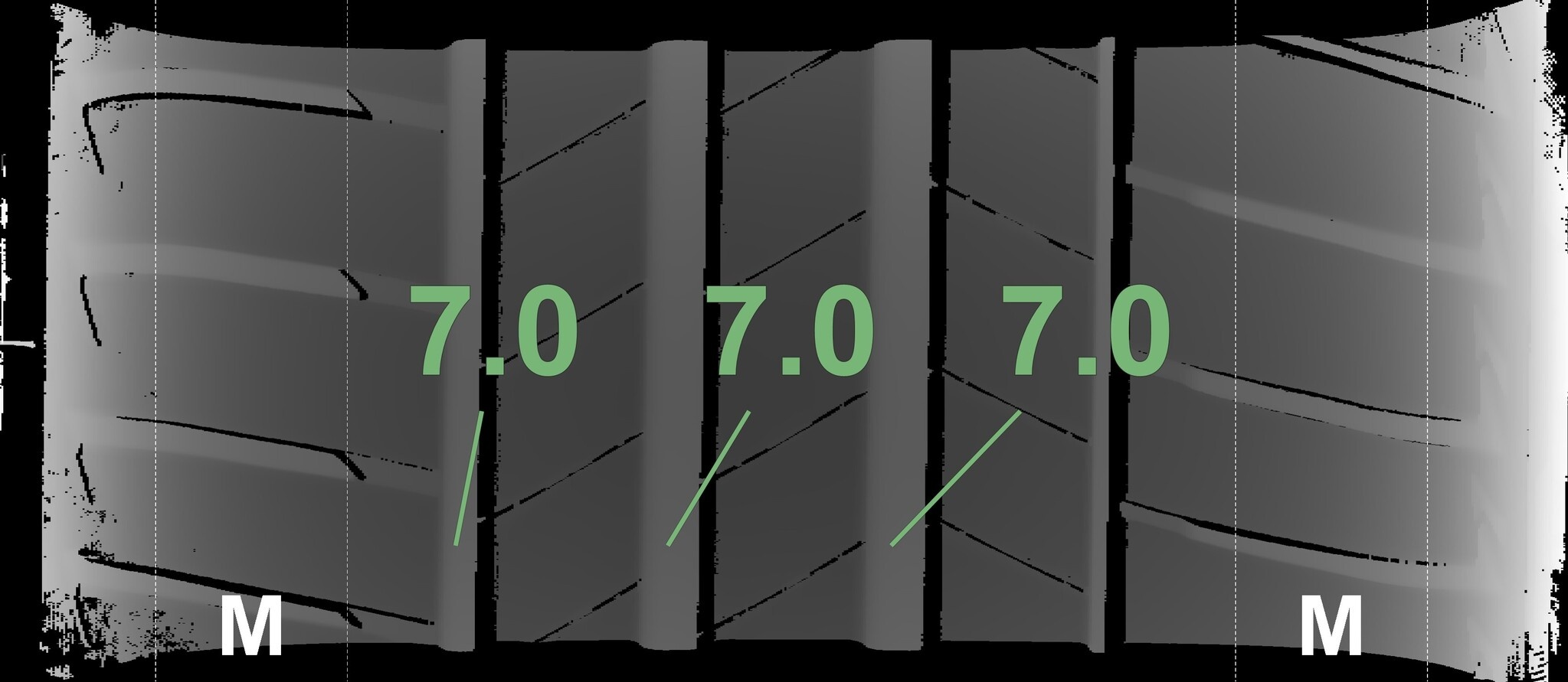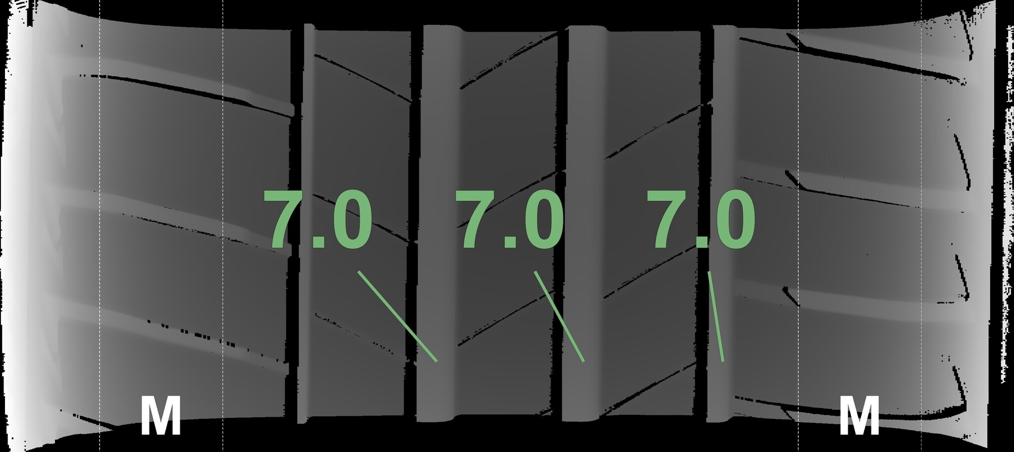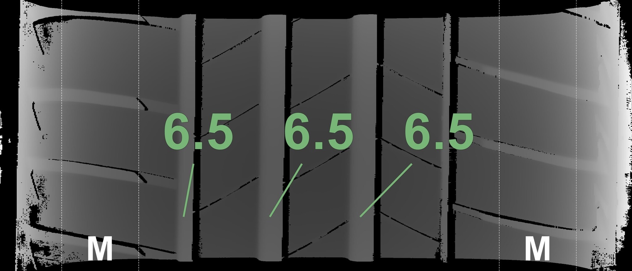 Die gemessenen Profiltiefen und die Details der Felgen sind oben angegeben.