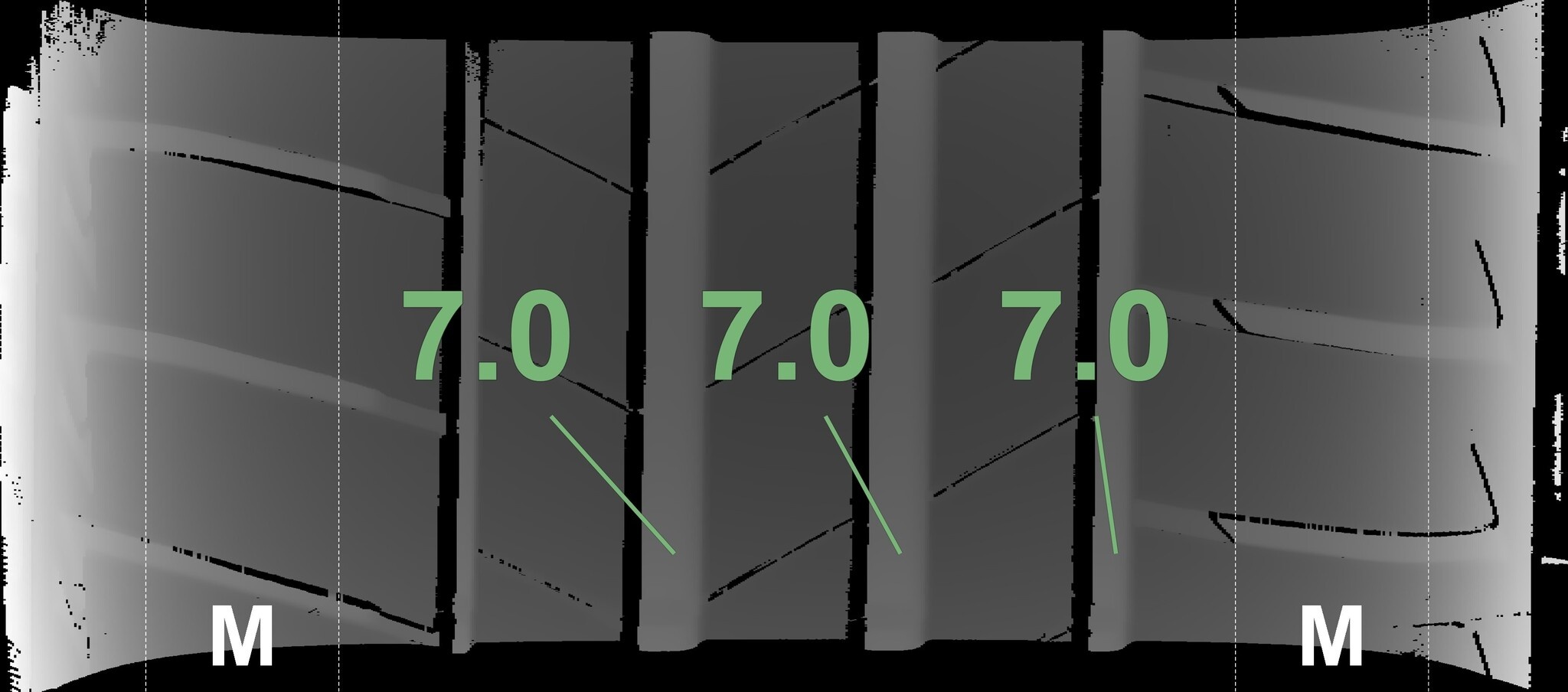 | Zustand | Profiltiefe | DOT | Vorderachse Links | Gebraucht | 7.0 mm | 3419 |