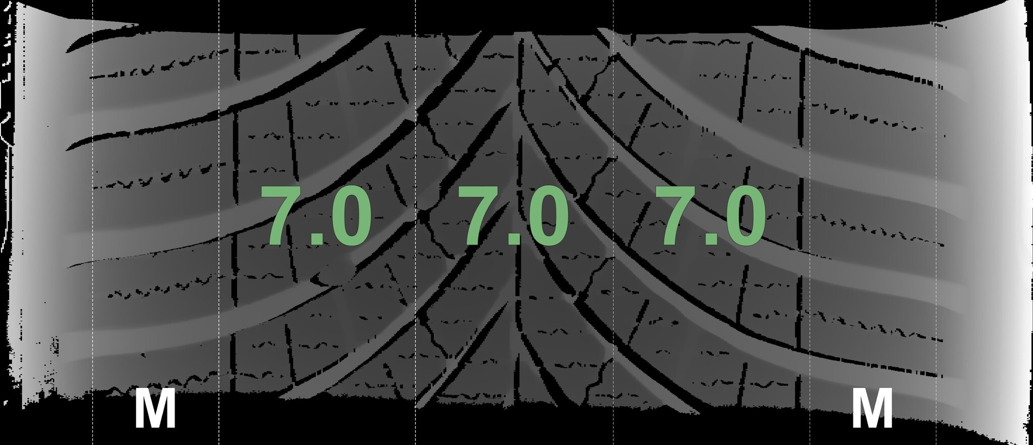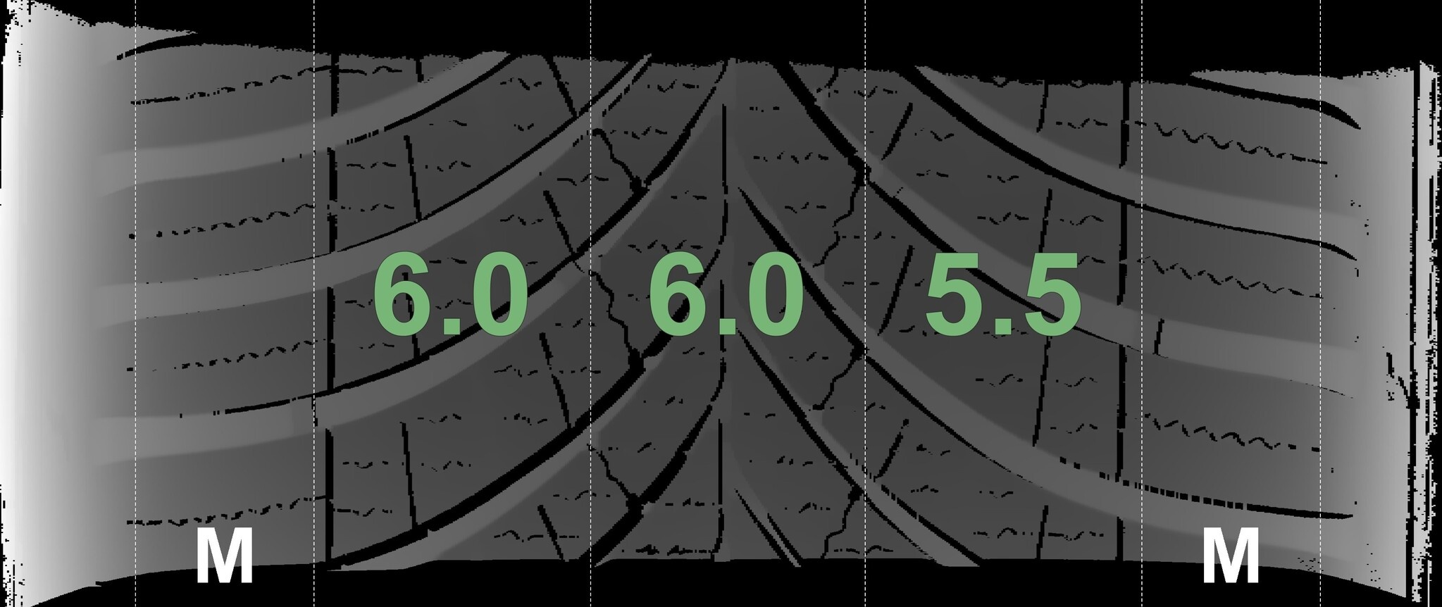 | Zustand | Profiltiefe | DOT | Vorderachse Links | Neu | 8.0 mm | 5024 |