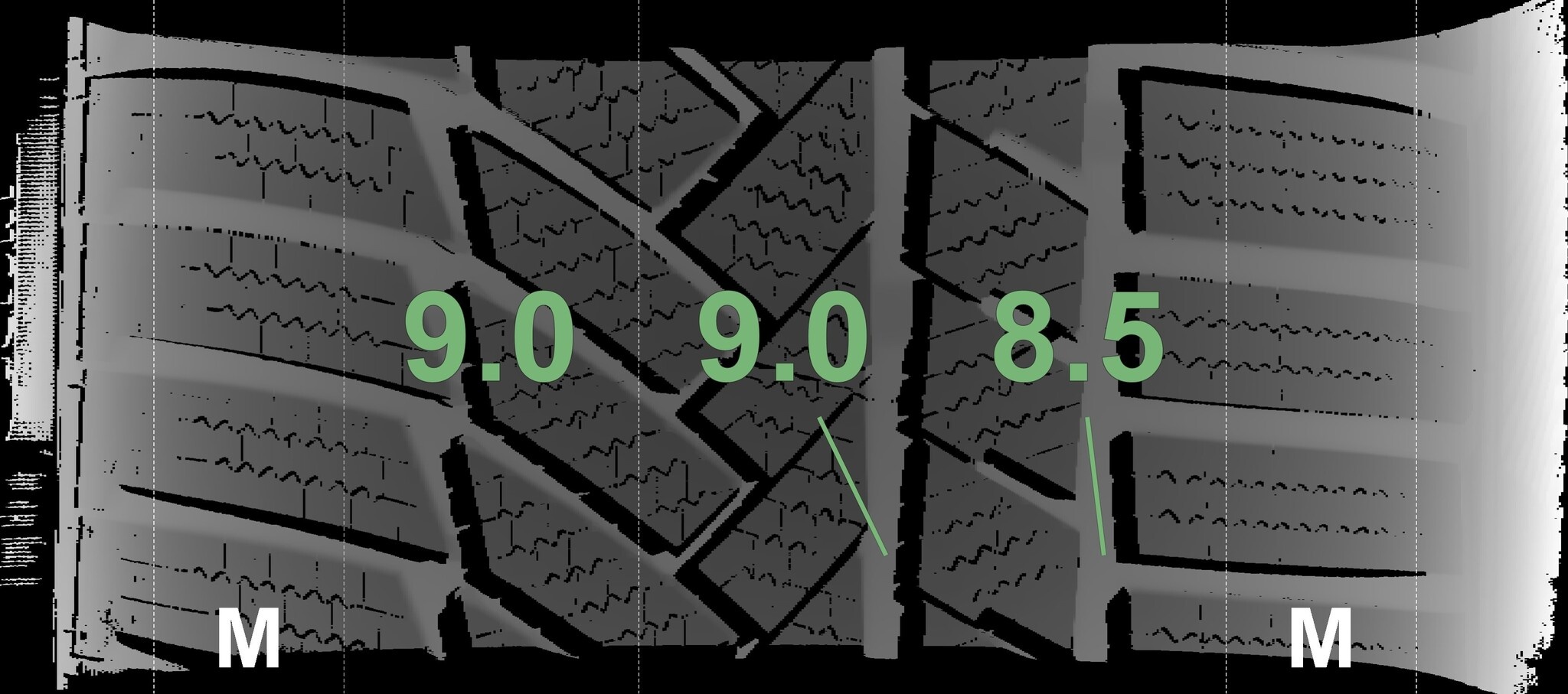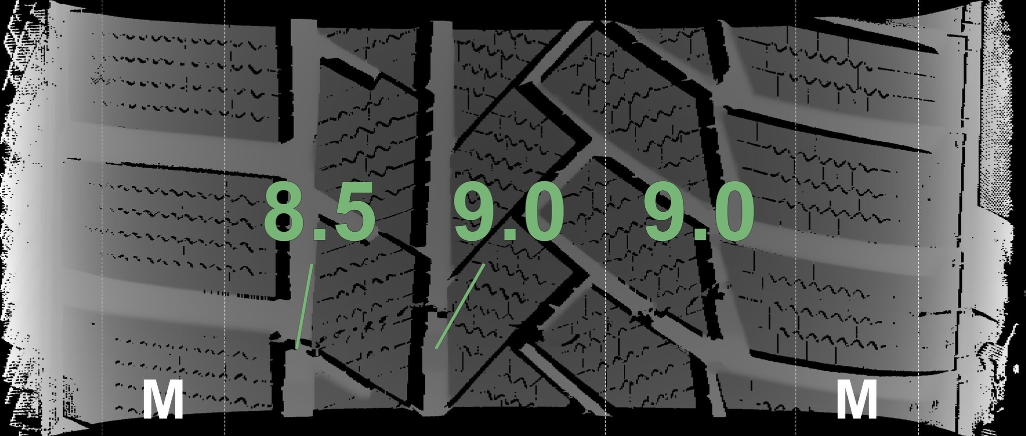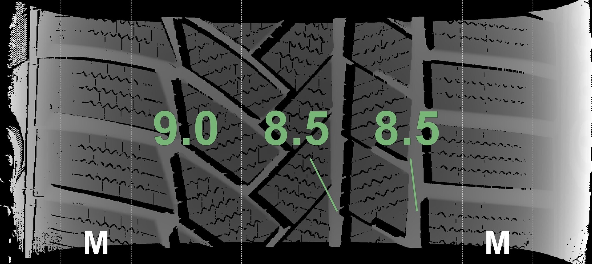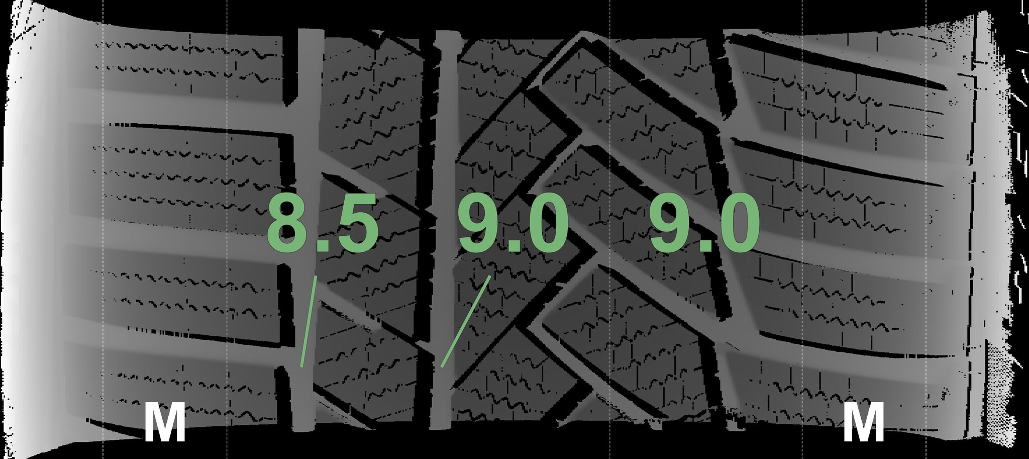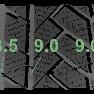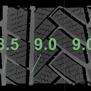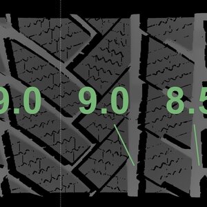 Die gemessenen Profiltiefen und die Details der Felgen sind oben aufgeführt.
