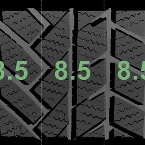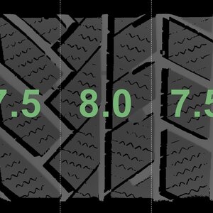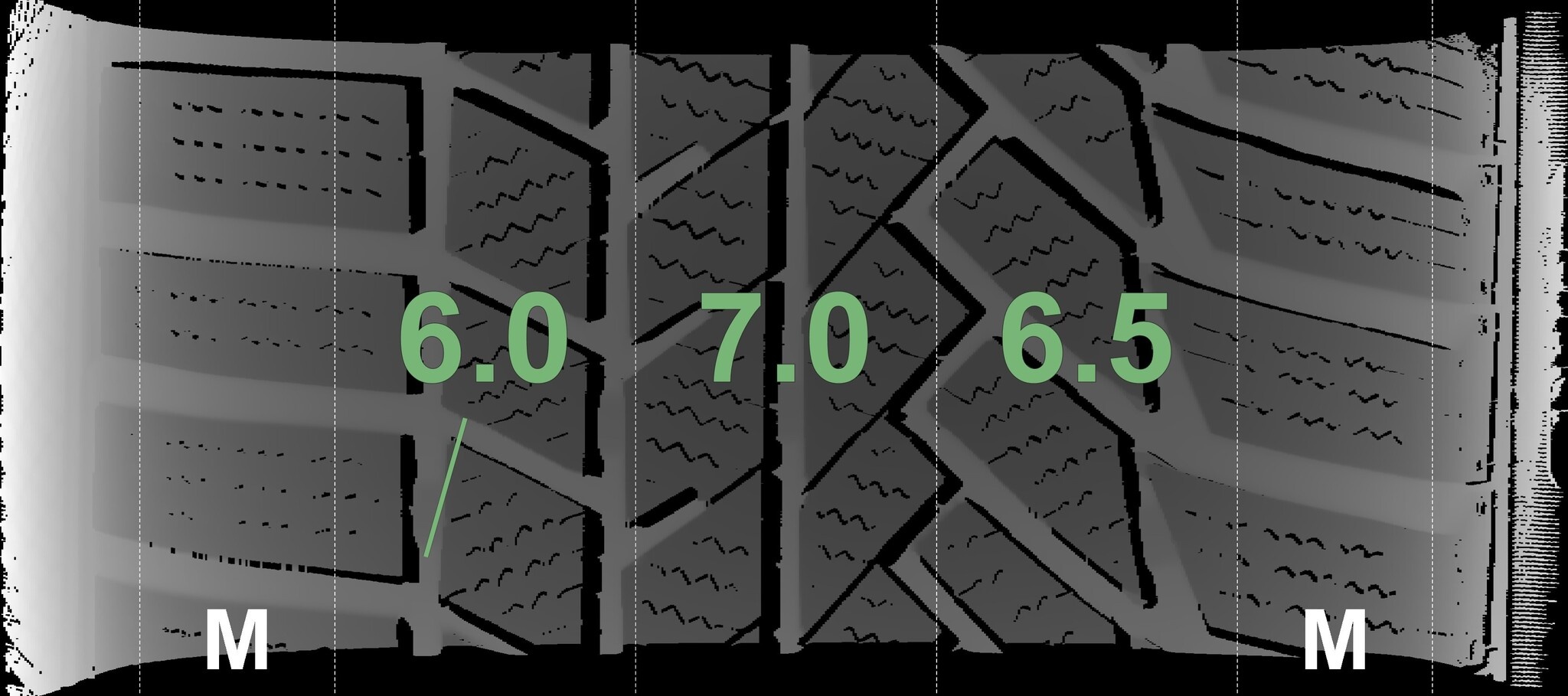 Die gemessenen Profiltiefen und die Details der Felgen sind oben dargestellt.
