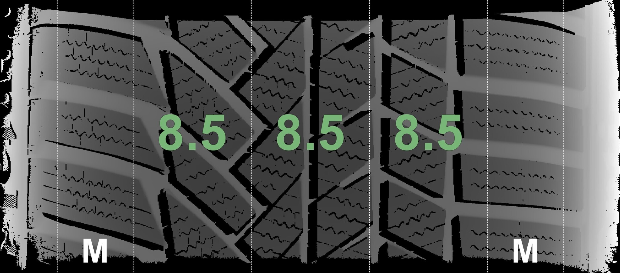 | Zustand | Profiltiefe | DOT | Vorderachse Rechts | Gebraucht | 8.5 mm | 1623 |