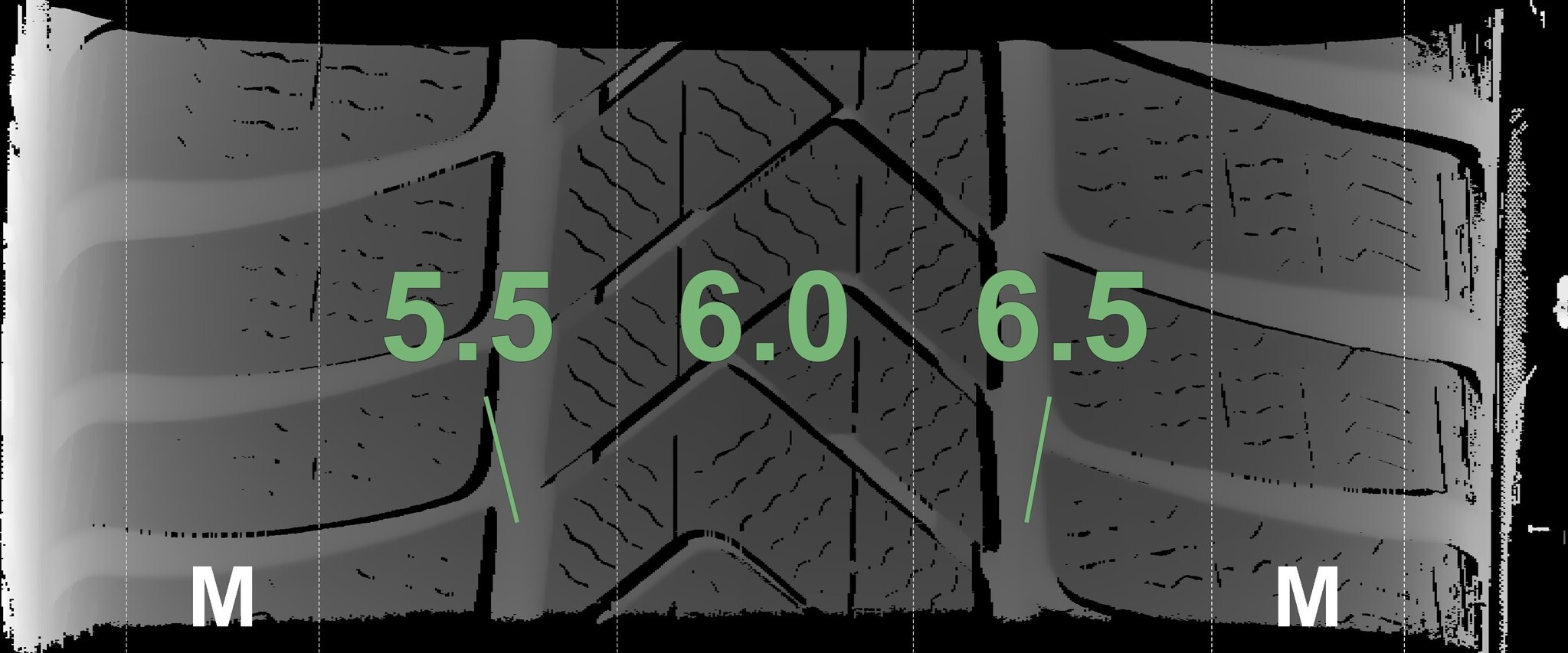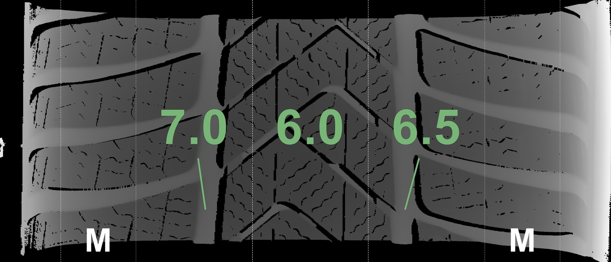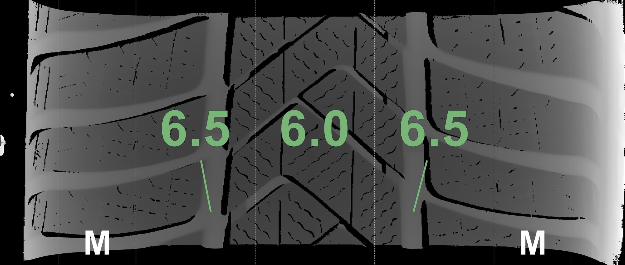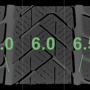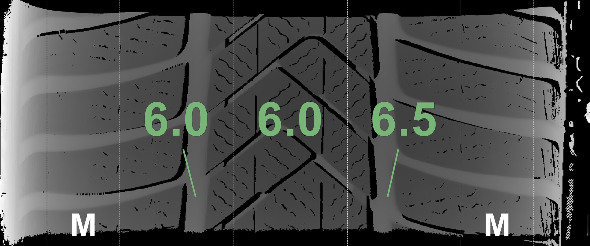 Die gemessenen Profiltiefen und die Details der Felgen sind oben dargestellt.