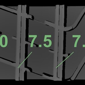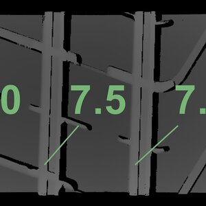 Die gemessenen Profiltiefen und Details der Felgen sind oben abgebildet.