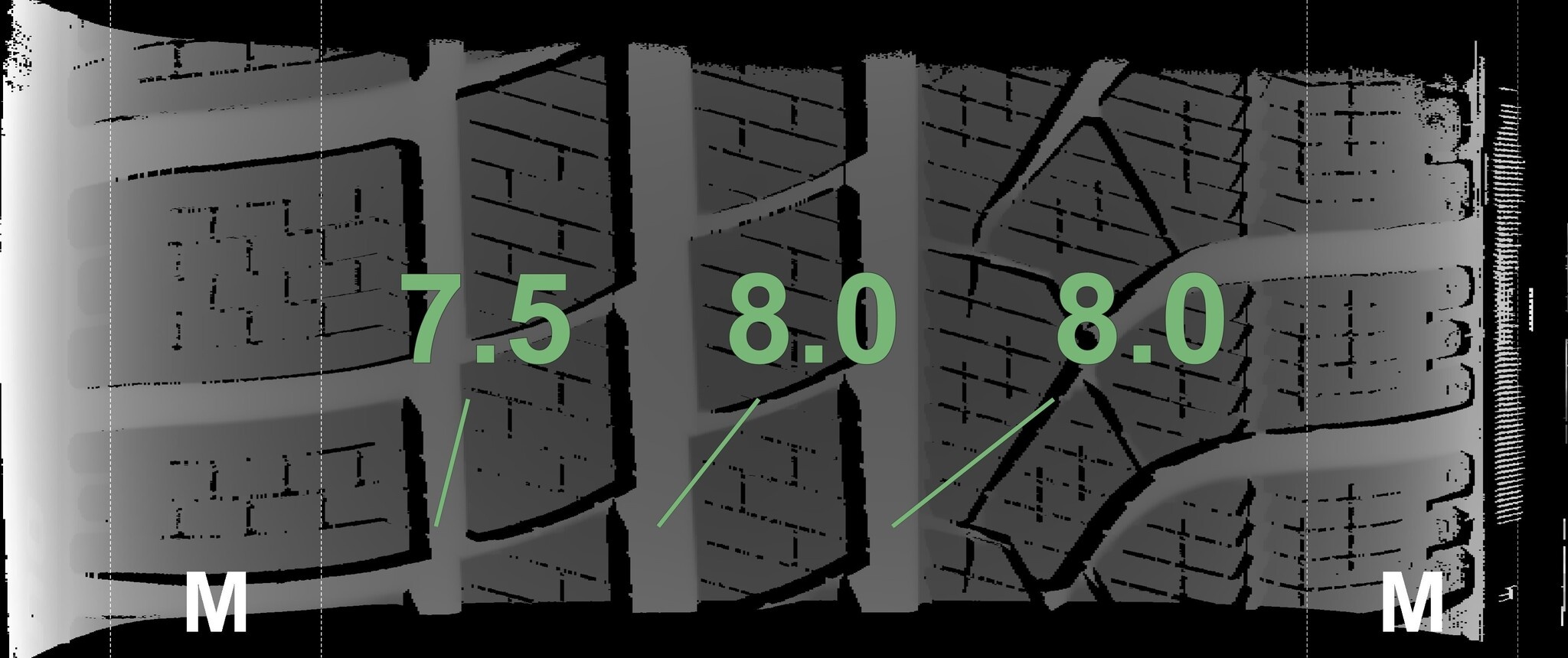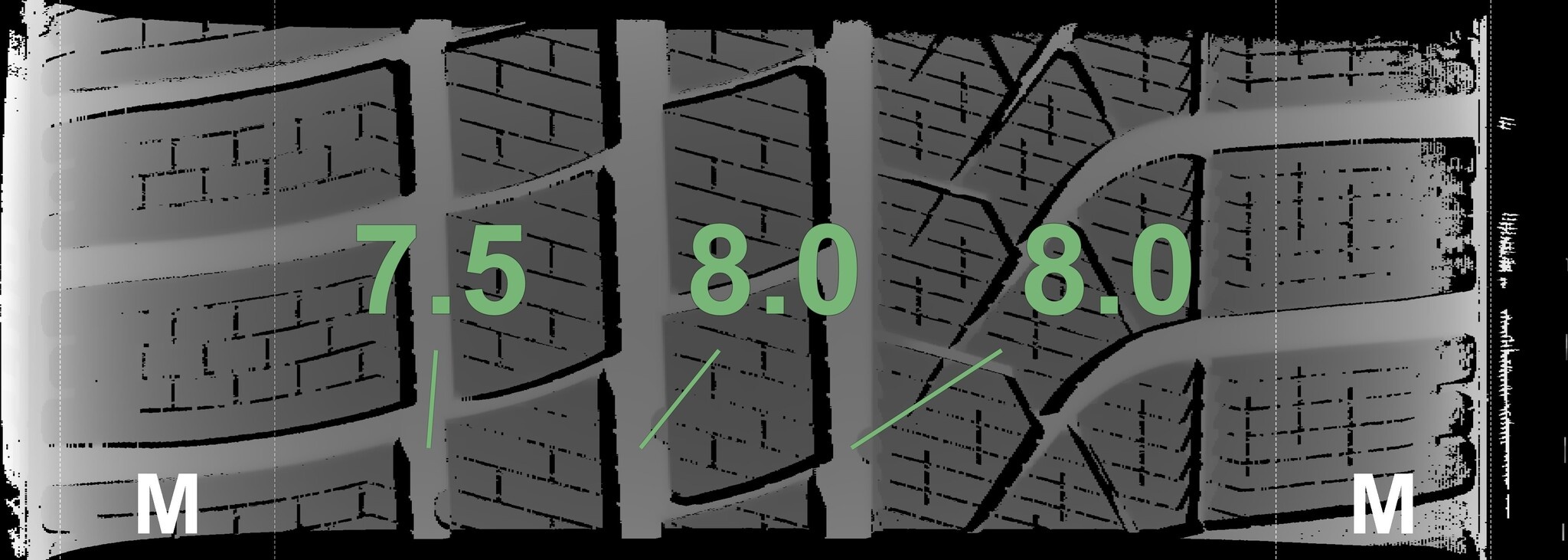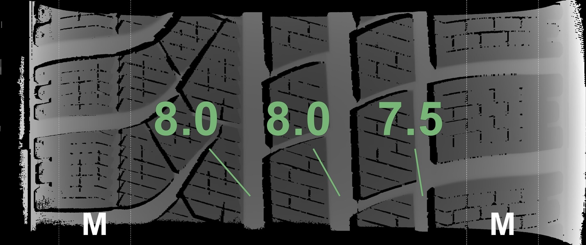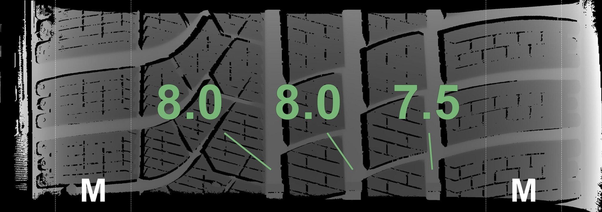 Die gemessenen Profiltiefen und Details zu den Felgen sind oben abgebildet.