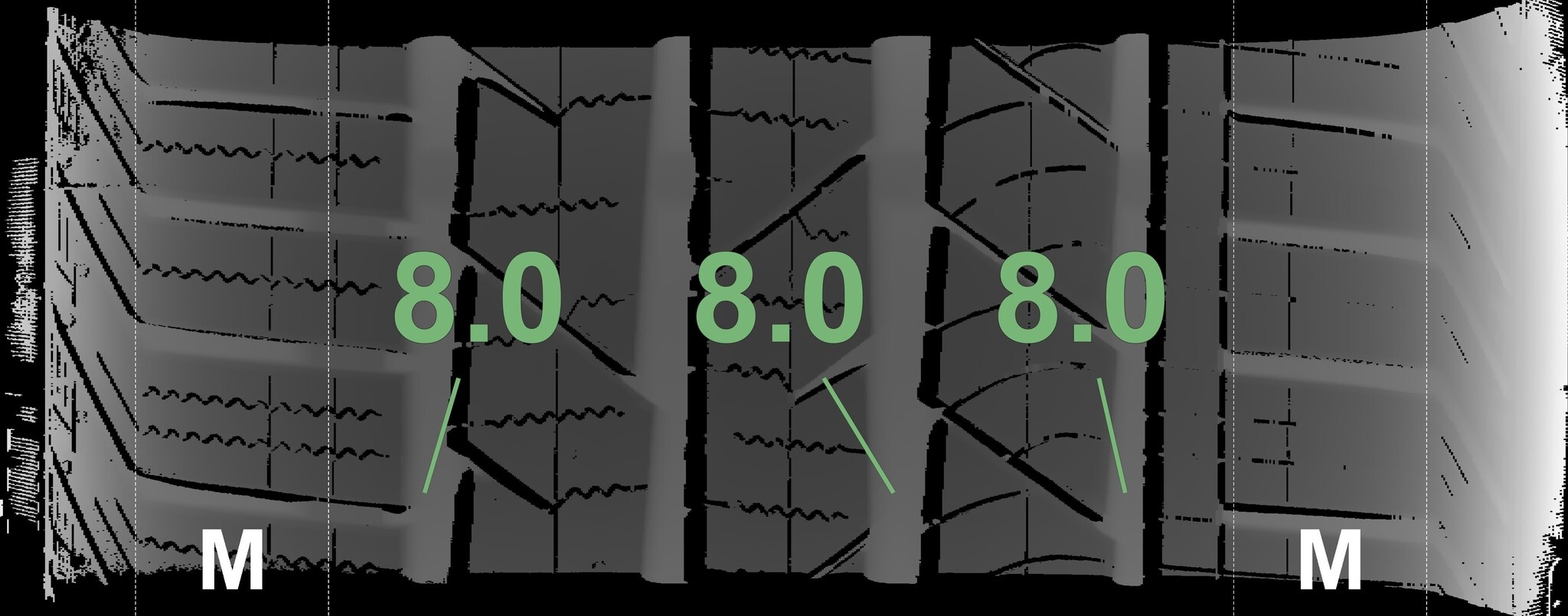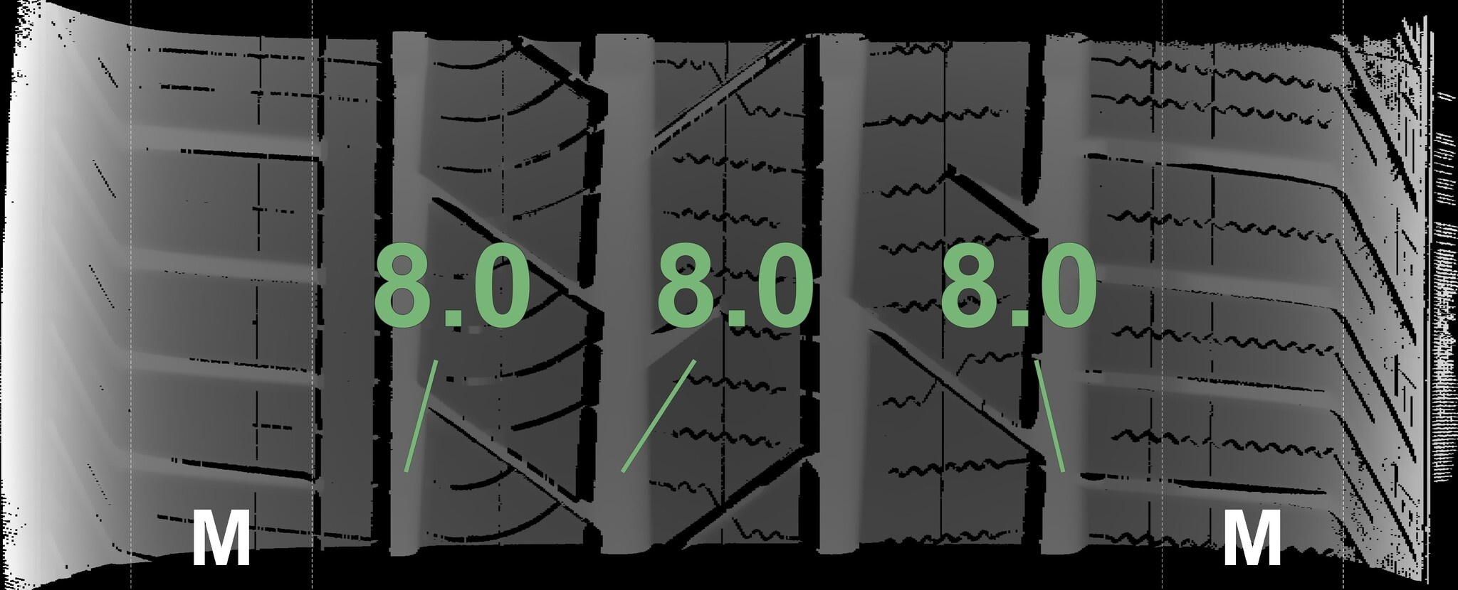 Die gemessenen Profiltiefen und Details zu den Felgen sind oben abgebildet.