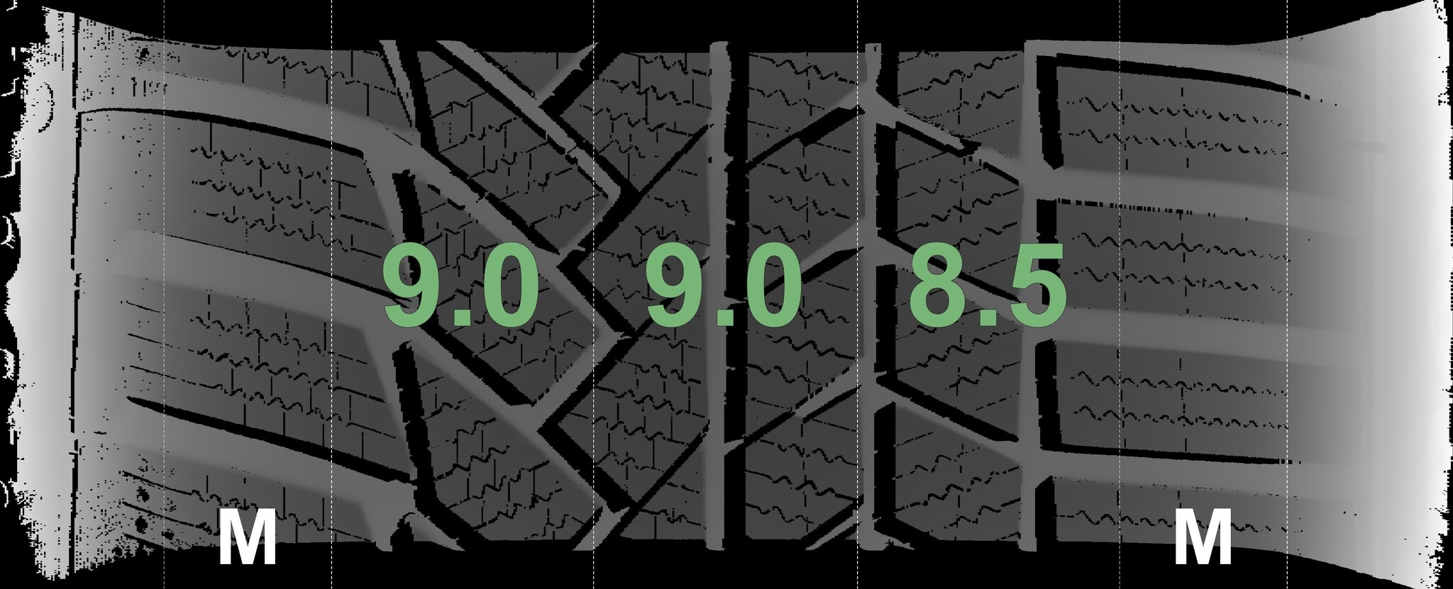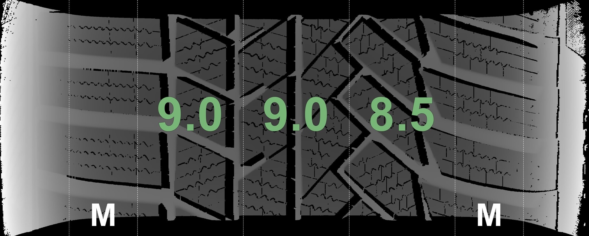 Die gemessenen Profiltiefen und Details zu den Felgen sind oben abgebildet.