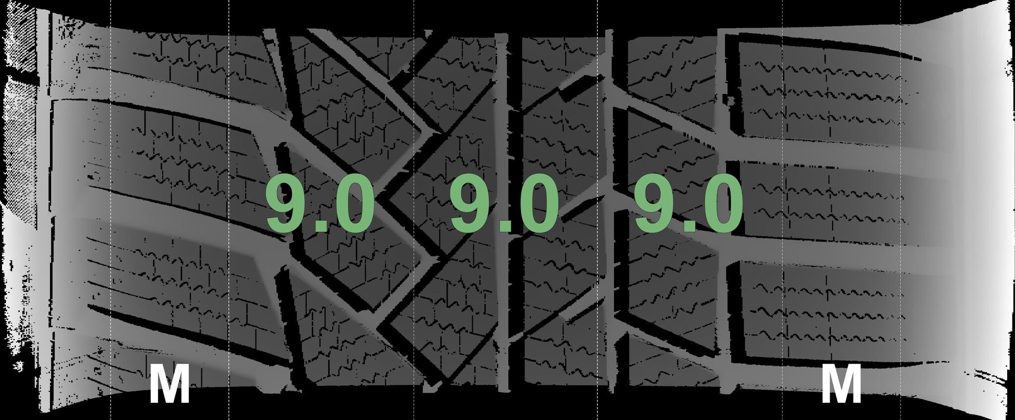 Zustand | Profiltiefe | DOT | Hinterachse Rechts | Neu | 9,0 mm | 4722 |