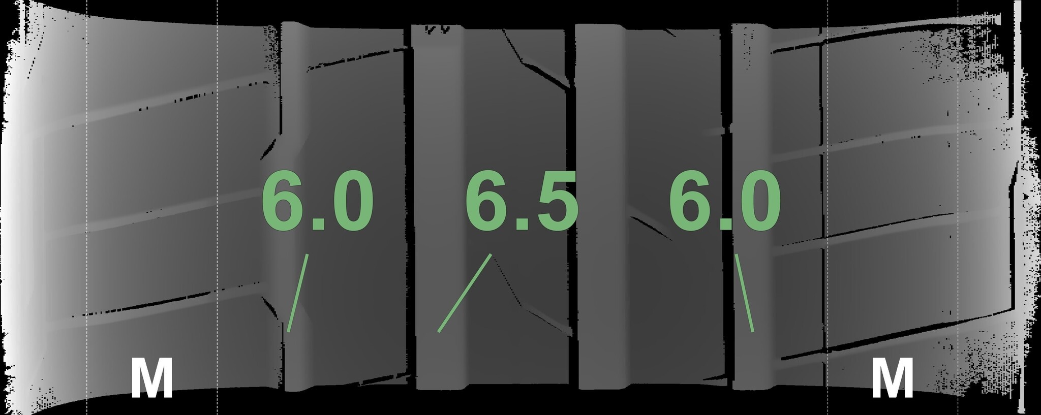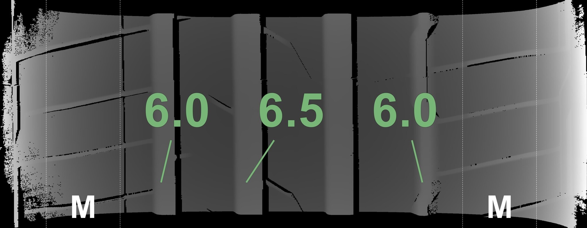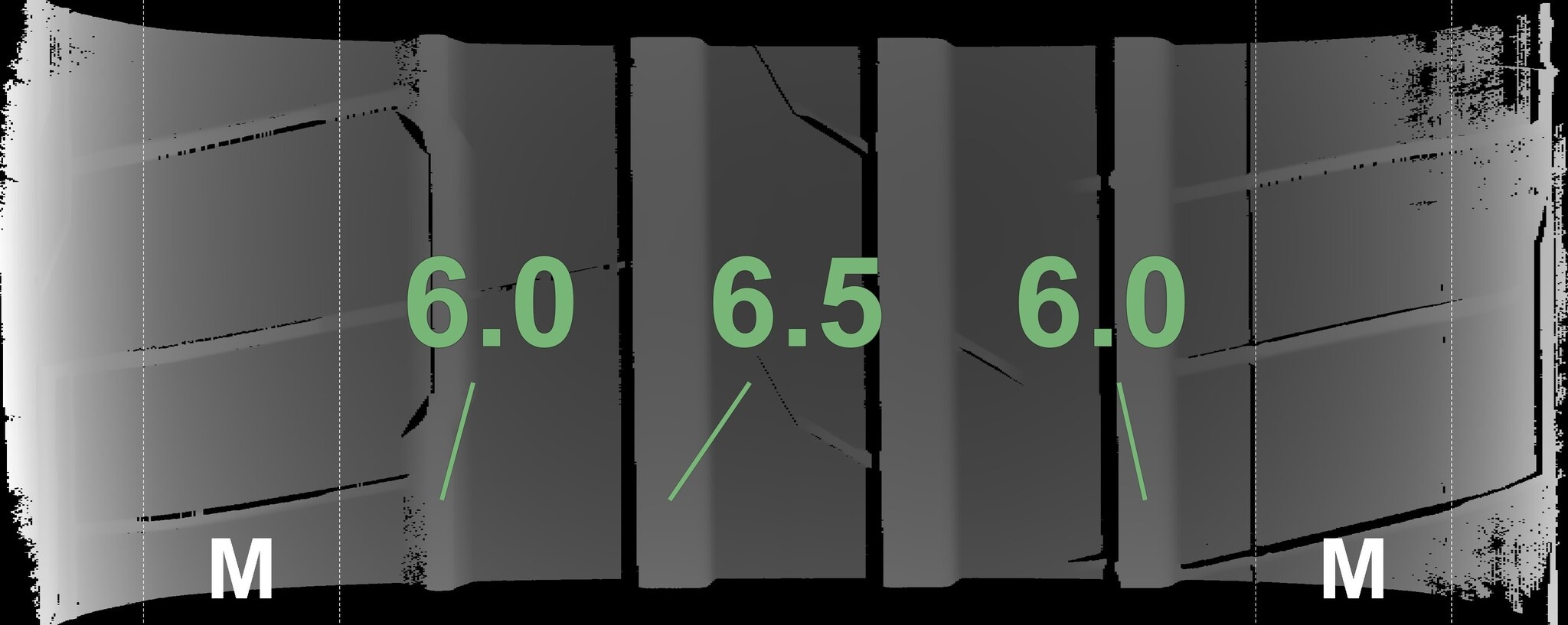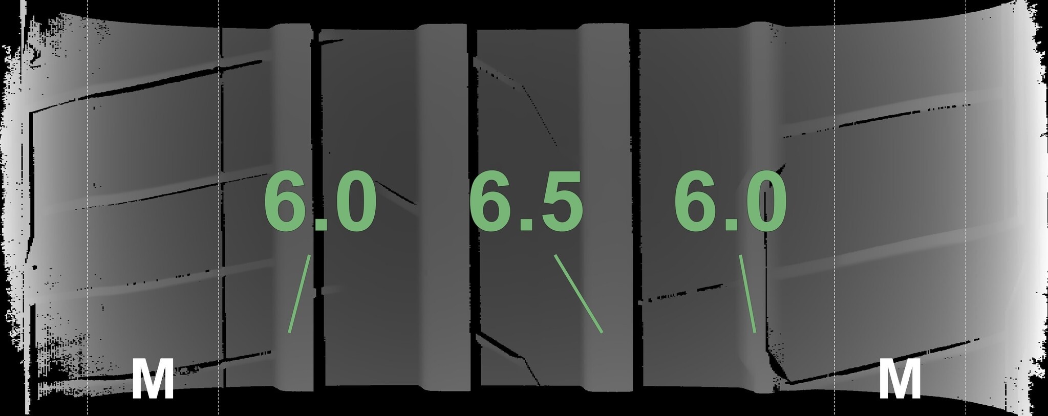 Die gemessenen Profiltiefen und Details der Felgen sind oben dargestellt.