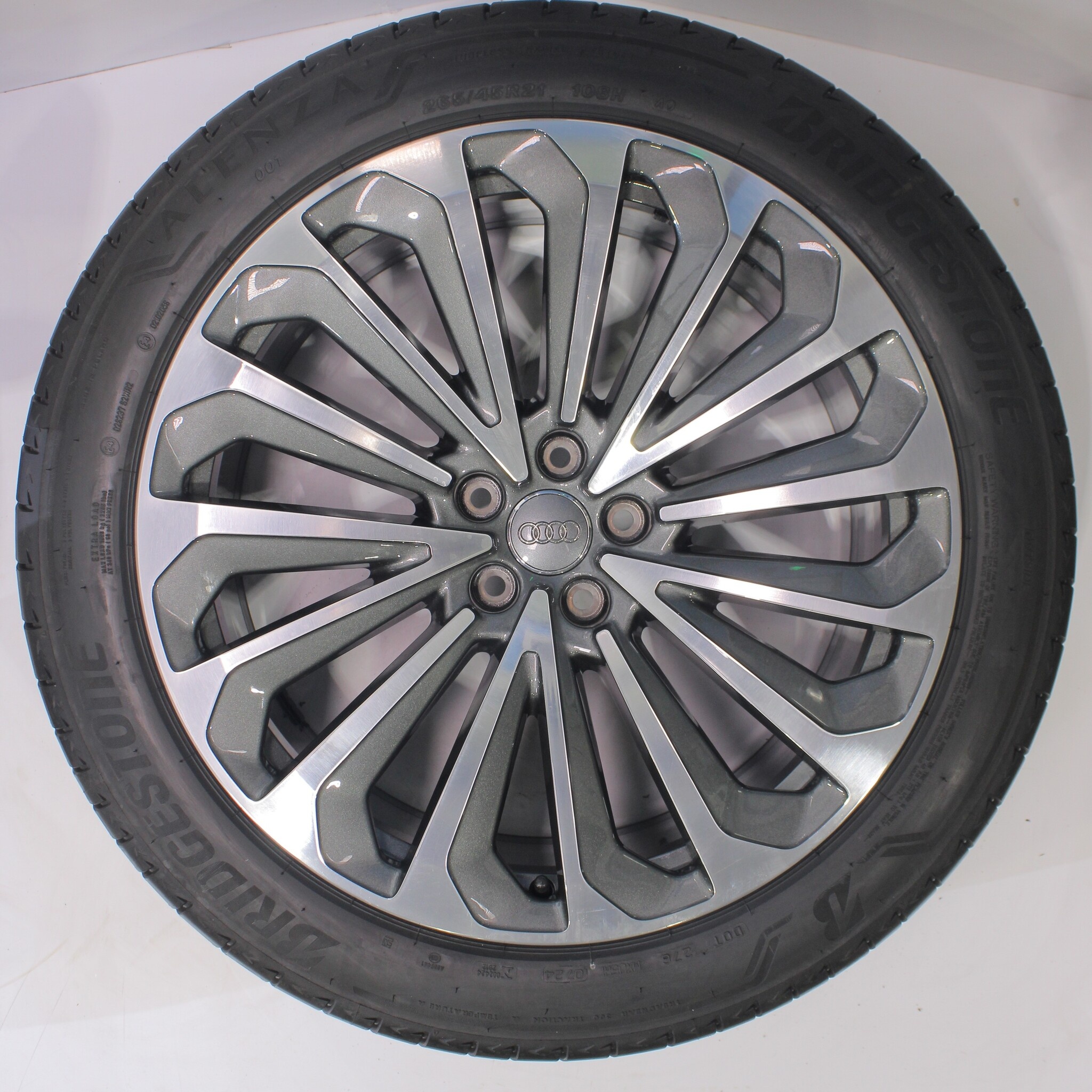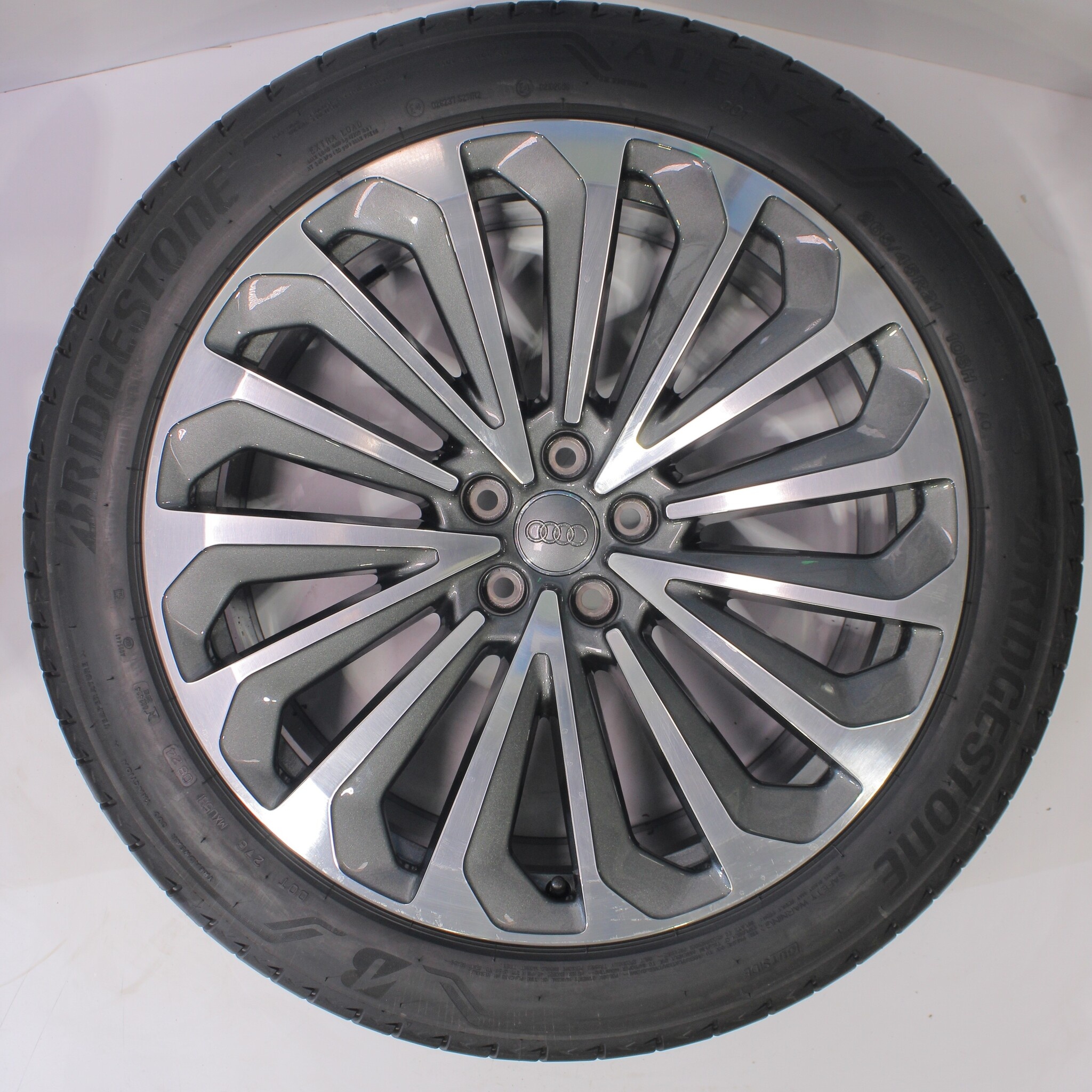 Original Radsatz von Audi, Styling 21-Zoll-Felgen mit Bridgestone Alenza 001 Sommerkompletträdern. Diese Felgen sind Original Felgen der Marke Audi und geeignet für: Audi Etron 4KE.