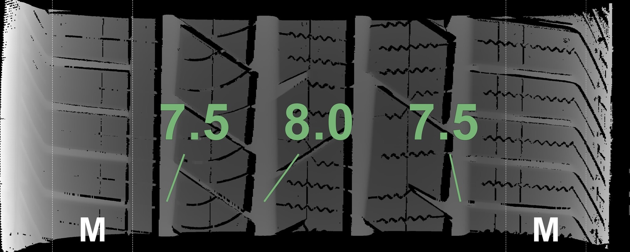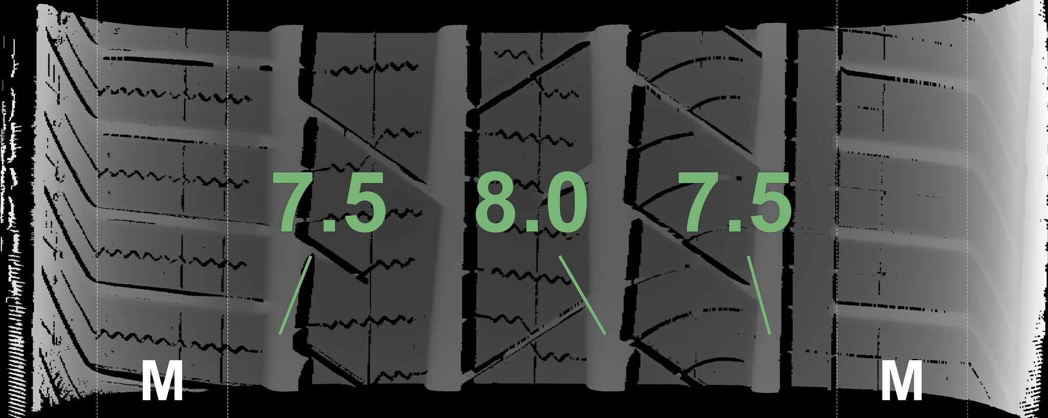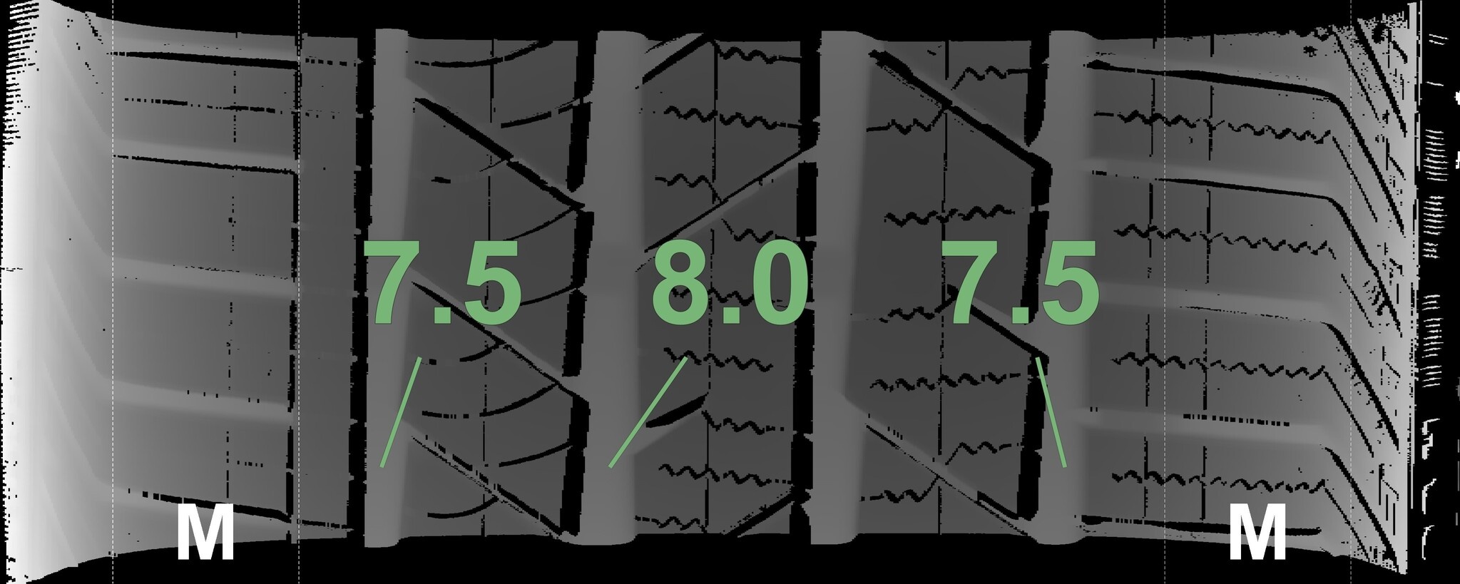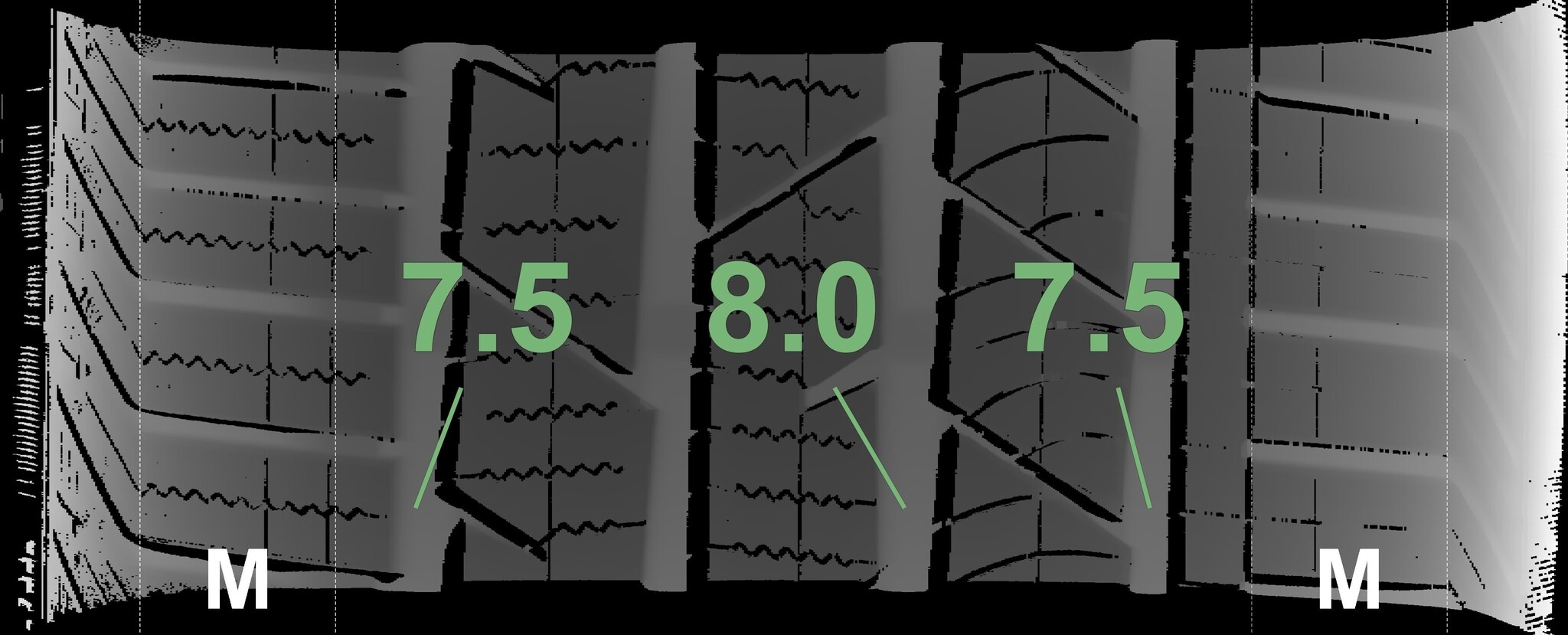 Die gemessenen Profiltiefen und Details der Felgen sind oben abgebildet.