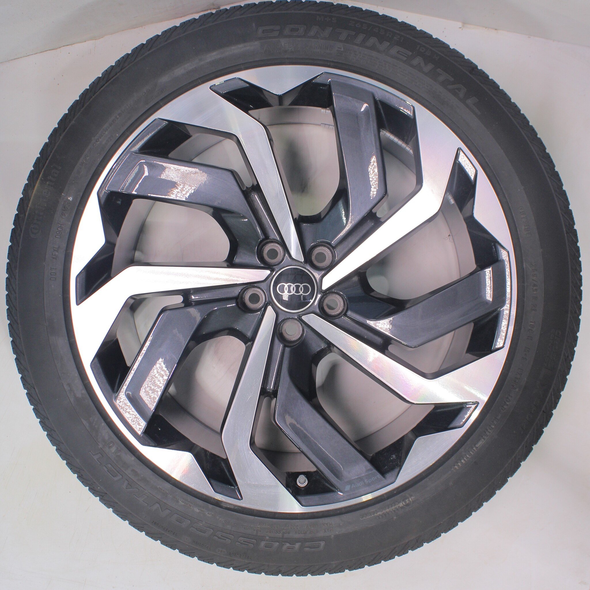 Original Radsatz von Audi, Styling 21-Zoll-Felgen mit Continental Crosscontact Sommerkompletträder. Diese Felgen sind originale Felgen der Marke Audi und passend für: Audi Etron 4KE.