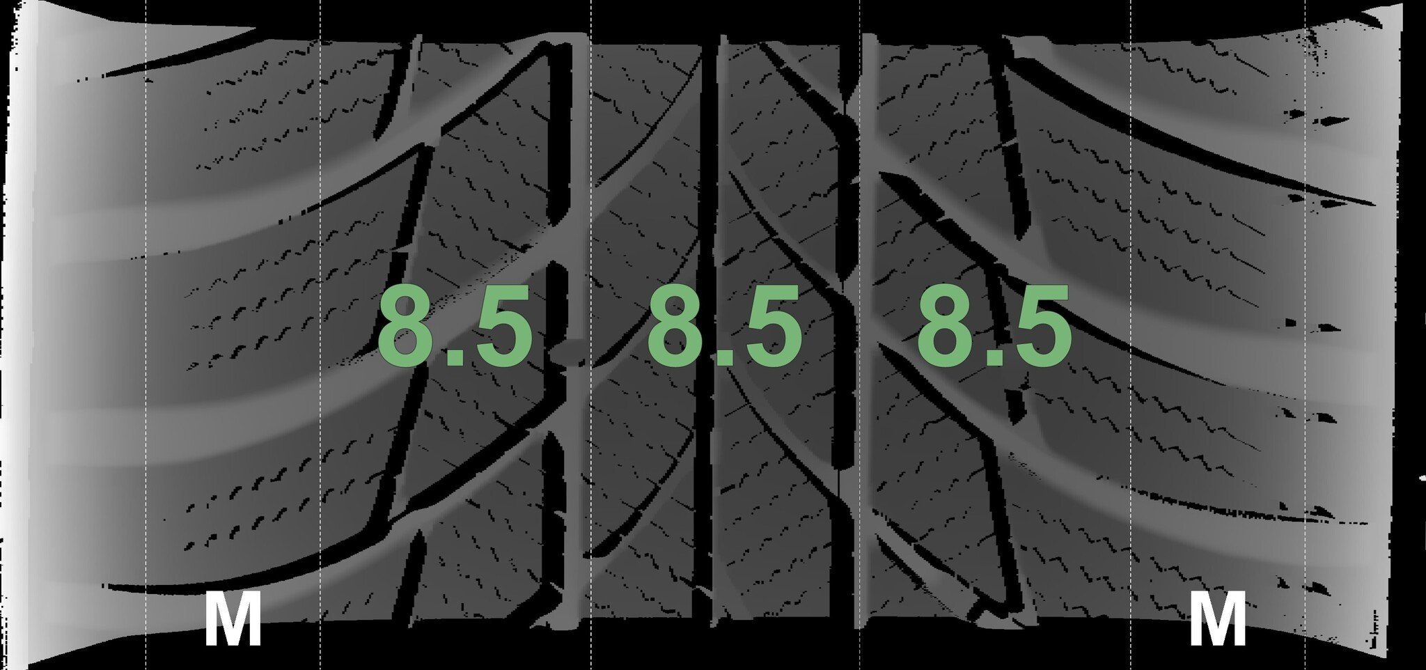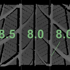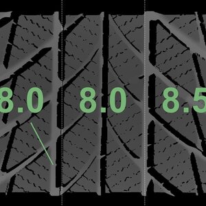 | Zustand | Profiltiefe | DOT | Vorderachse Rechts | Demo-Noppen noch sichtbar | 8.3 mm | 1424 |