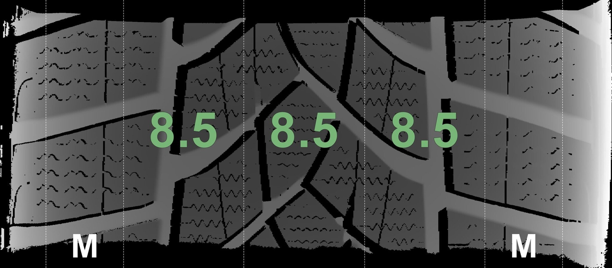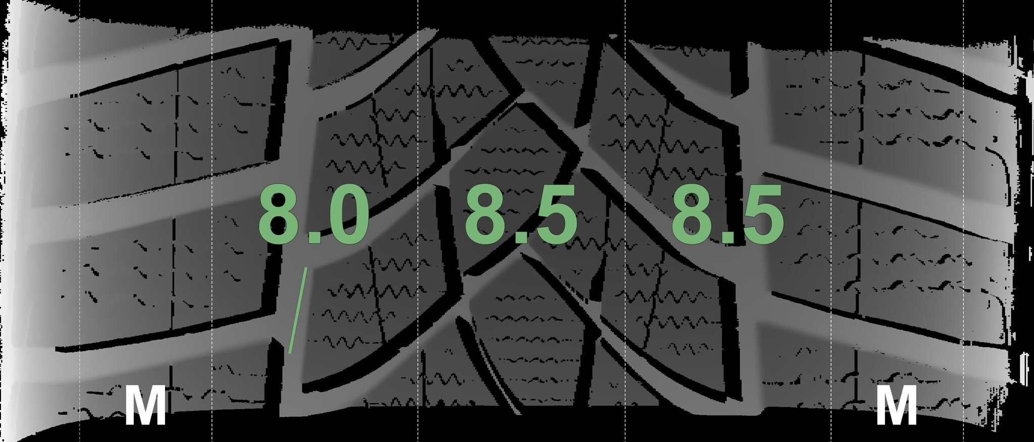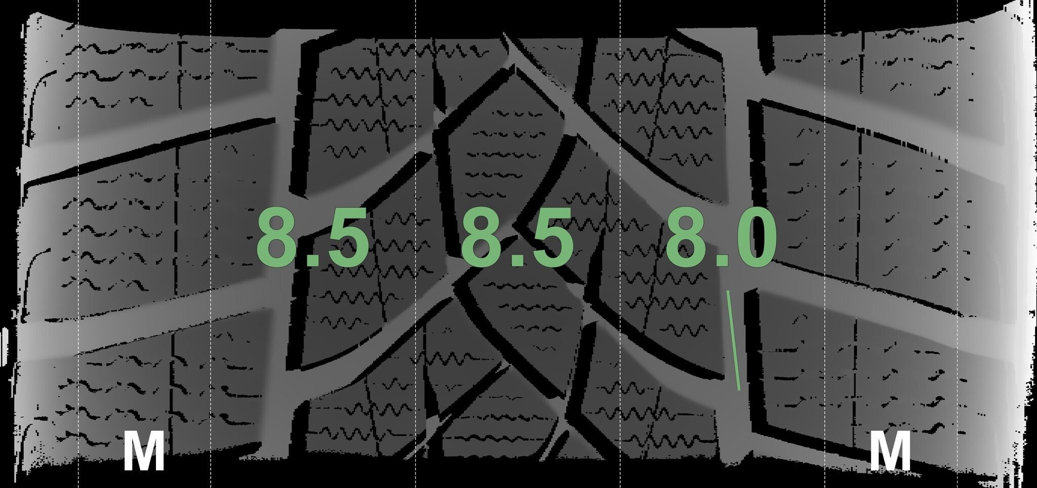 | Zustand | Profiltiefe | DOT | Vorderachse Links | Gebraucht | 8.3 mm | 2820 |