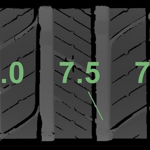| Zustand | Profiltiefe | DOT | Vorderachse Rechts | Neu | 7,5 mm | 2423 |