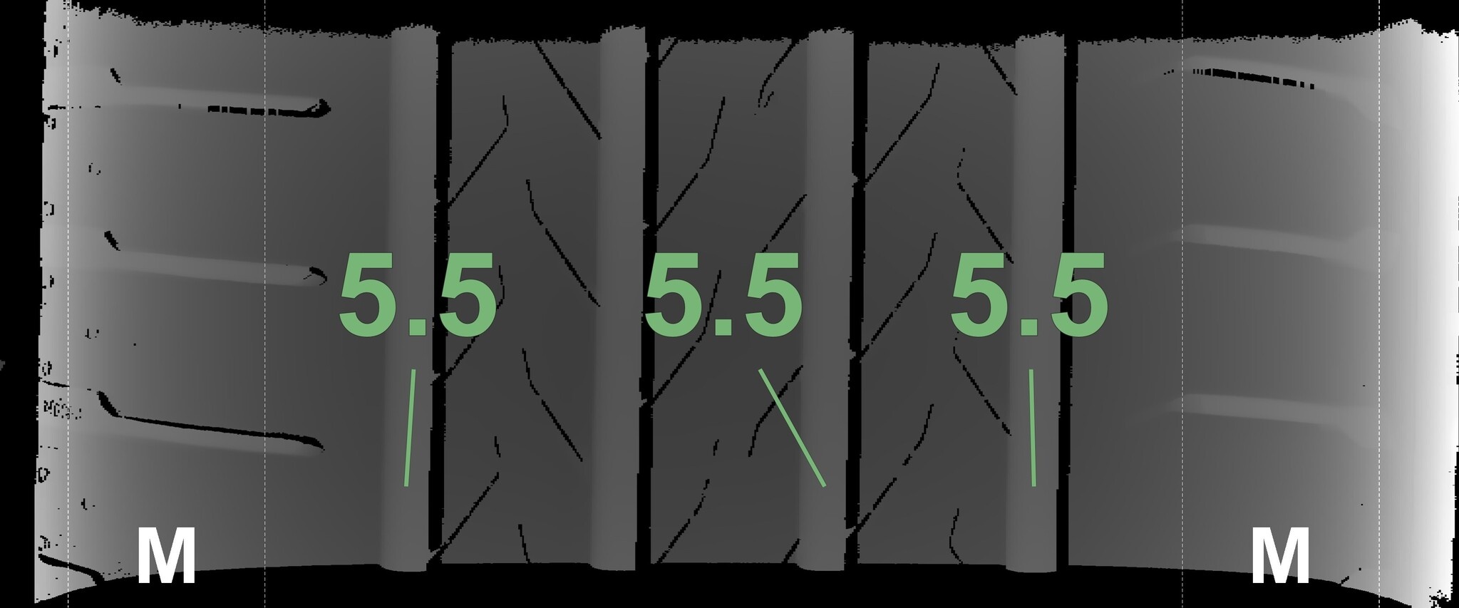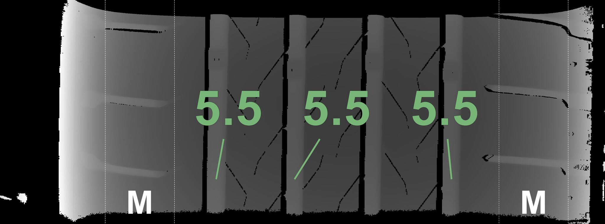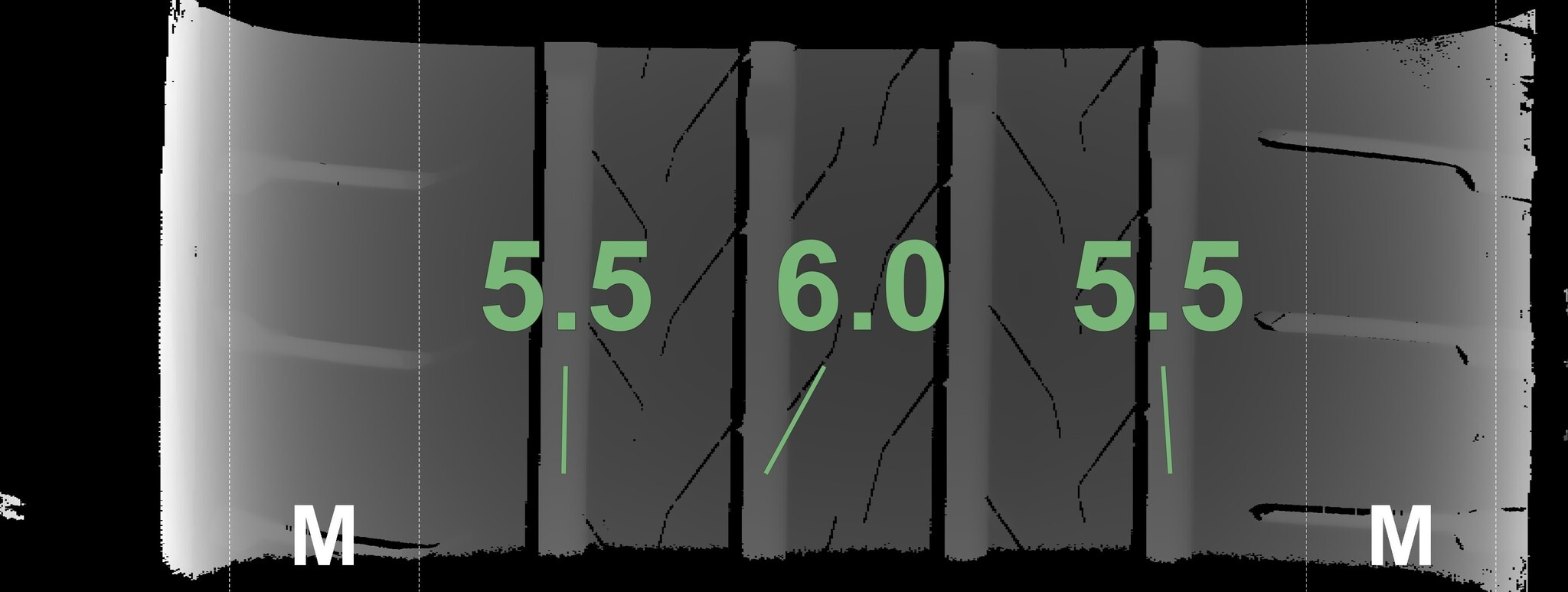 | Zustand | Profiltiefe | DOT | Hinterachse Rechts | Gebraucht | 5.5 mm | 1025 |
