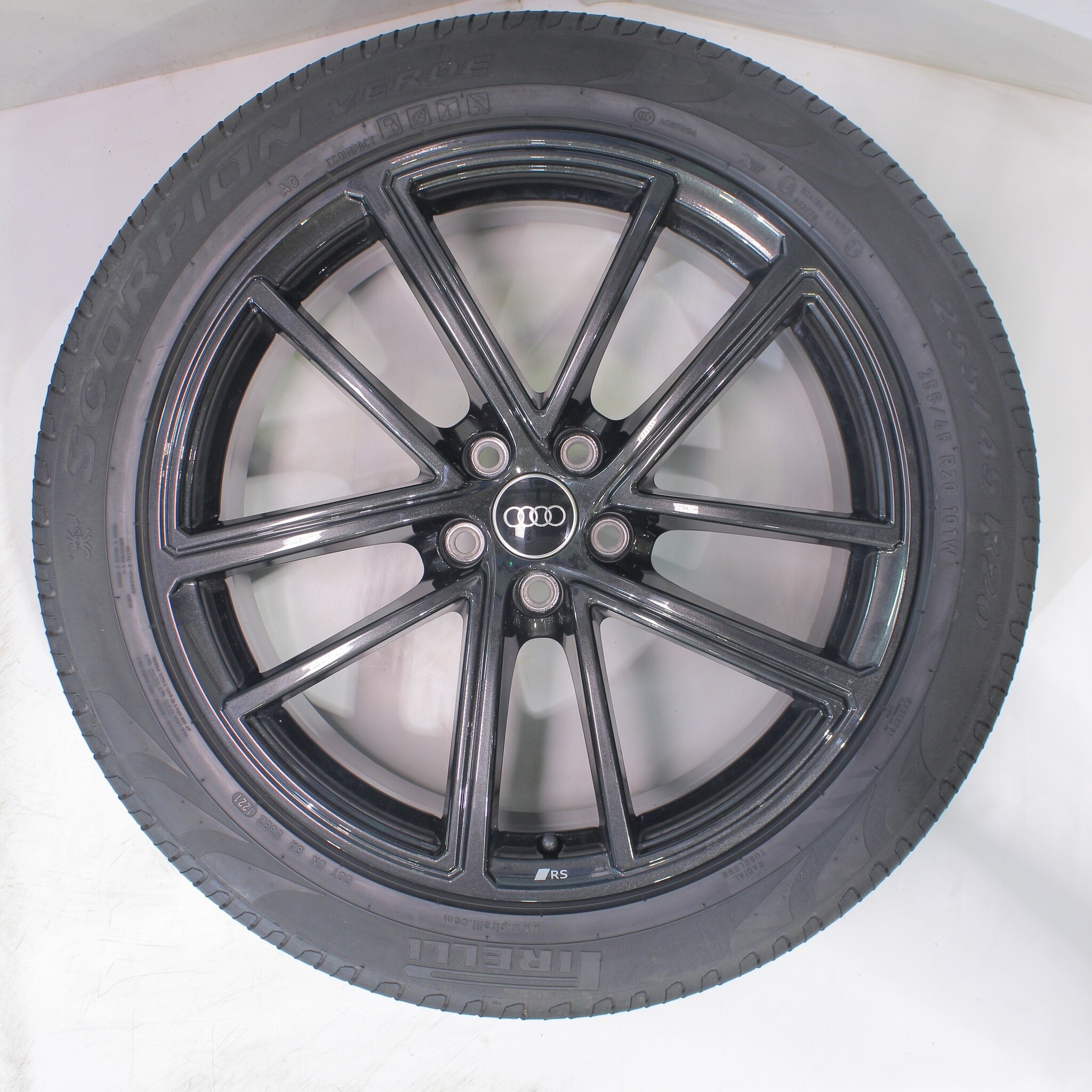 Originale Radsatz von Audi, styling S-line, 20 Zoll Felgen mit Pirelli Scorpionverde Sommerkompletträder. Diese Felgen sind Originale Felgen der Marke Audi und geeignet für: Audi Q5 8MA.