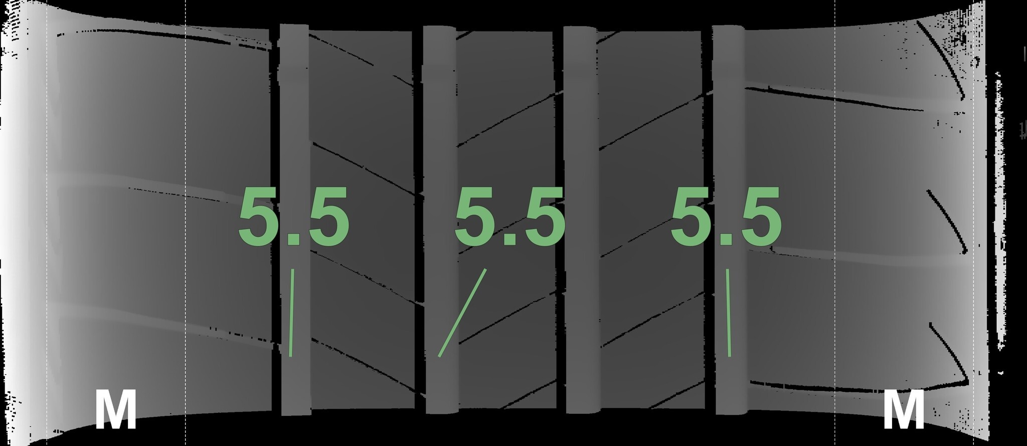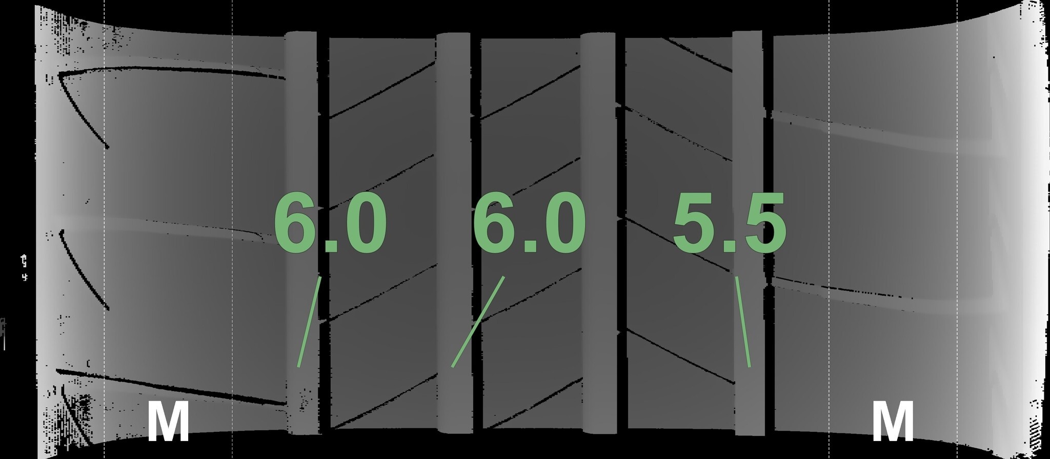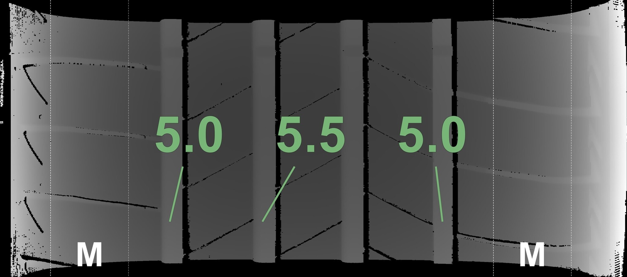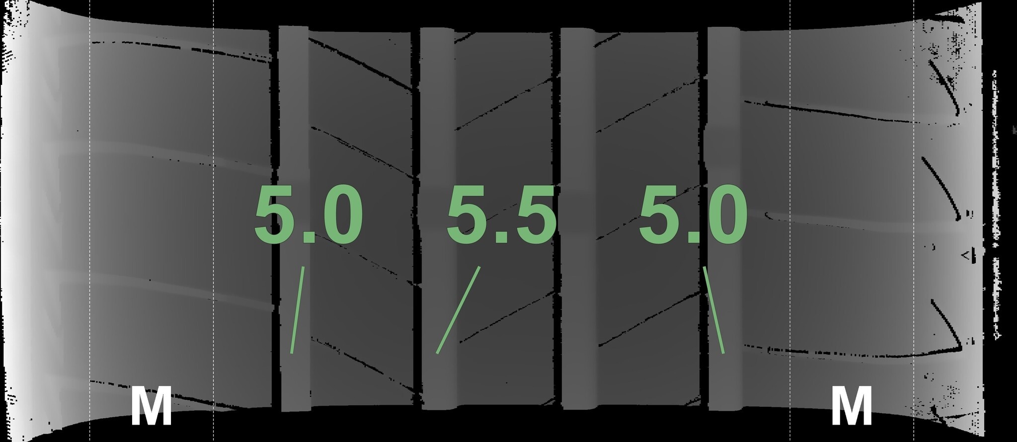 Die gemessenen Profiltiefen und Details zu den Felgen sind oben dargestellt.