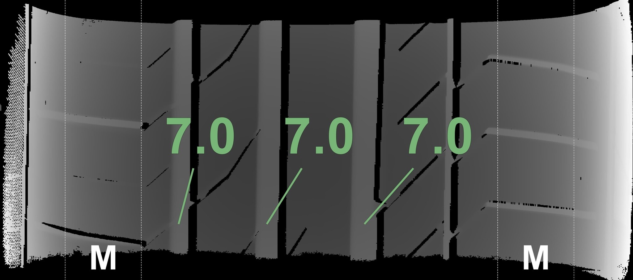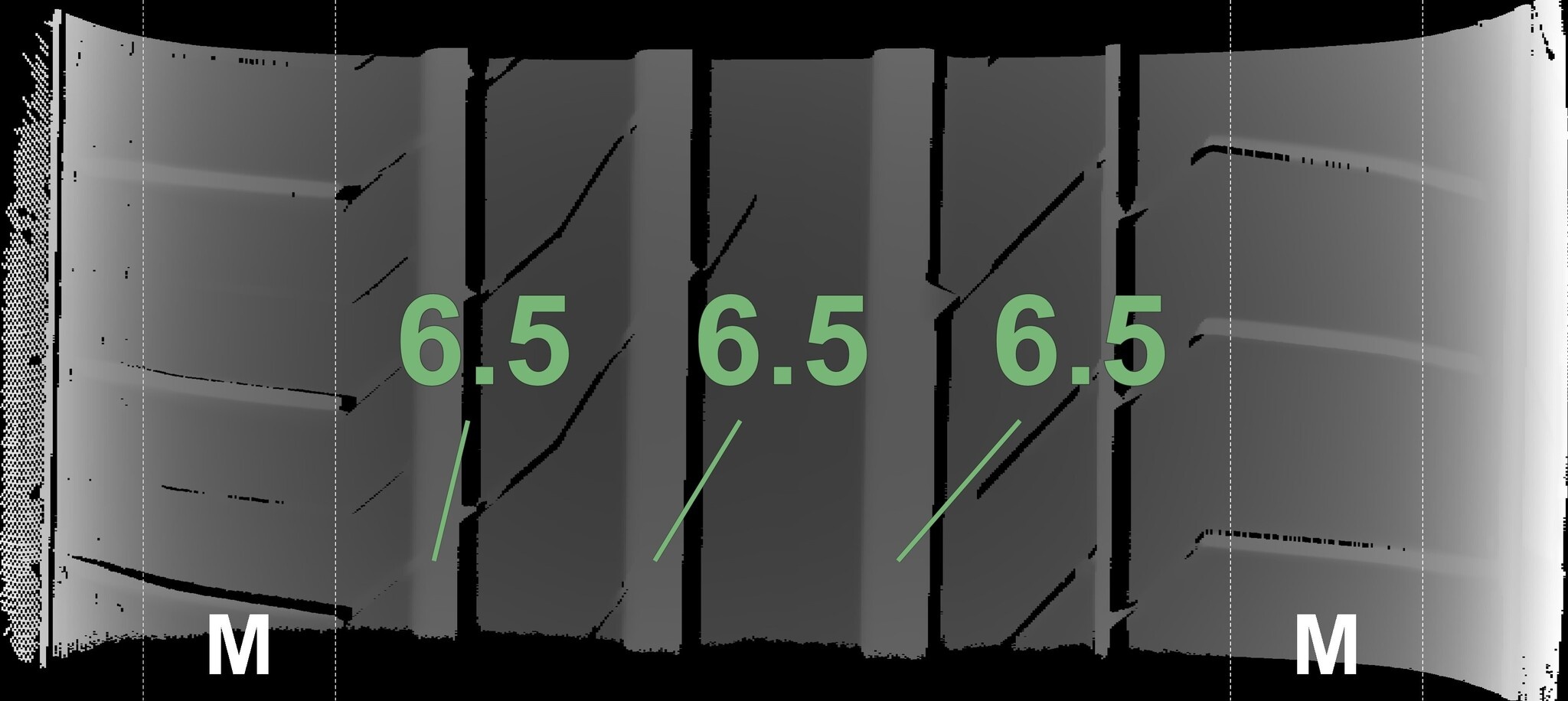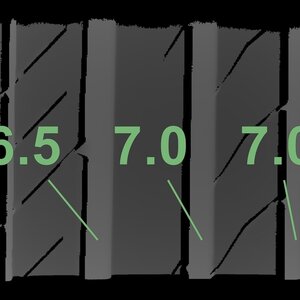 Die gemessenen Profiltiefen und die Details der Felgen sind oben aufgeführt.