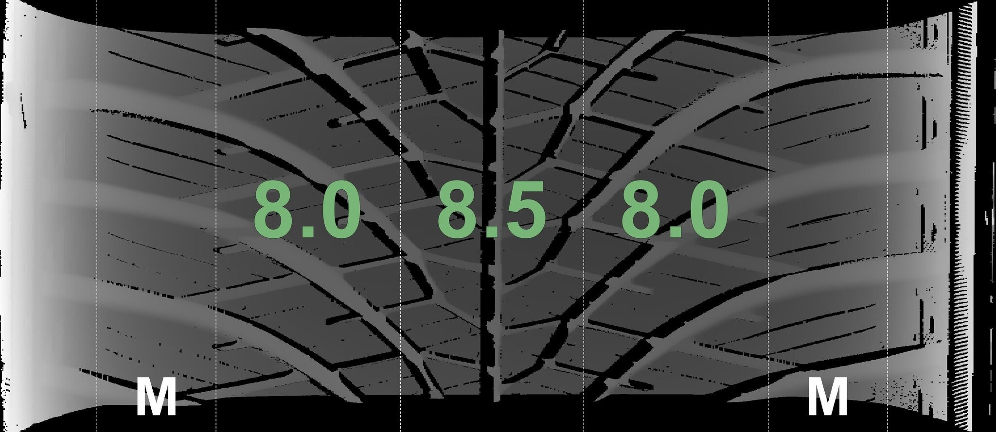 Die gemessenen Profiltiefen und Details zu den Felgen sind oben abgebildet.