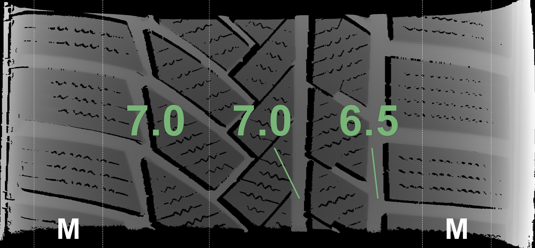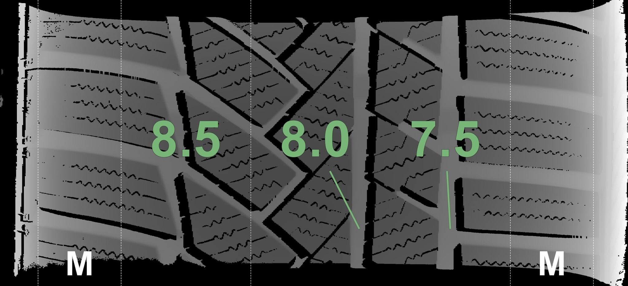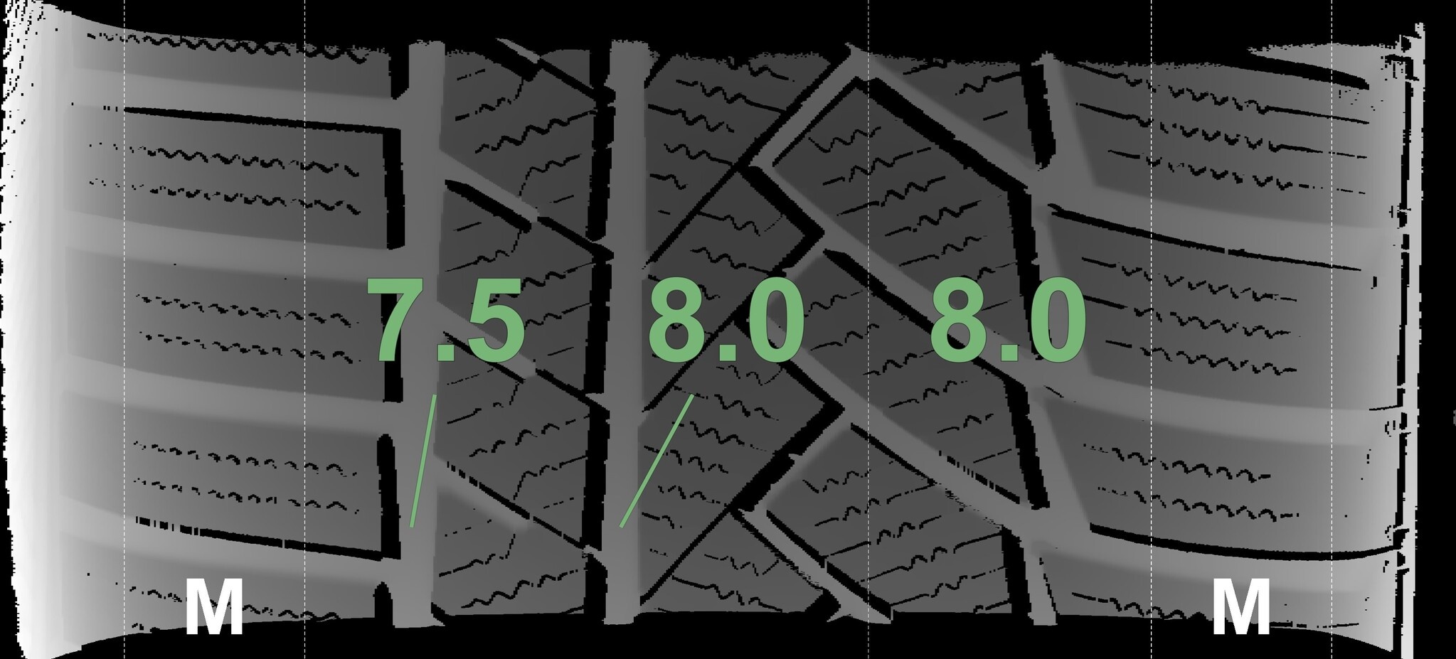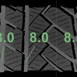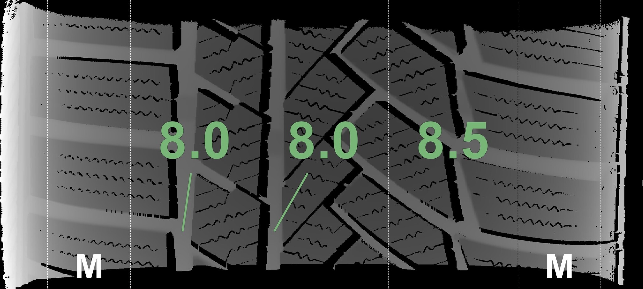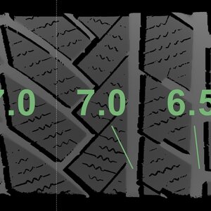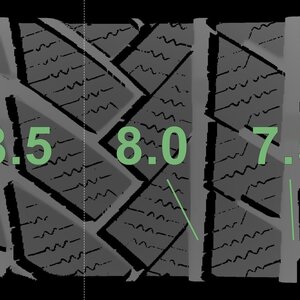 Die gemessenen Profiltiefen und die Details der Felgen sind oben aufgeführt.