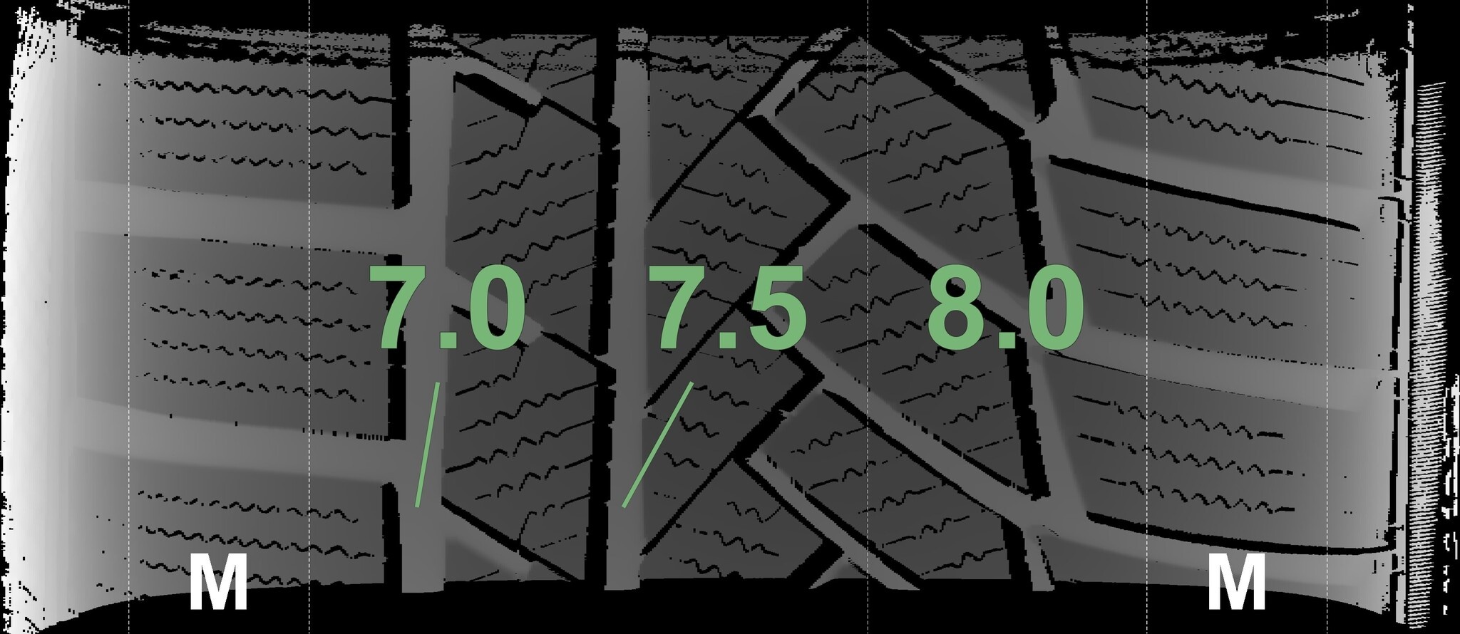 Die gemessenen Profiltiefen und die Details der Felgen sind oben aufgeführt.