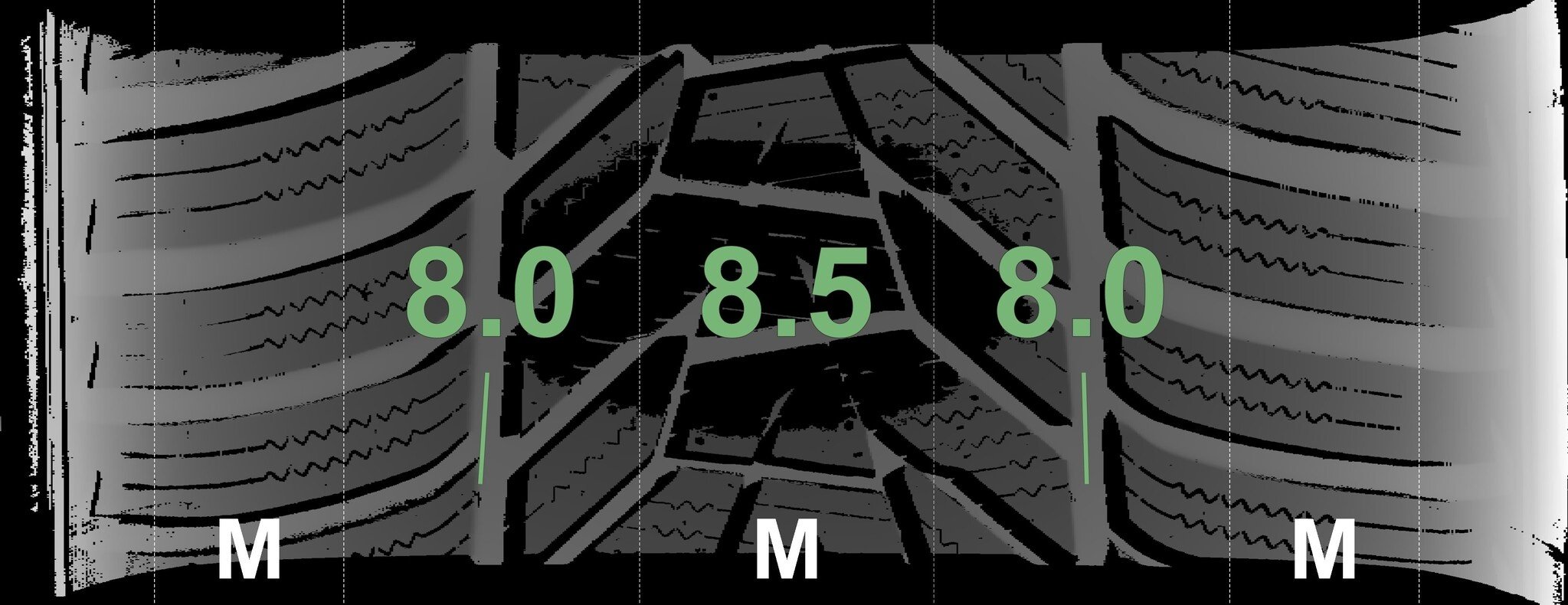 Die gemessenen Profiltiefen und Details zu den Felgen sind oben abgebildet.