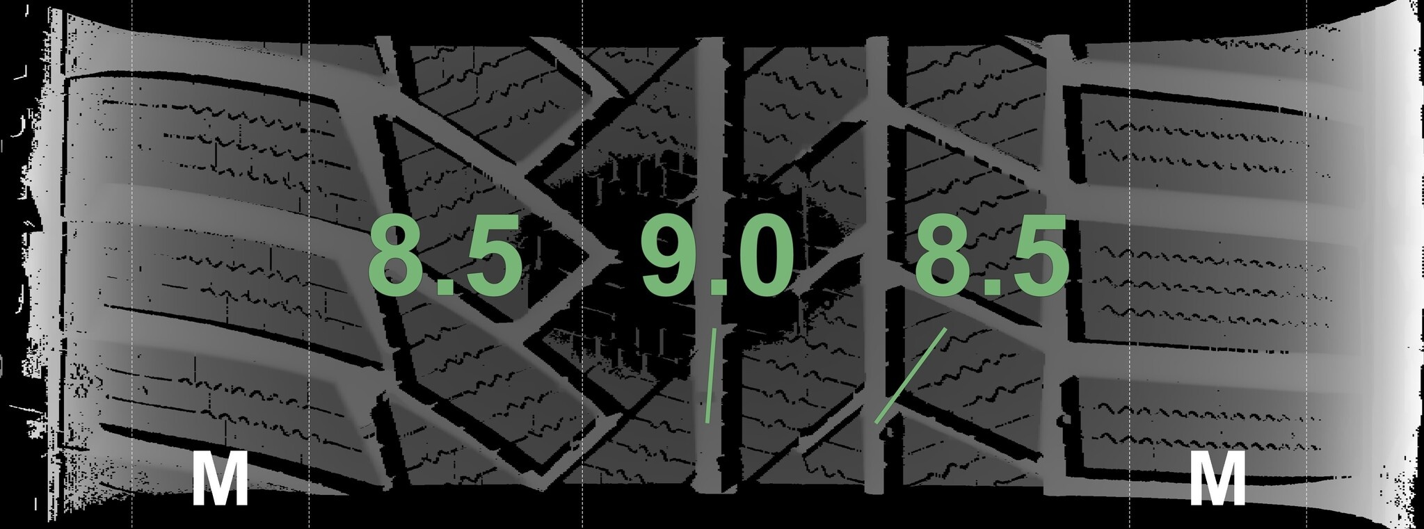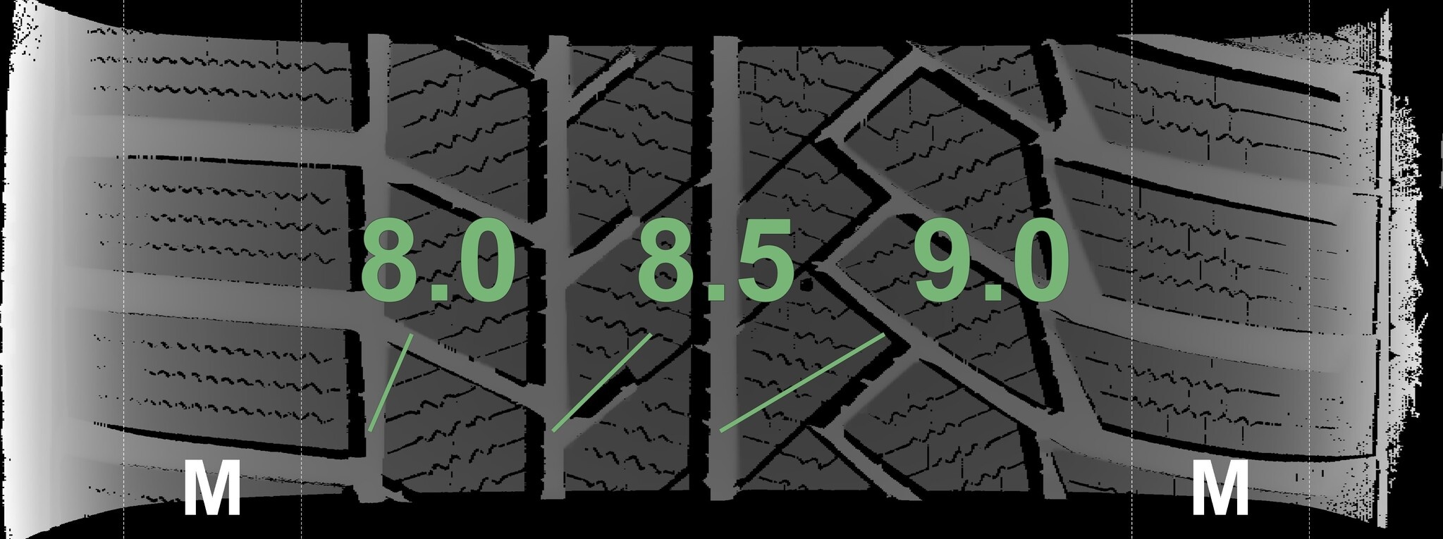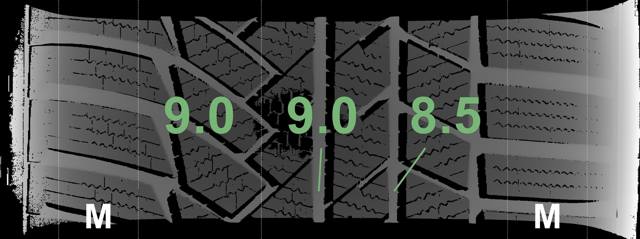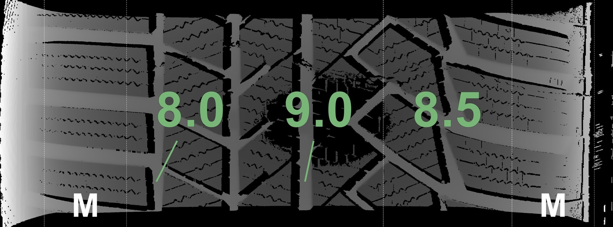 Die gemessenen Profiltiefen und Details zu den Felgen sind oben abgebildet.