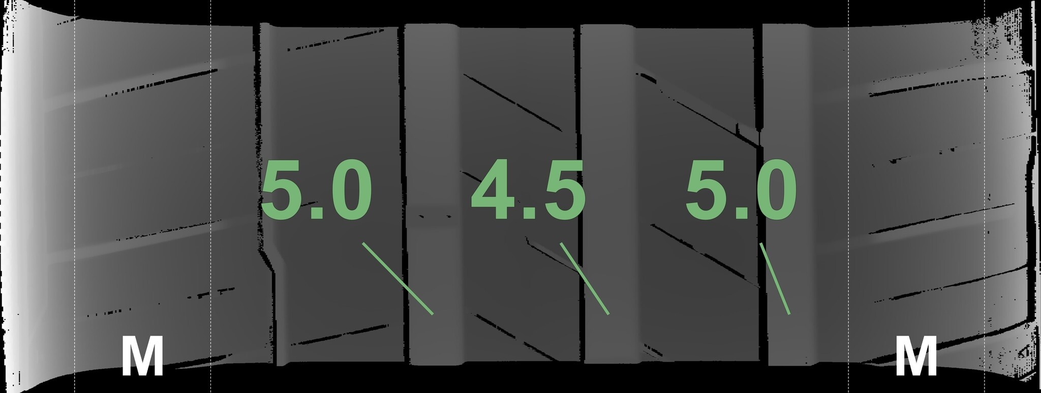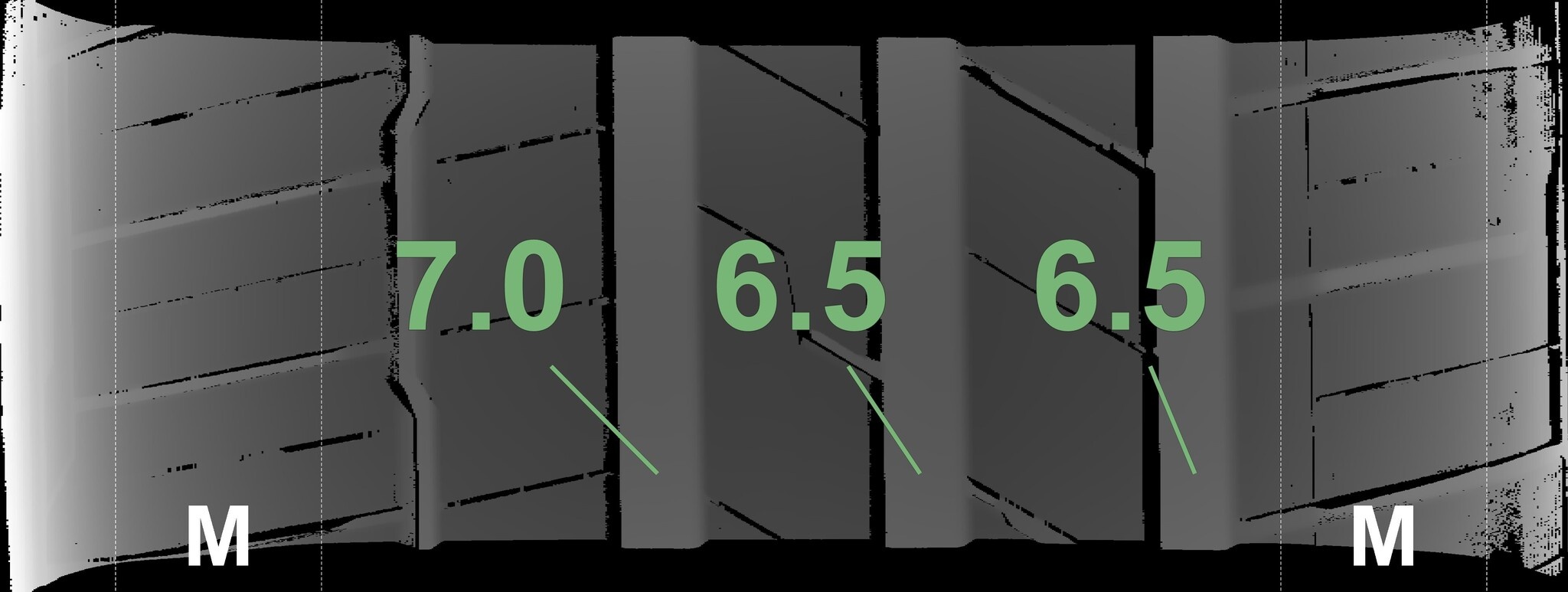 Die gemessenen Profiltiefen und Details zu den Felgen sind oben abgebildet.