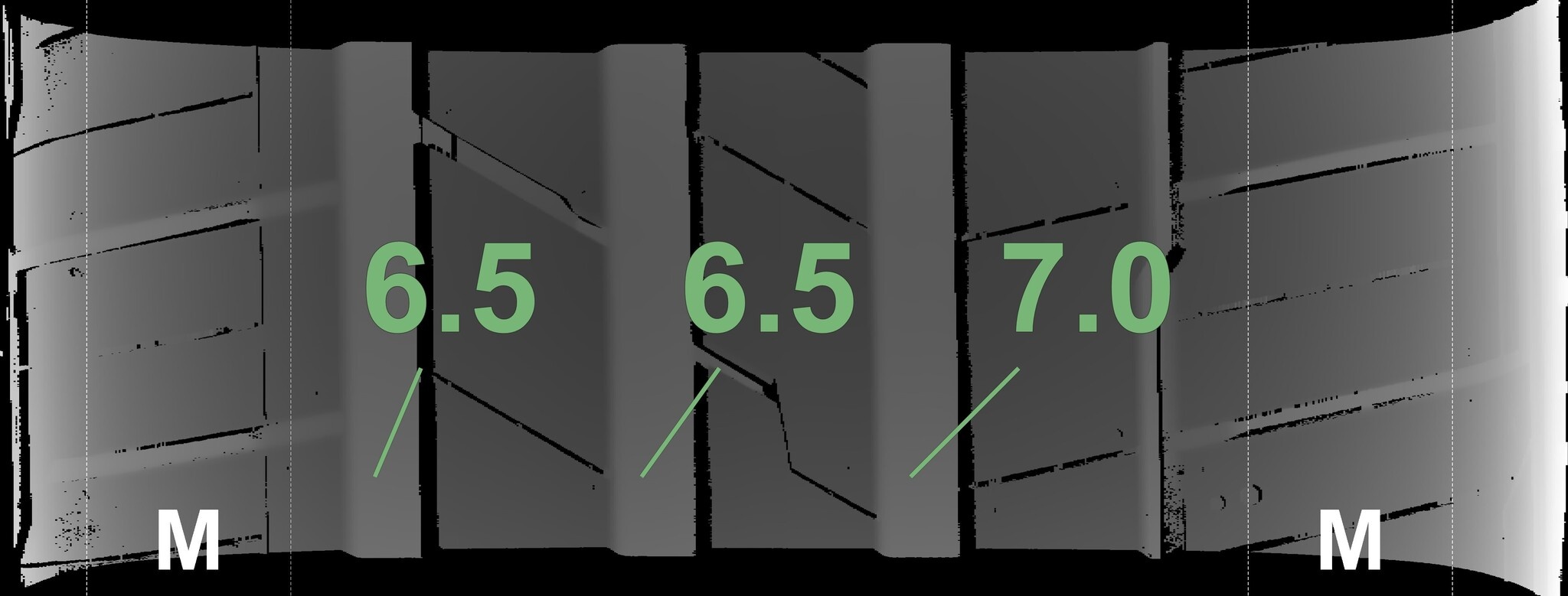Zustand | Profiltiefe | DOT | Vorderachse Links | Neu | 6,5 mm | 4624 |
