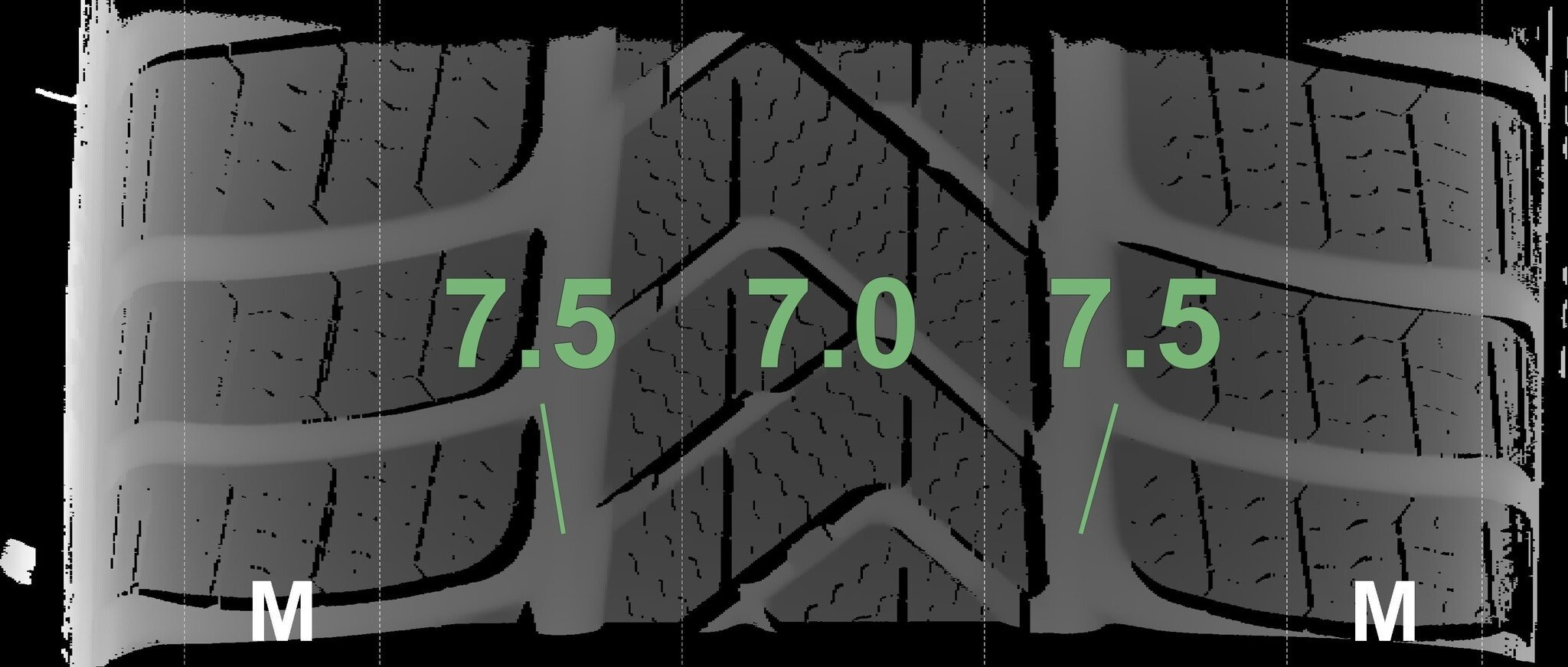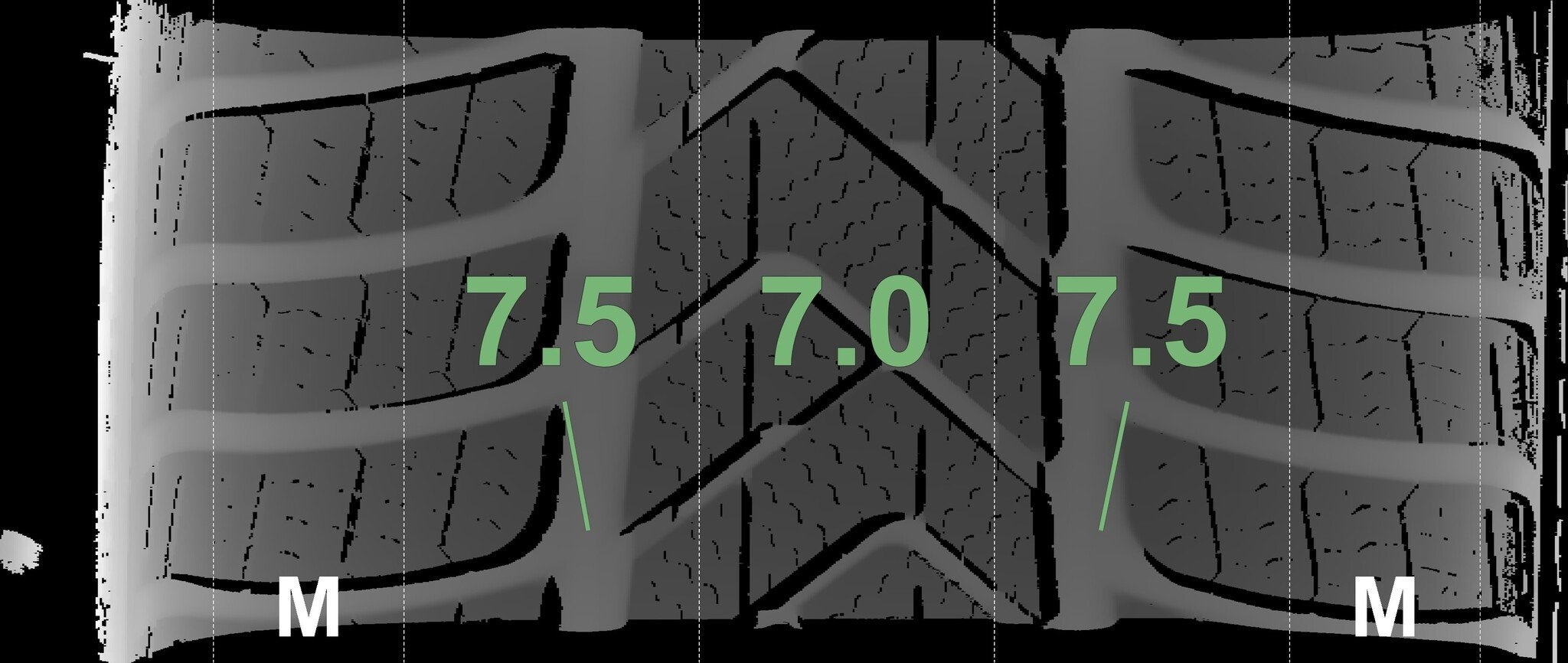 | Zustand | Profiltiefe | DOT | Vorderachse Links | Neu | 7.3 mm | 4721 |