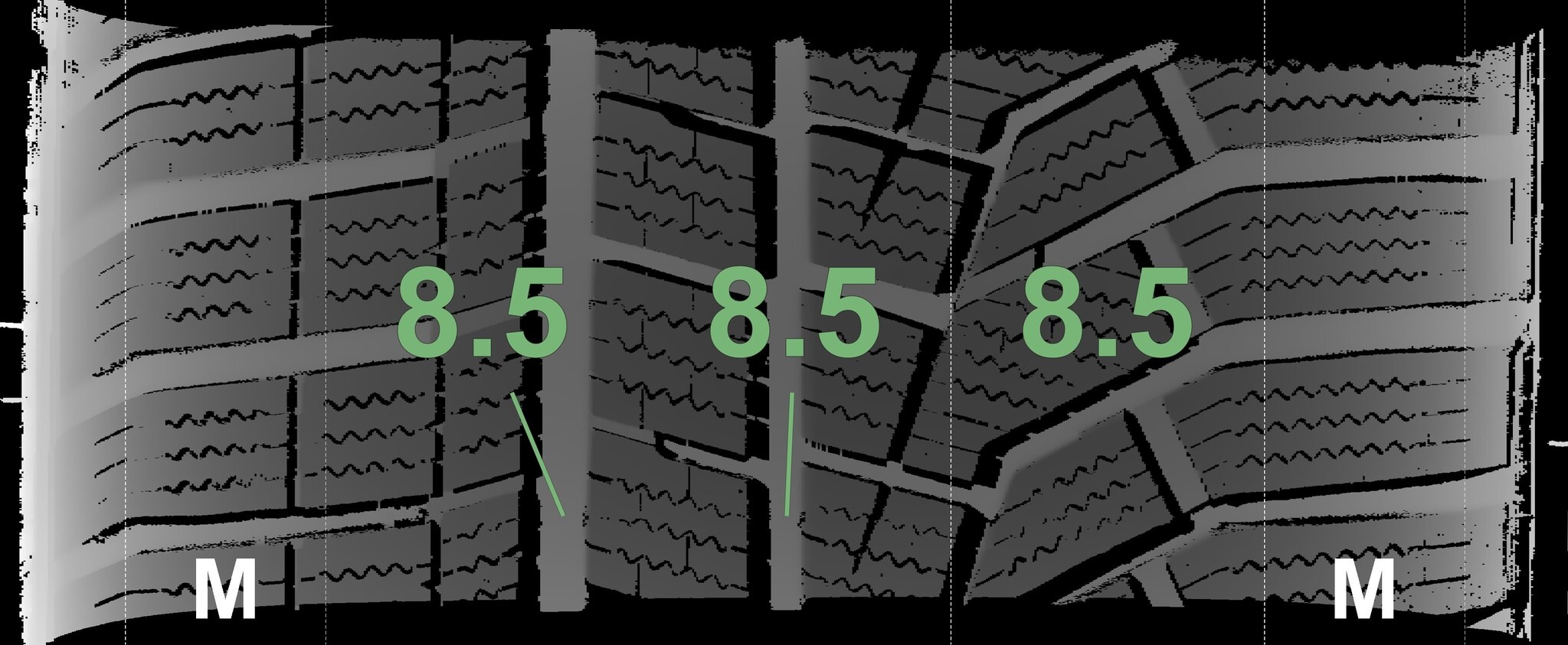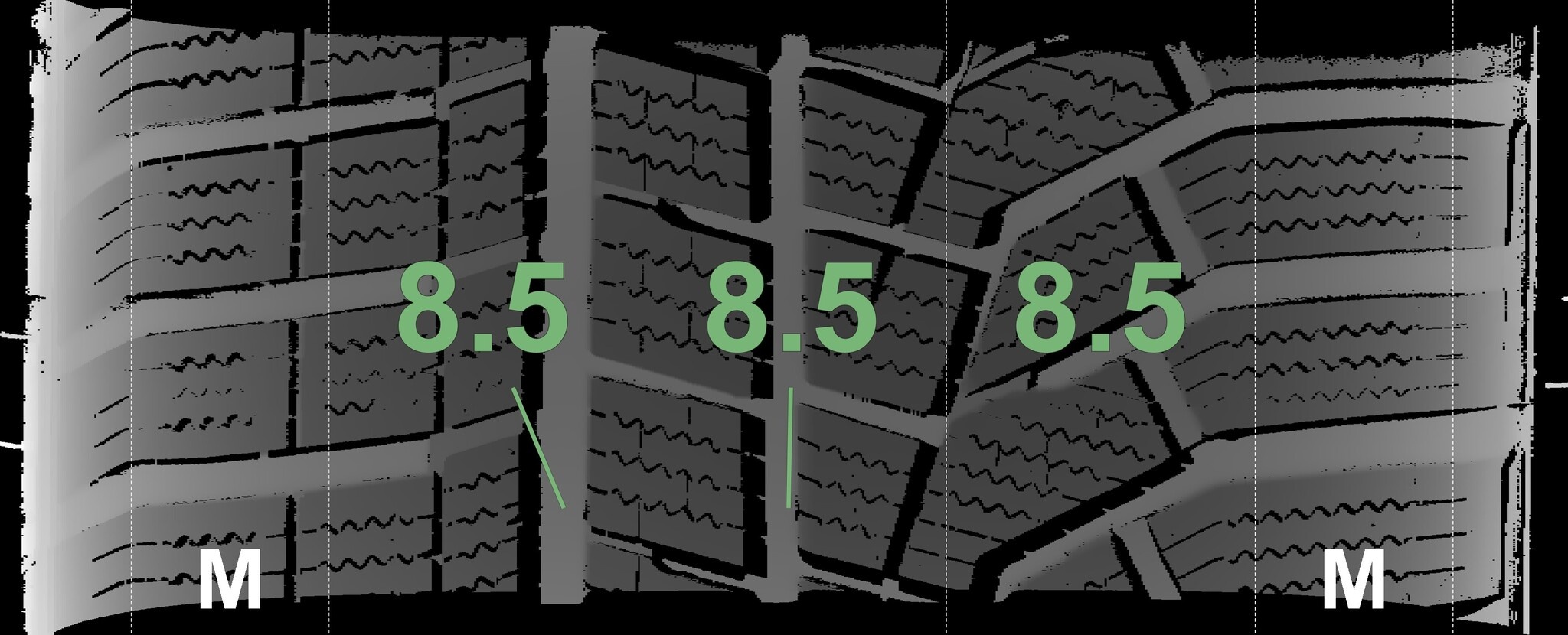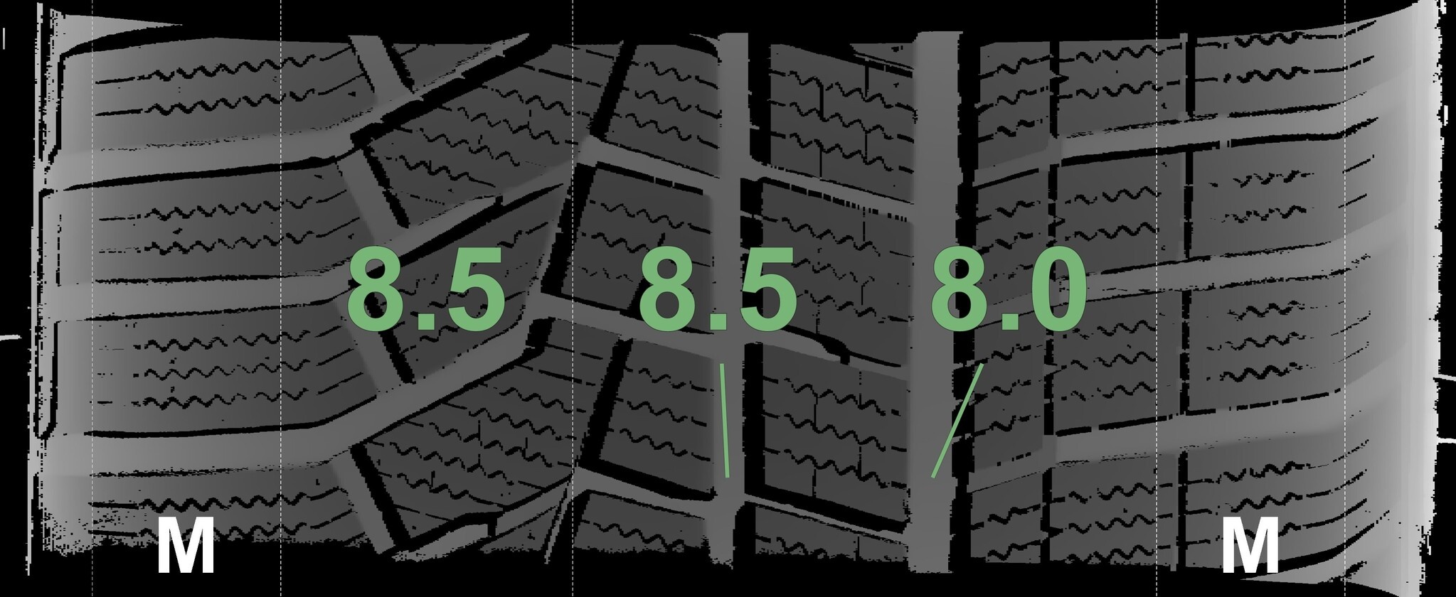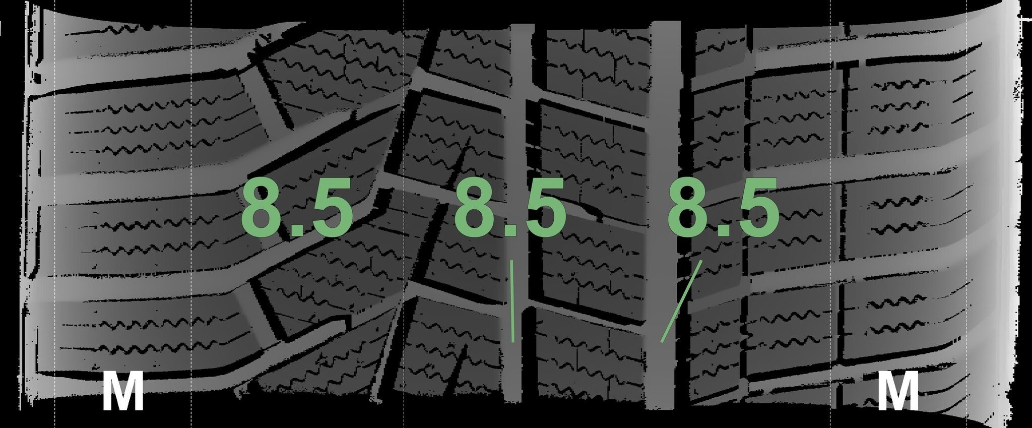 | Zustand | Profiltiefe | DOT | Vorderachse Links | Neu | 8,5 mm | 2825 |