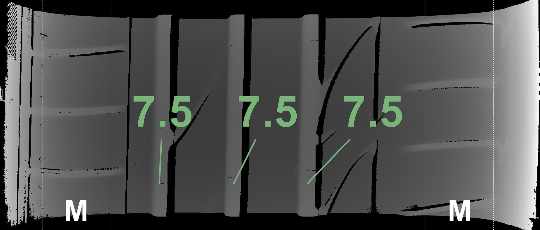 | Zustand | Profiltiefe | DOT | Vorderachse Rechts | Gebraucht | 7.5 mm | 0219 |