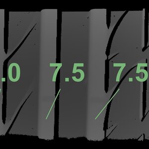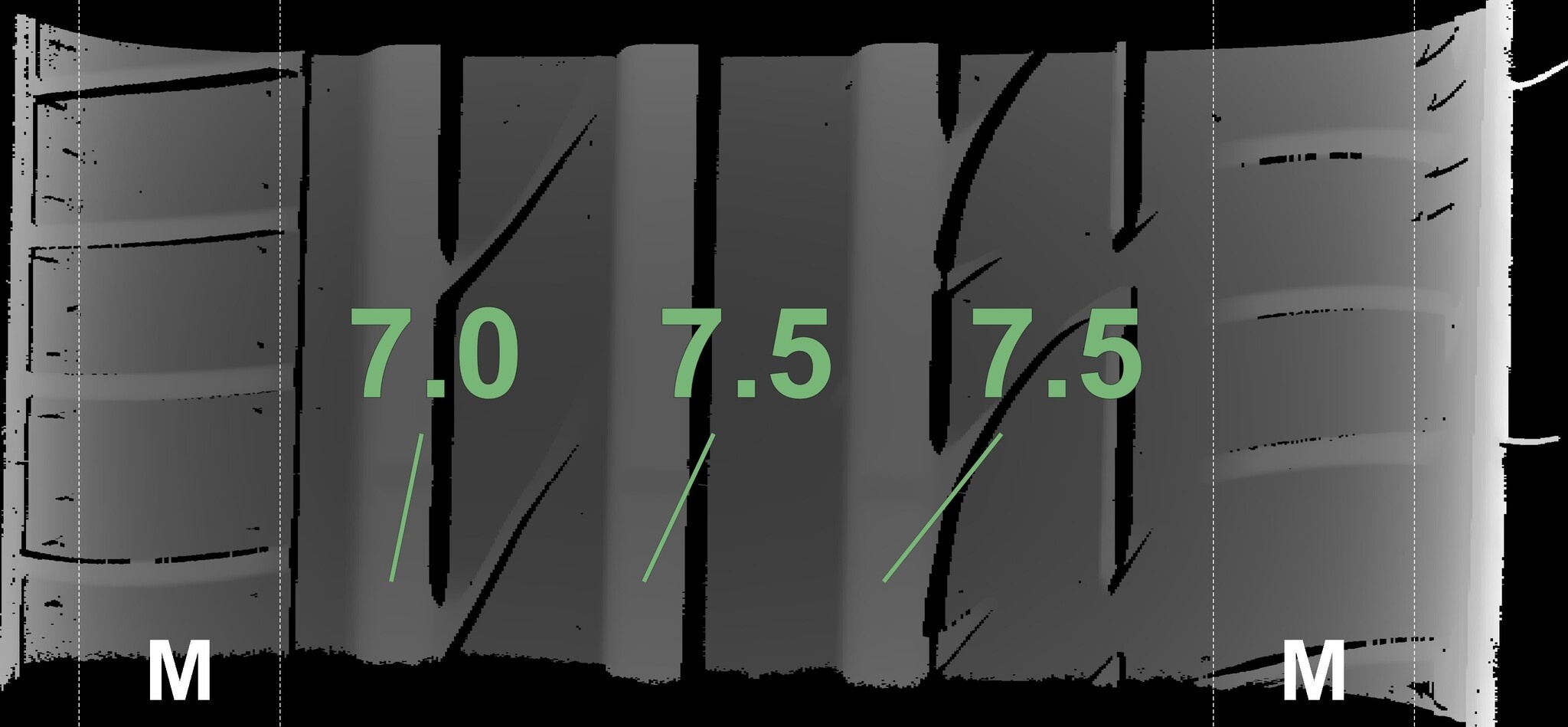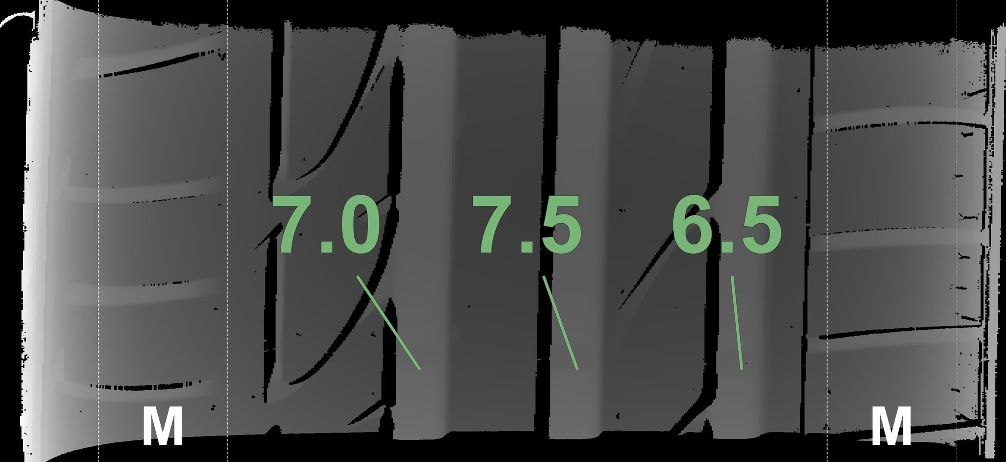 Die gemessenen Profiltiefen und die Details der Felgen sind oben aufgeführt.